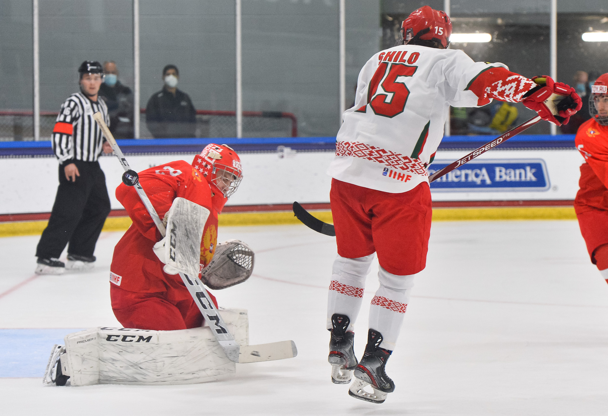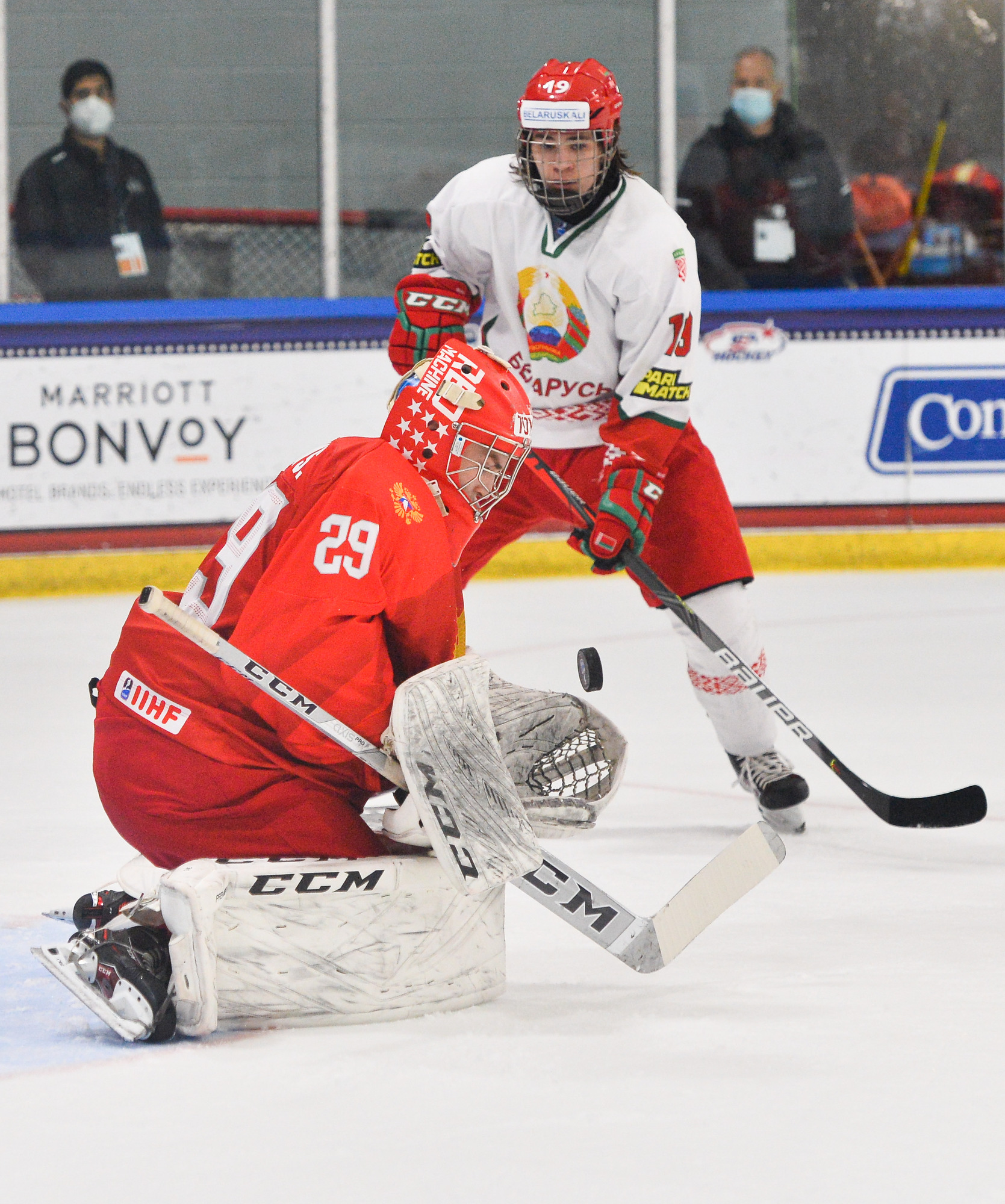 Intense Belarusian pressure ensued, as they dominated the rest of the middle frame, but they couldn't find the equalizer. On the Russian counterattack, Svechkov forced Chaika to make an excellent stop in tight two minutes before the siren.
