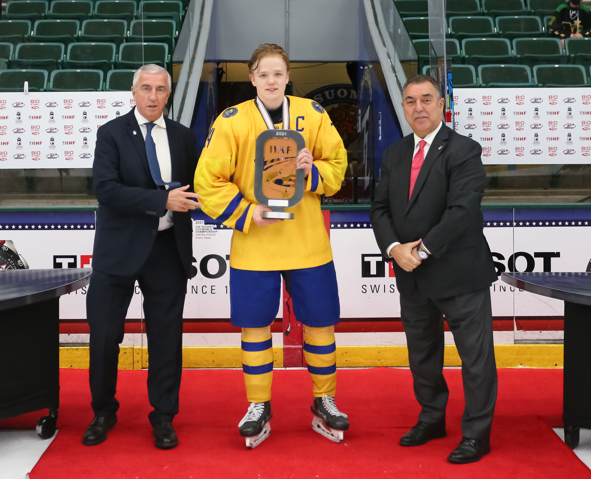 Stockholm has a reason to smile. Sweden grabbed a two-goal first-period lead and pounded Finland 8-0 in Thursday’s bronze medal game at the 2021 IIHF Ice Hockey U18 World Championship in Frisco, Texas, USA. Isak Rosen led the attack with a pair of goals and netminder Carl Lindbom posted a 35-save shutout.
