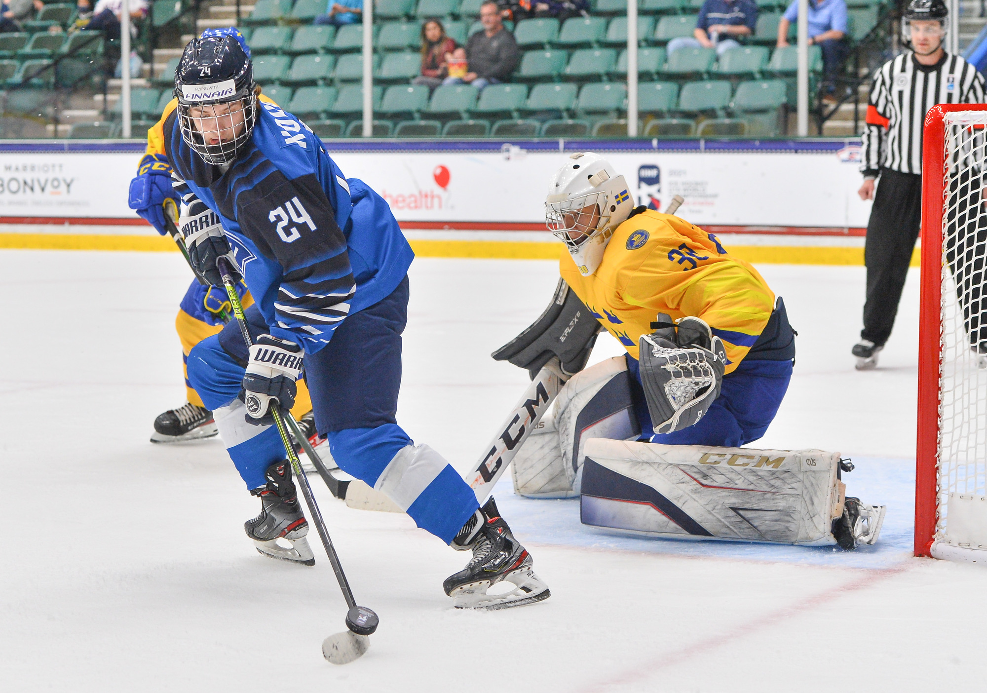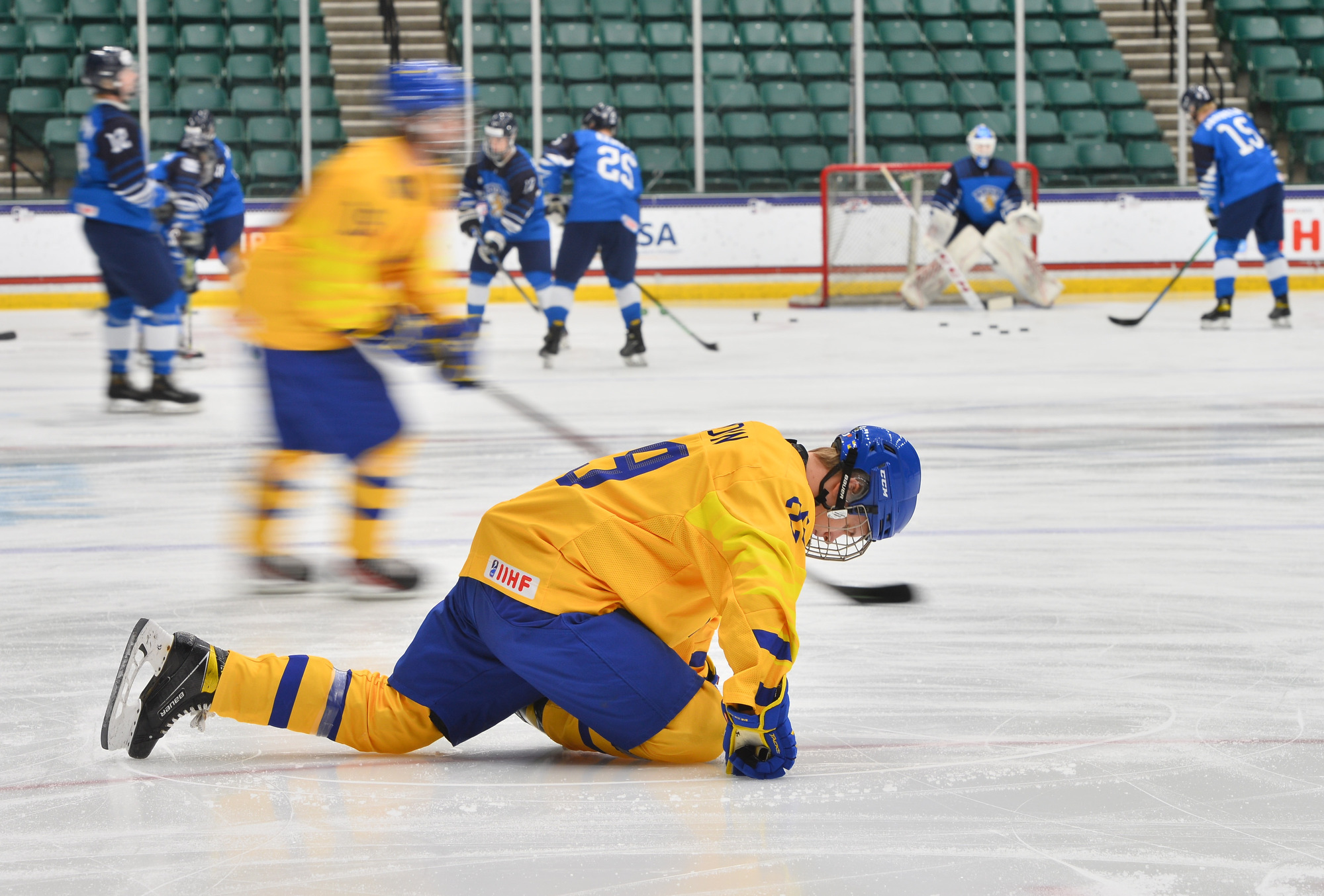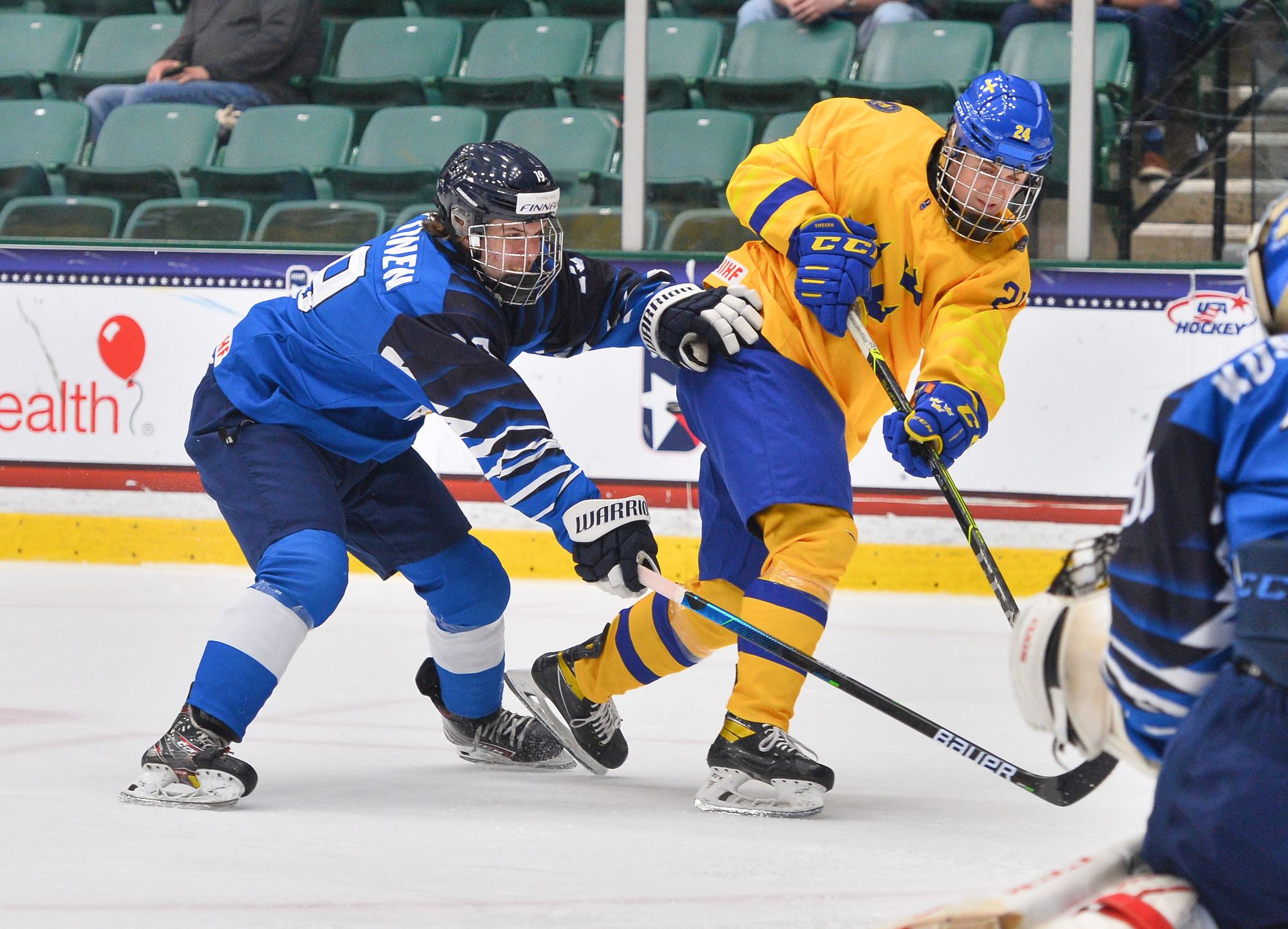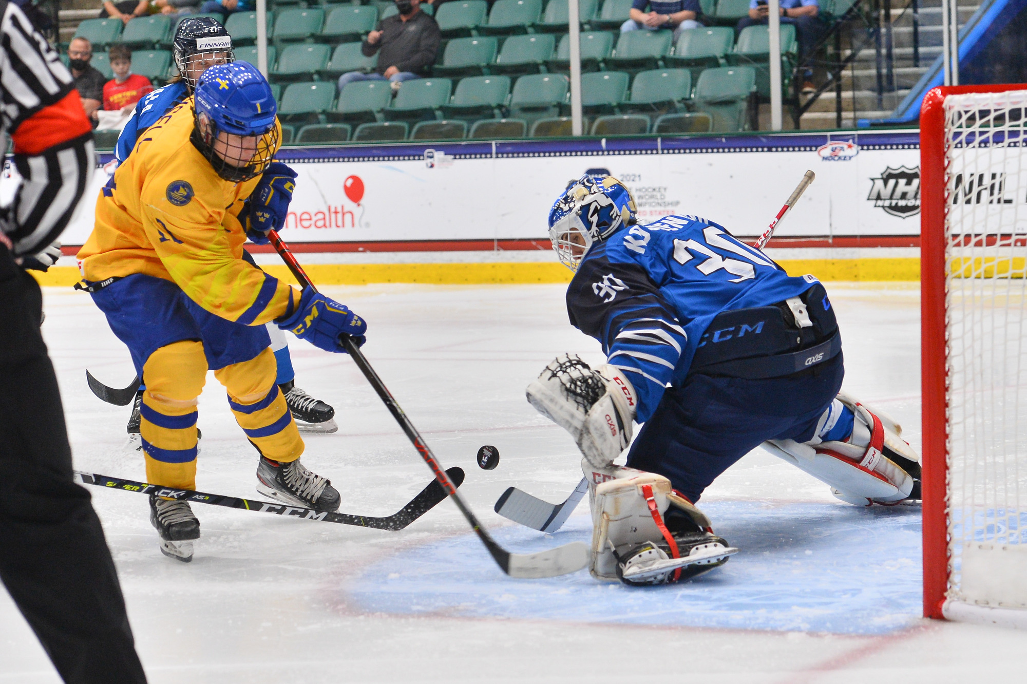 The Finns strove to spoil Lindbom's shutout on a power play with under 10 minutes left. Yet with Helomaa pulled in a Hail Mary attempt to get something going, Sweden's Noah Hasa added an empty-netter at 11:19.