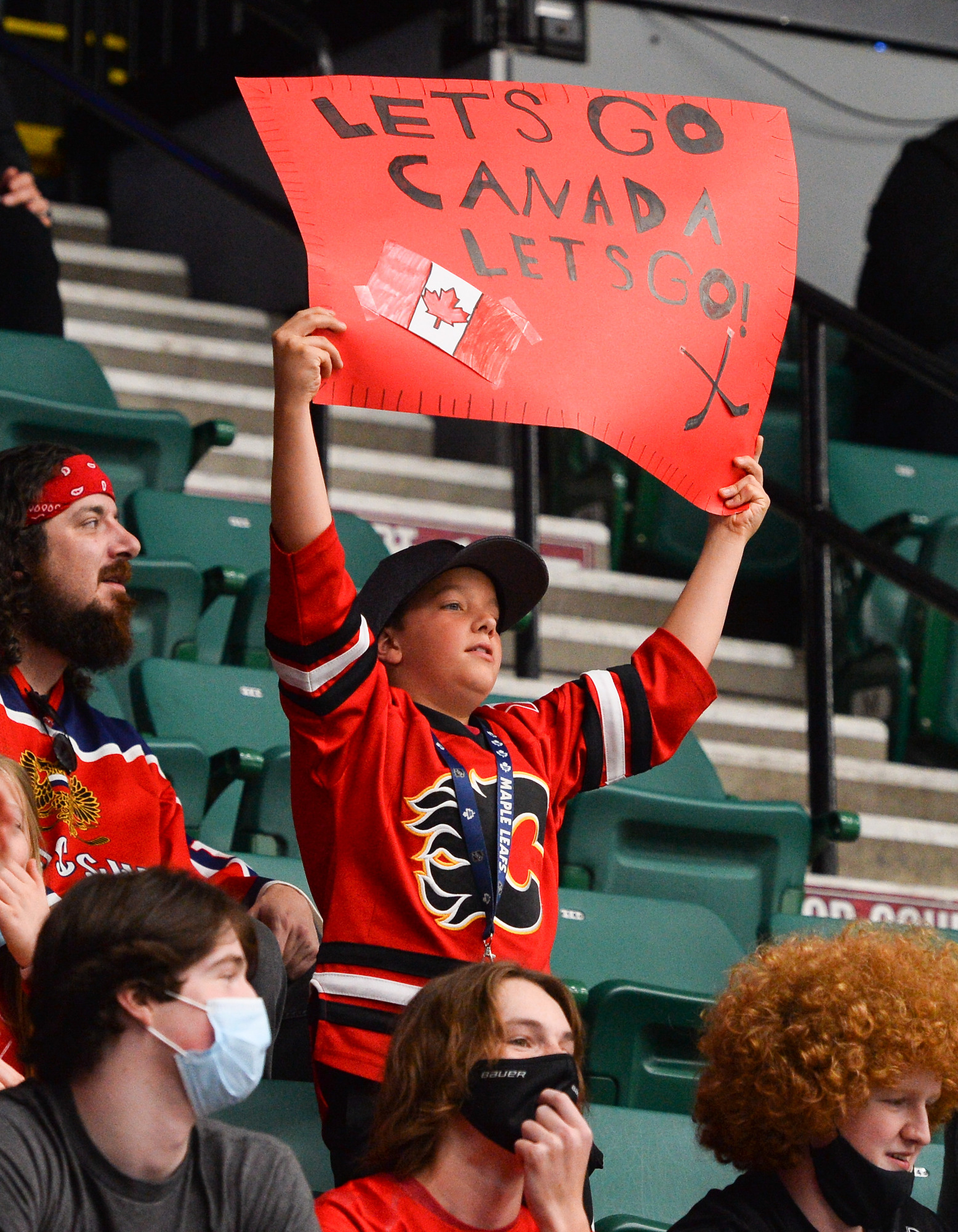 The fireworks started in the first period and never let up. Gaudreau made a nice stop early, and then Nolan Allan fired Chibrikov into the Canadian bench on a hard check at the blue line.