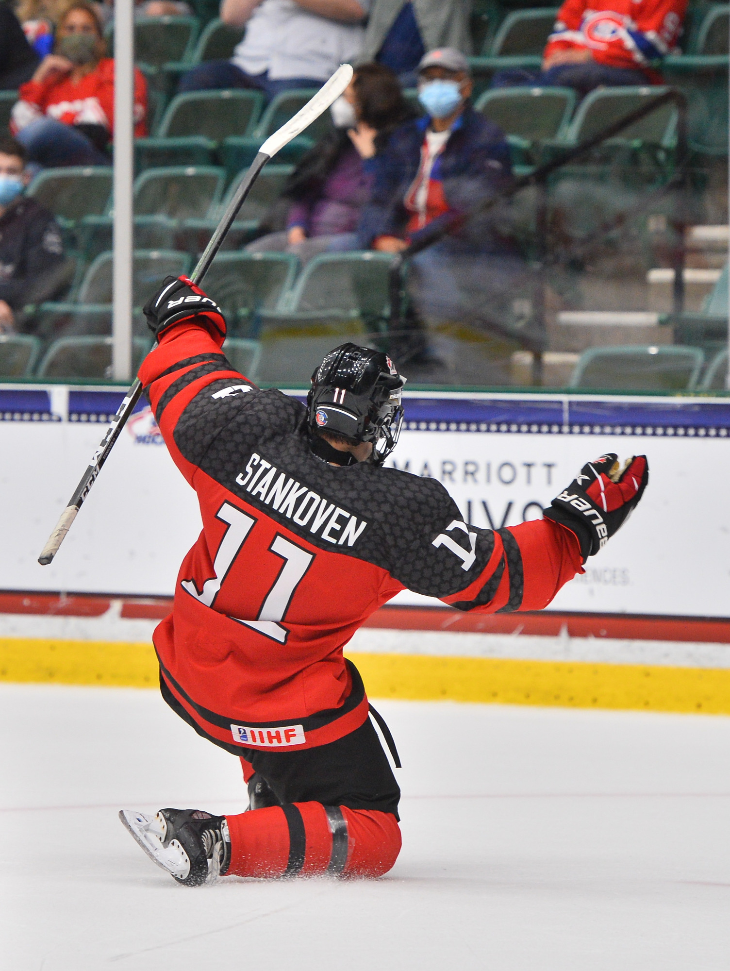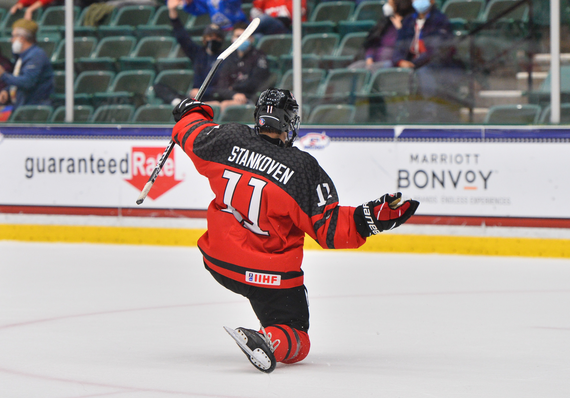 Canada got a much needed fourth goal late in the middle 20 when Stankoven used Alexander Figurin as a screen and beat Ivanov with another long shot.