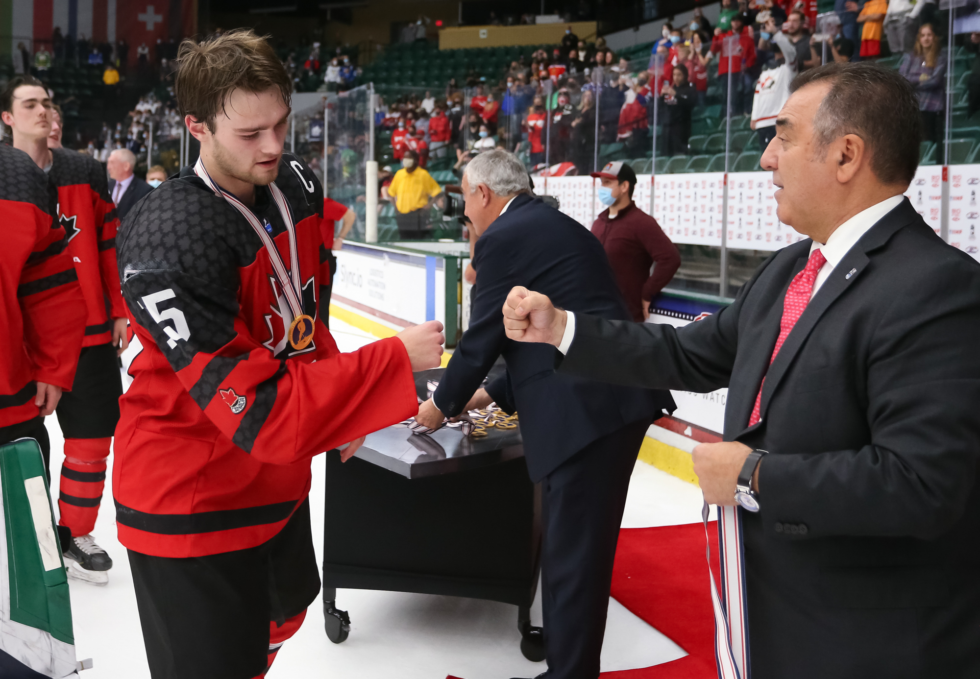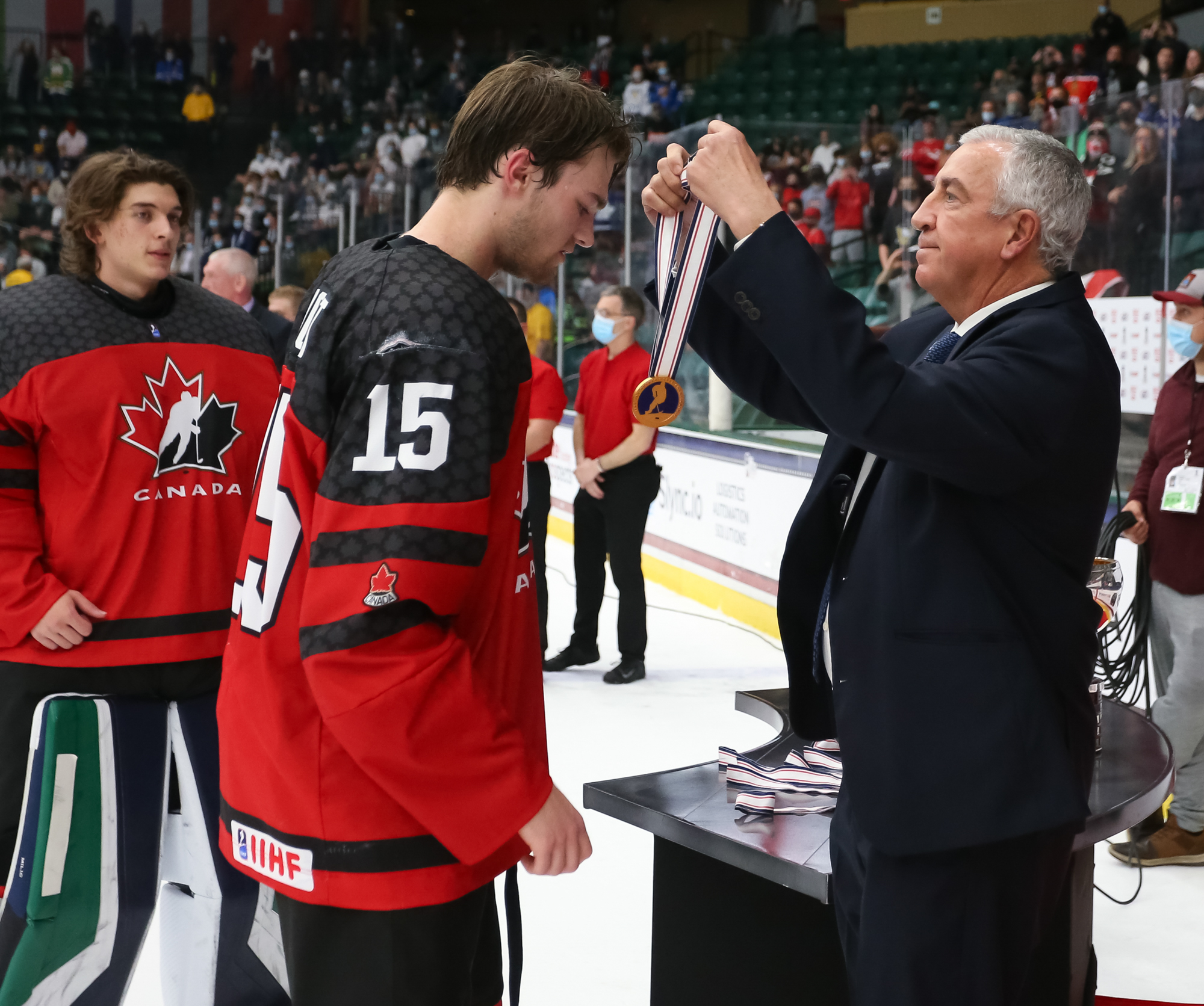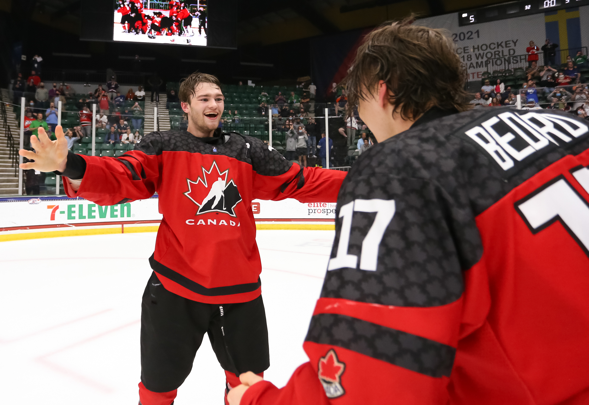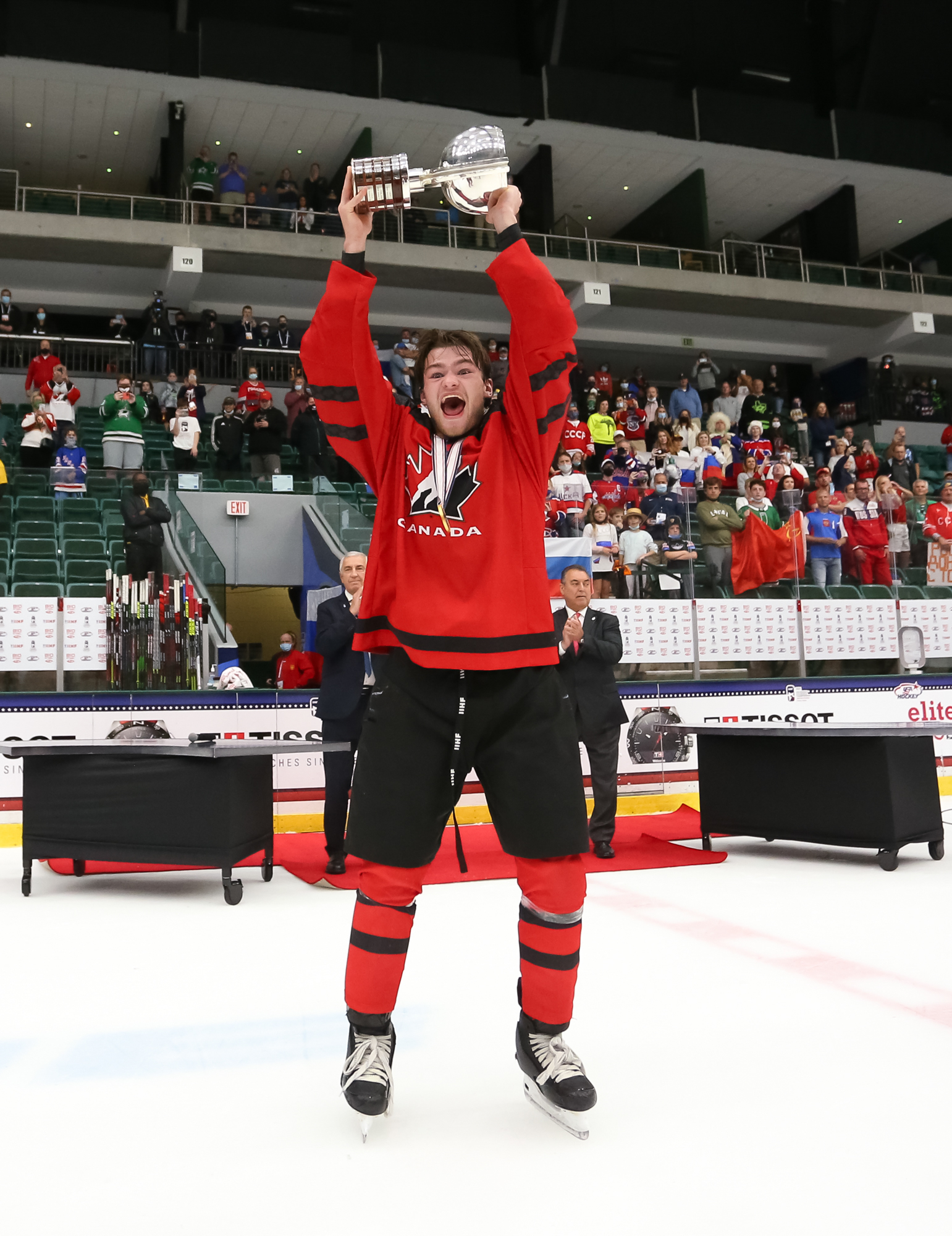 Connor Bedard, at 15 years of age, becomes the youngest gold medallist in U18 history. He had a goal and assist tonight while captain Shane Wright led the way with two goals and an assist. Matvei Michkov had a goal and two assists for Russia and led all scorers with 16 points in the tournament.