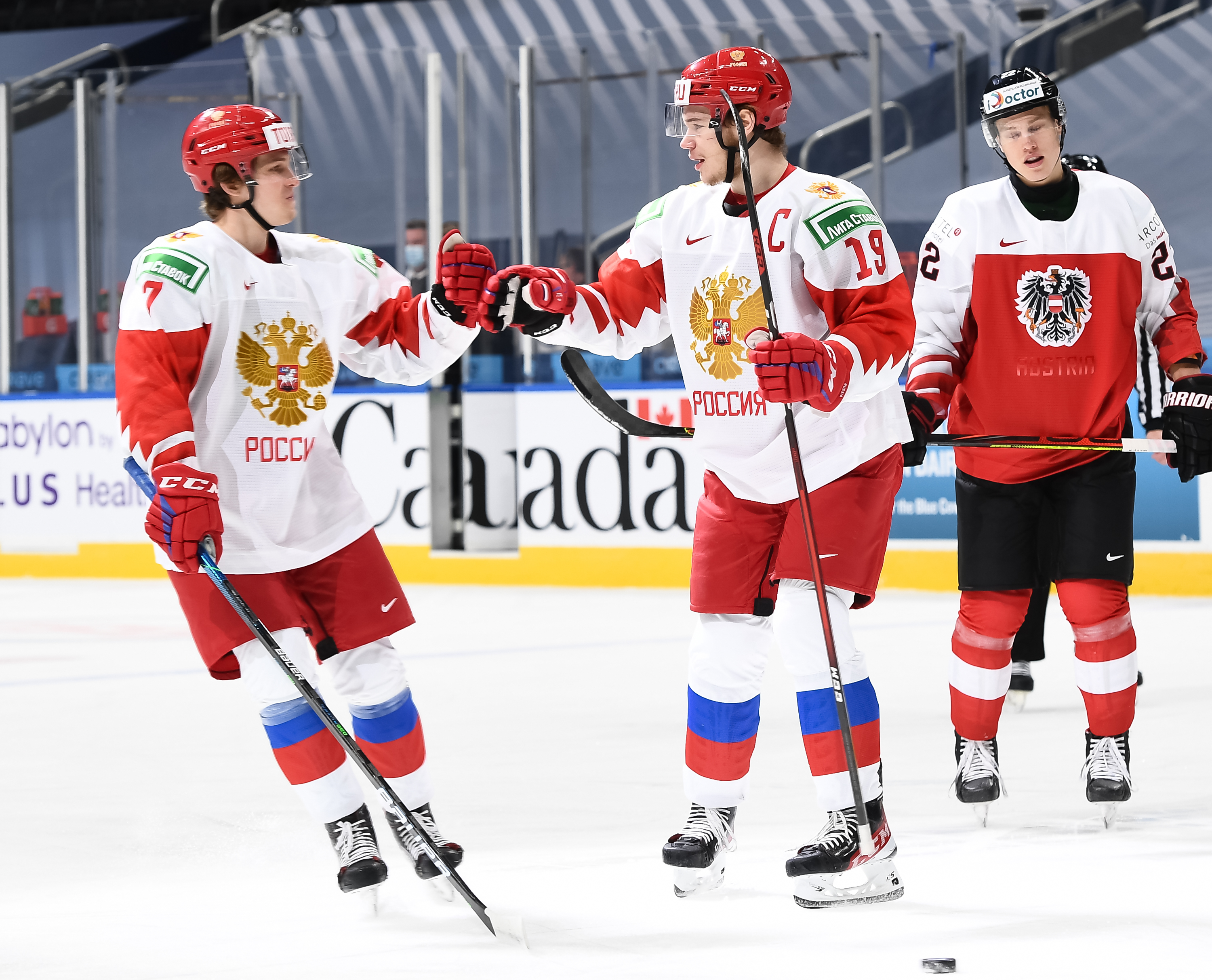 Russia erupted for four first-period goals and defeated winless Austria 7-1 on Tuesday night in Edmonton. Russian captain Vasili Podkolzin set the tone, breaking his offensive drought with two goals and an assist.
