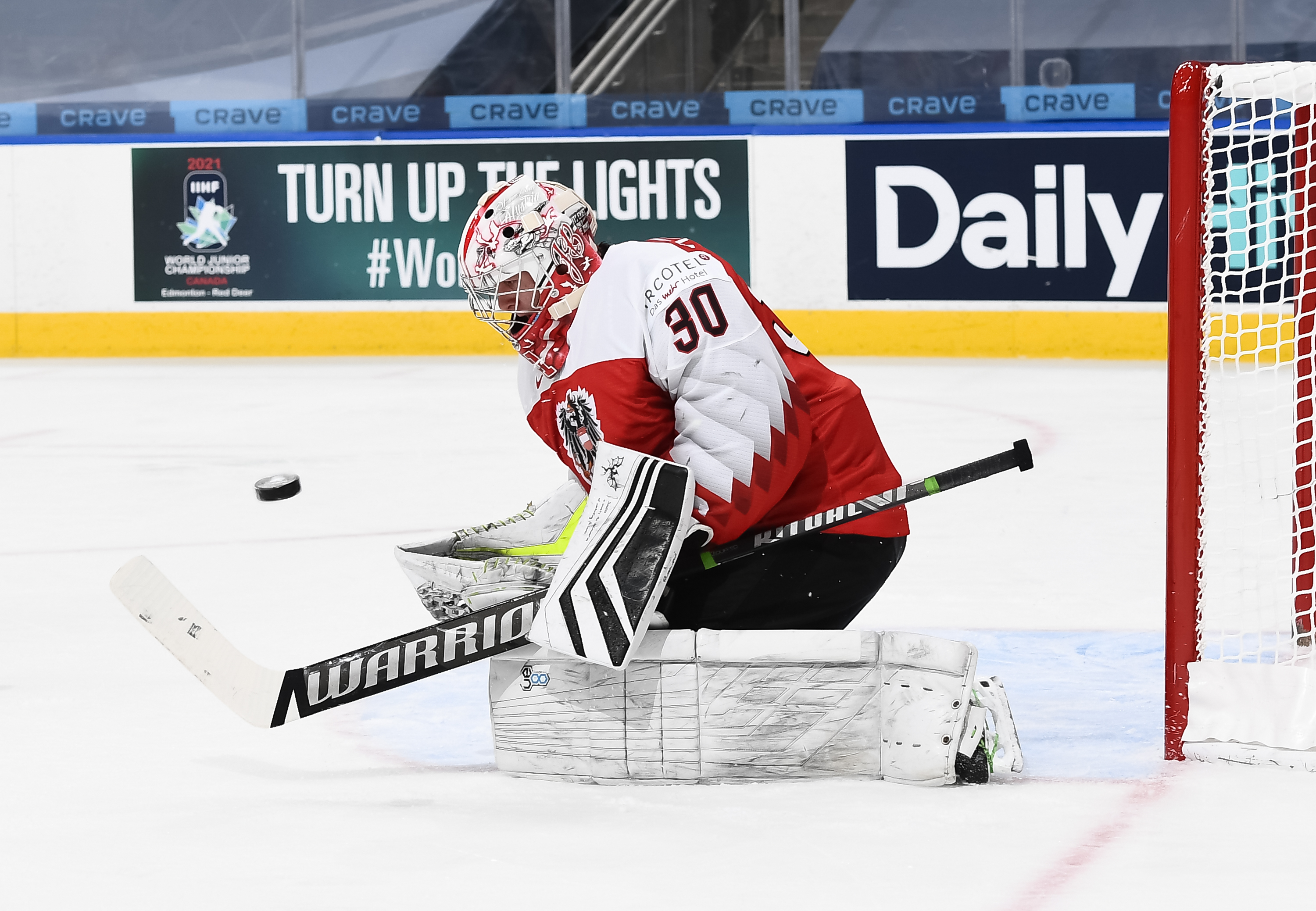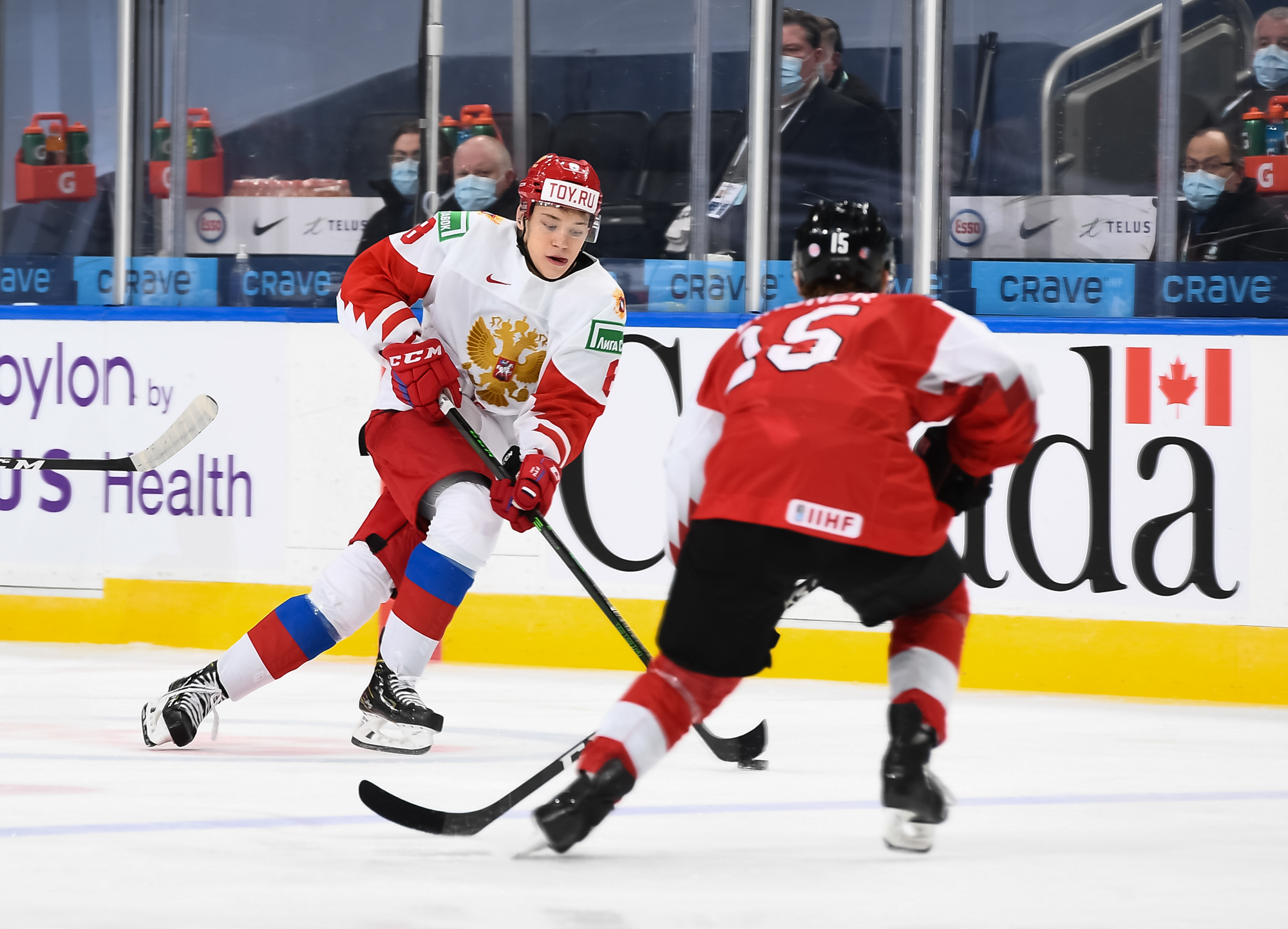 Podkolzin made it 2-0 at 6:11 with his first goal of these World Juniors, snapping the puck high to the short side. The 19-year-old power forward, a 2019 first-round pick of the Vancouver Canucks (10th overall), is competing in his third World Juniors after winning bronze in 2019 and silver in 2020.