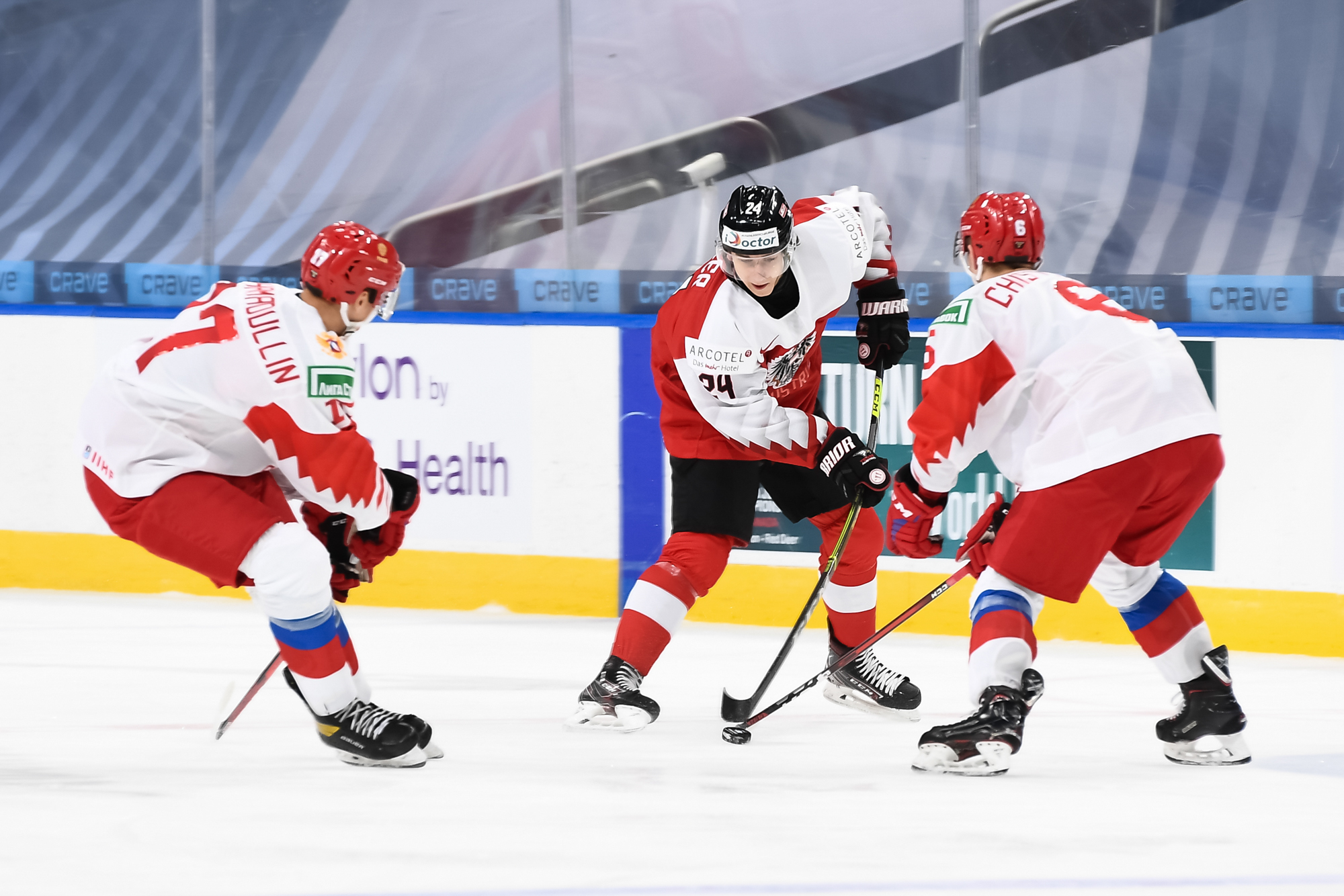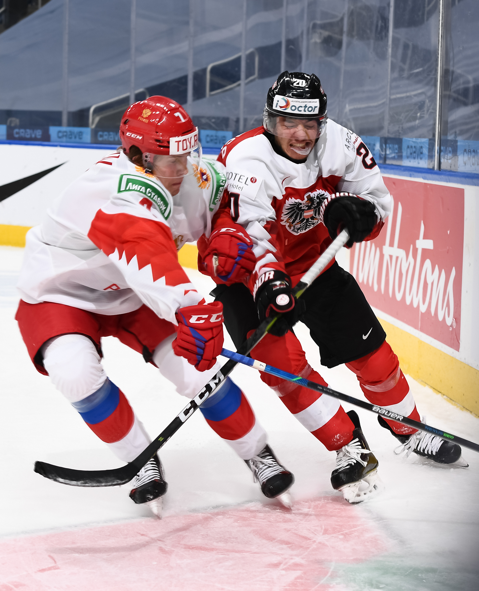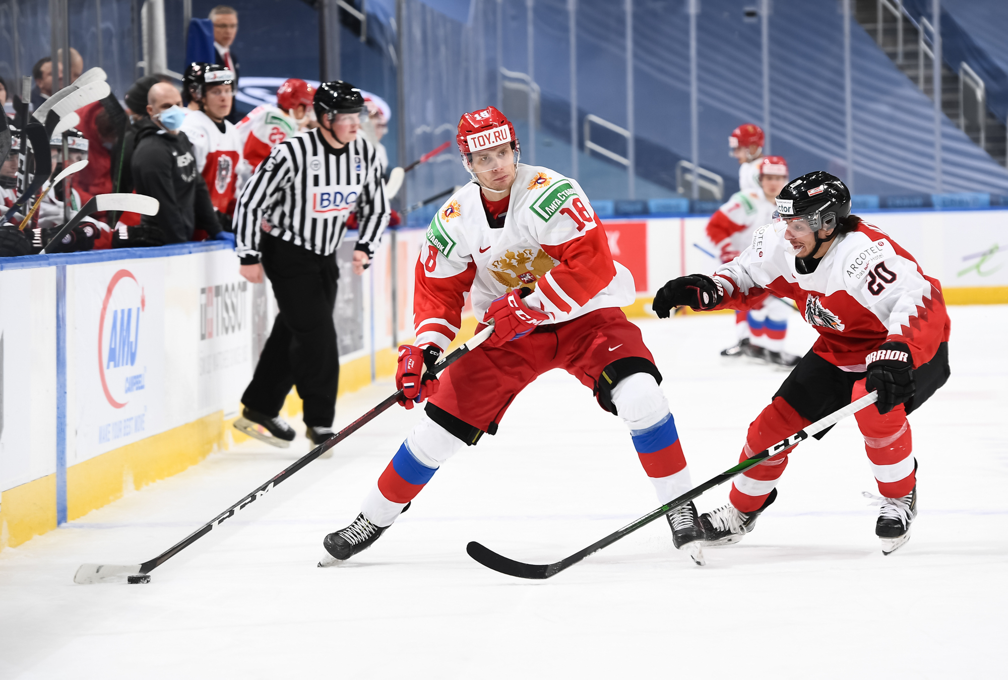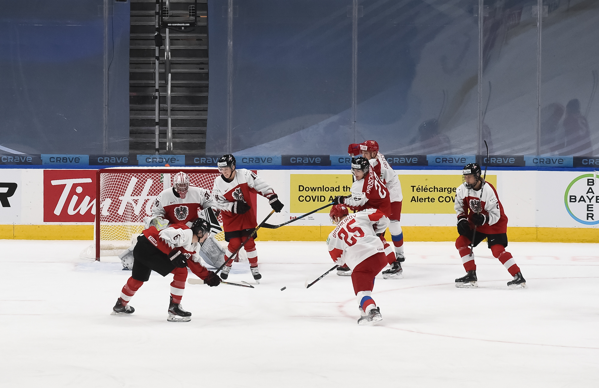 At 16:19, Podkolzin unleashed a heavy wrist shot on the rush and the puck squeezed through Brandner’s pads. Marat Khusnutdinov, with his first tournament goal, reached out to push it over the goal line before the Austrians could sweep it away.