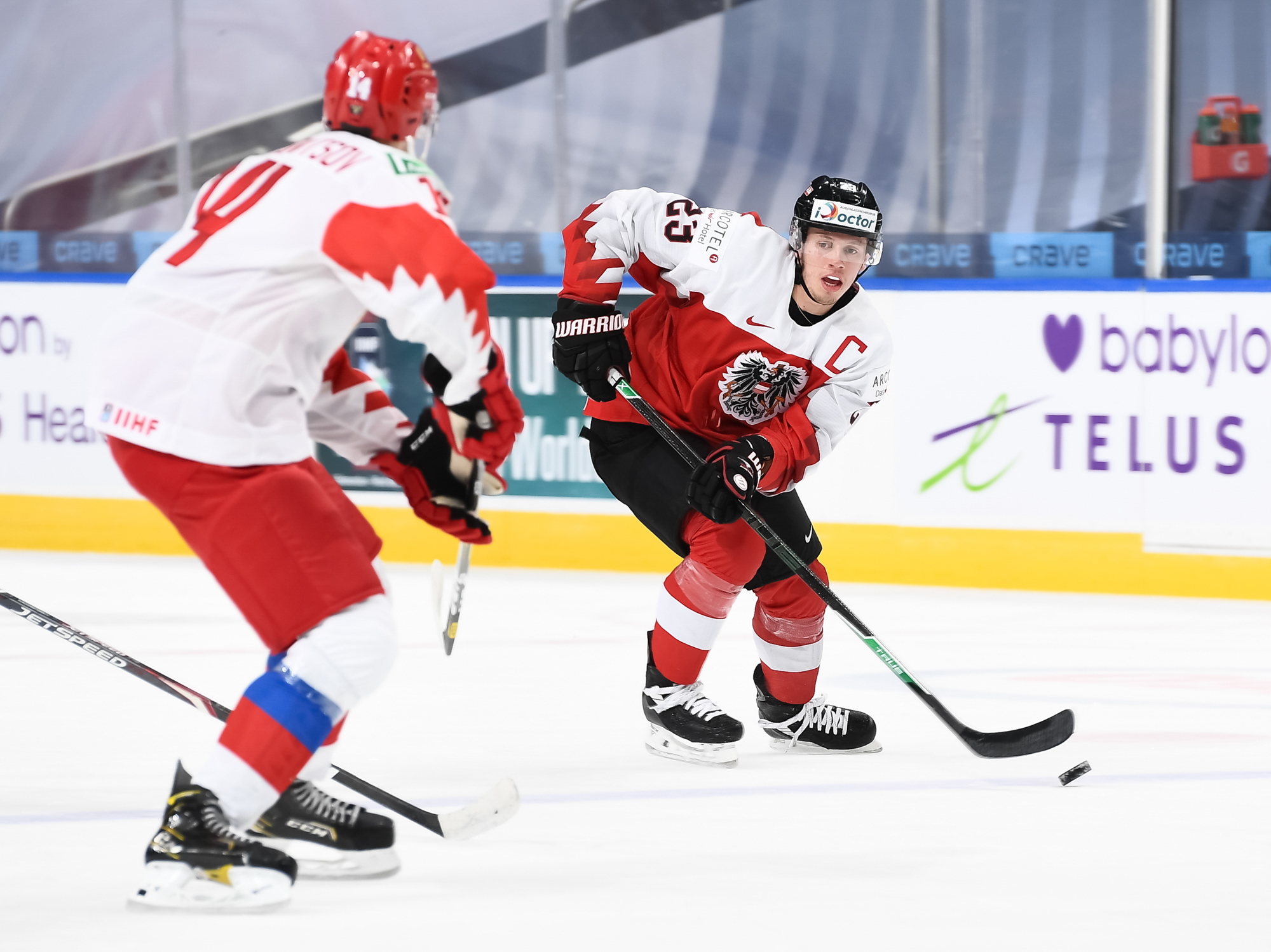 Peeters teamed up with Kasper for another good chance on the backhand in the last minute of the second period. Despite Austria's valiant refusal to quit, there would be no magical comeback.