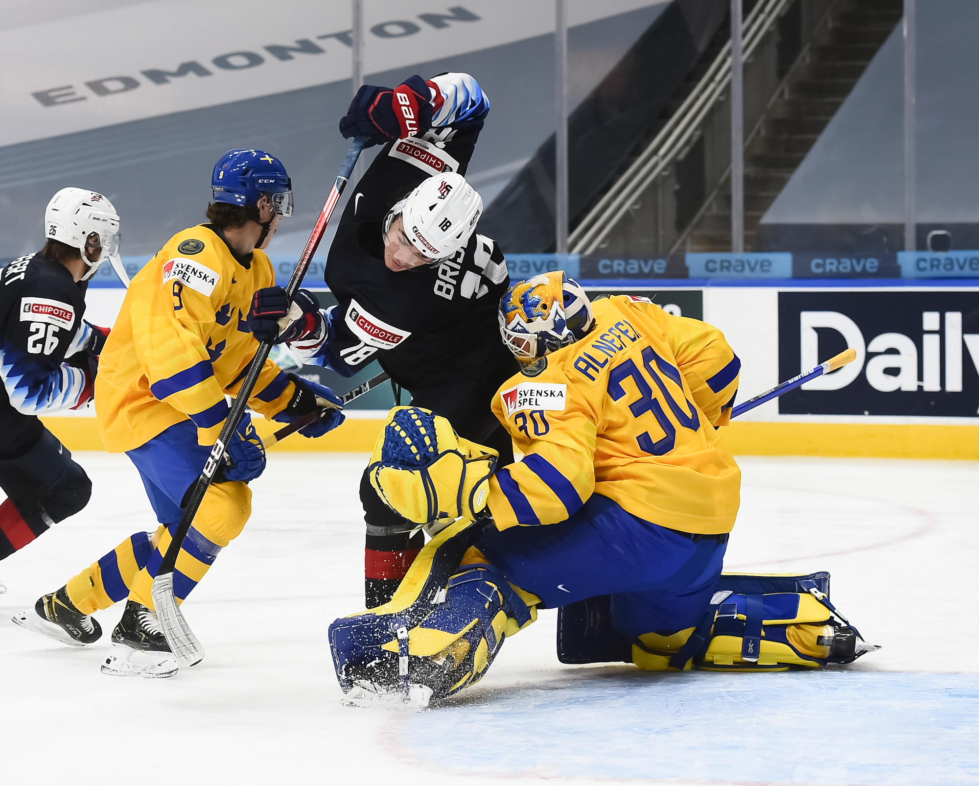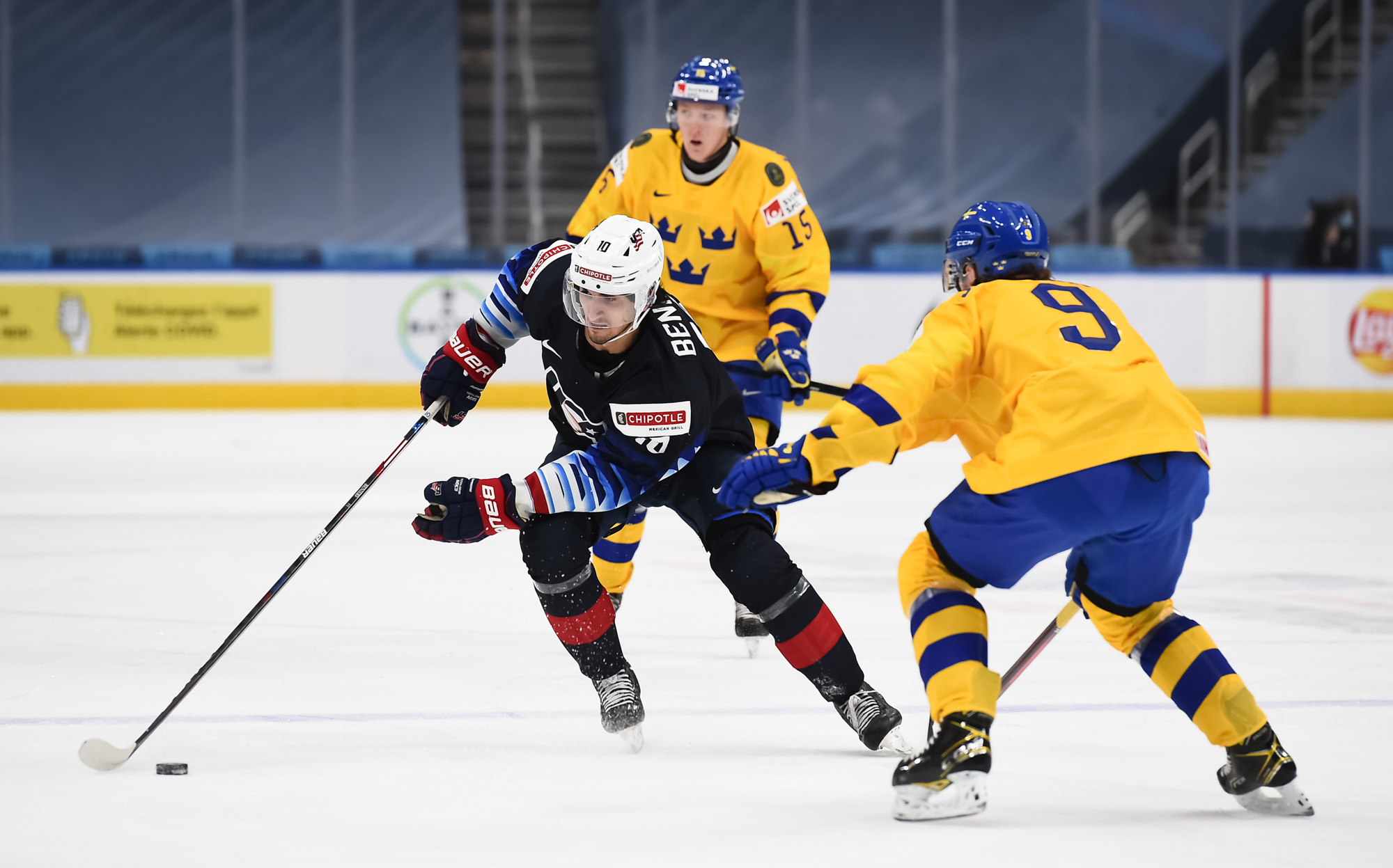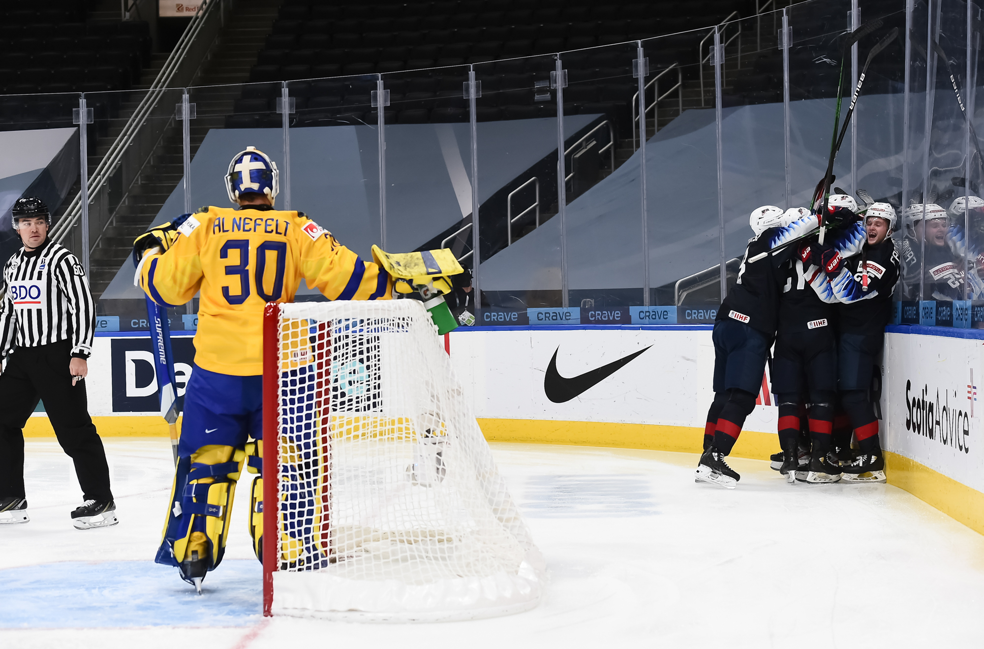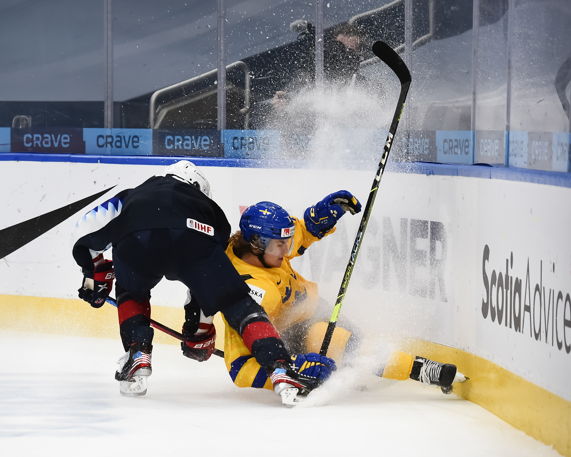 In the scoreless third period, Sweden's rough night continued. On an offside at the U.S. blue line, Tyler Kleven thumped Swedish captain Philip Broberg, who seemed to be labouring for the second straight game, with a late hit.