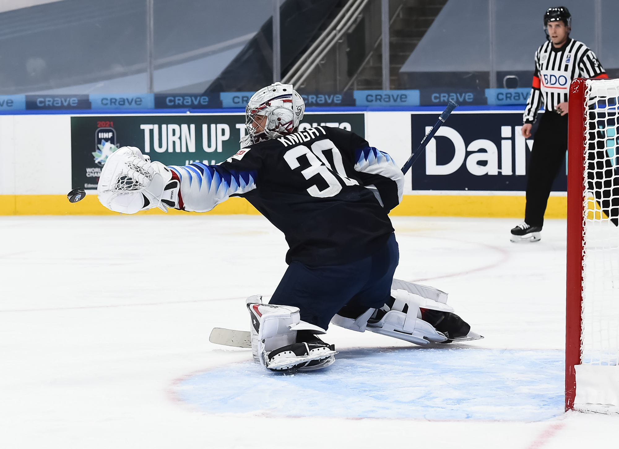 Knight, who was pulled in the opening 5-3 loss to Russia and earned a 7-0 shutout against the Czechs, looked good in his third World Junior appearance this year under coach Nate Leaman.