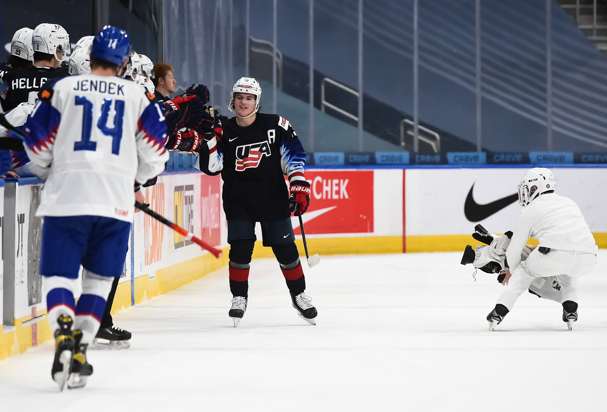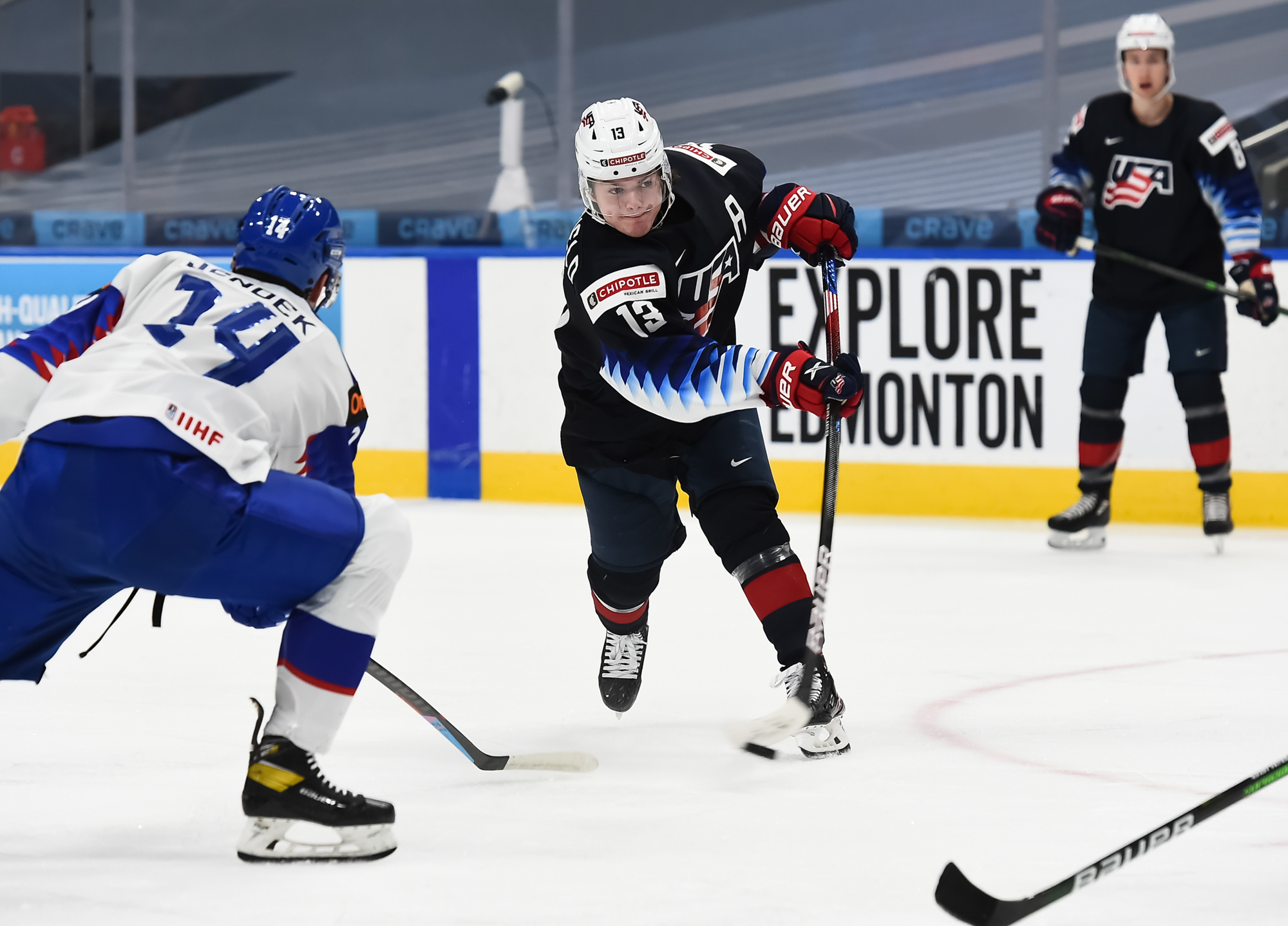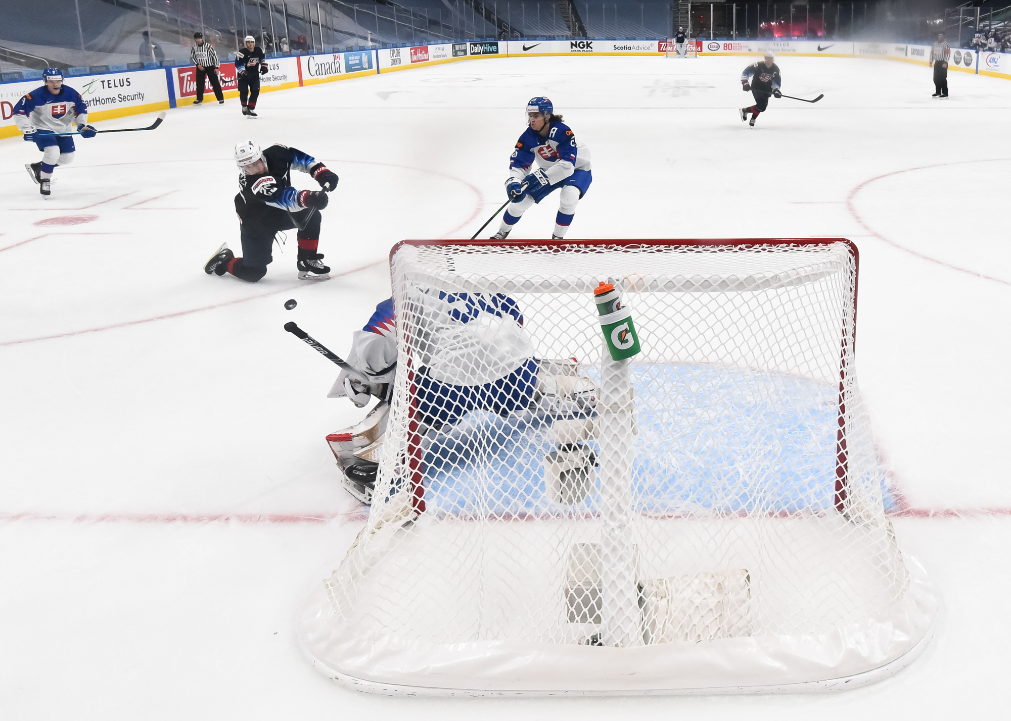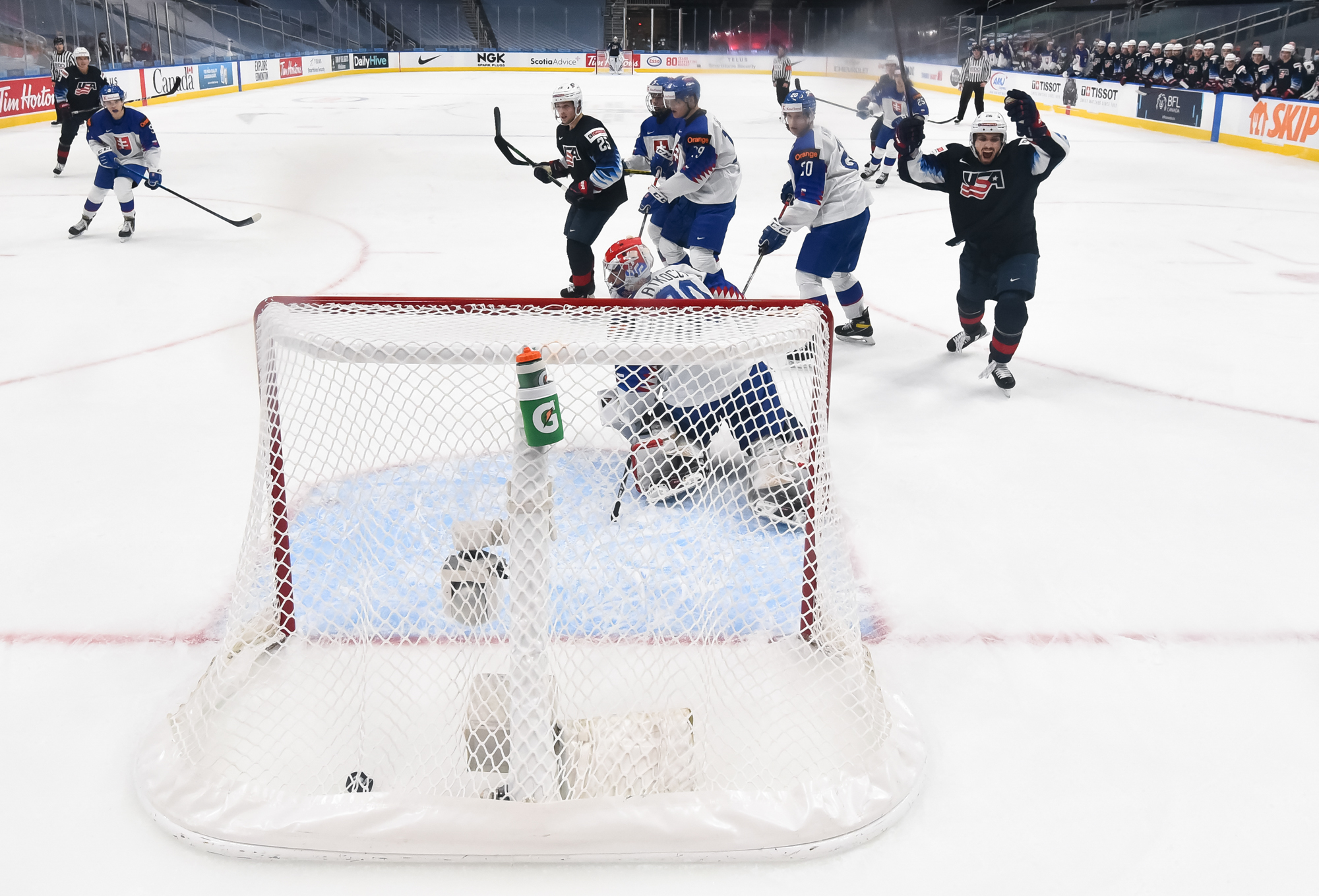 At 9:50 of the third, Sojka scored the first power-play goal the U.S. penalty-killers have allowed in Edmonton, tipping in Knazko's left point shot.