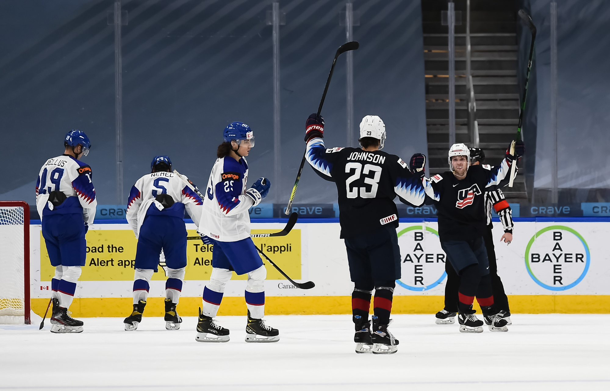 Even though the Slovaks strove to slow the pace, patience paid off for the Americans. Johnson's wrist shot from the left point deflected off Farinacci at 11:55 to make it 2-0.