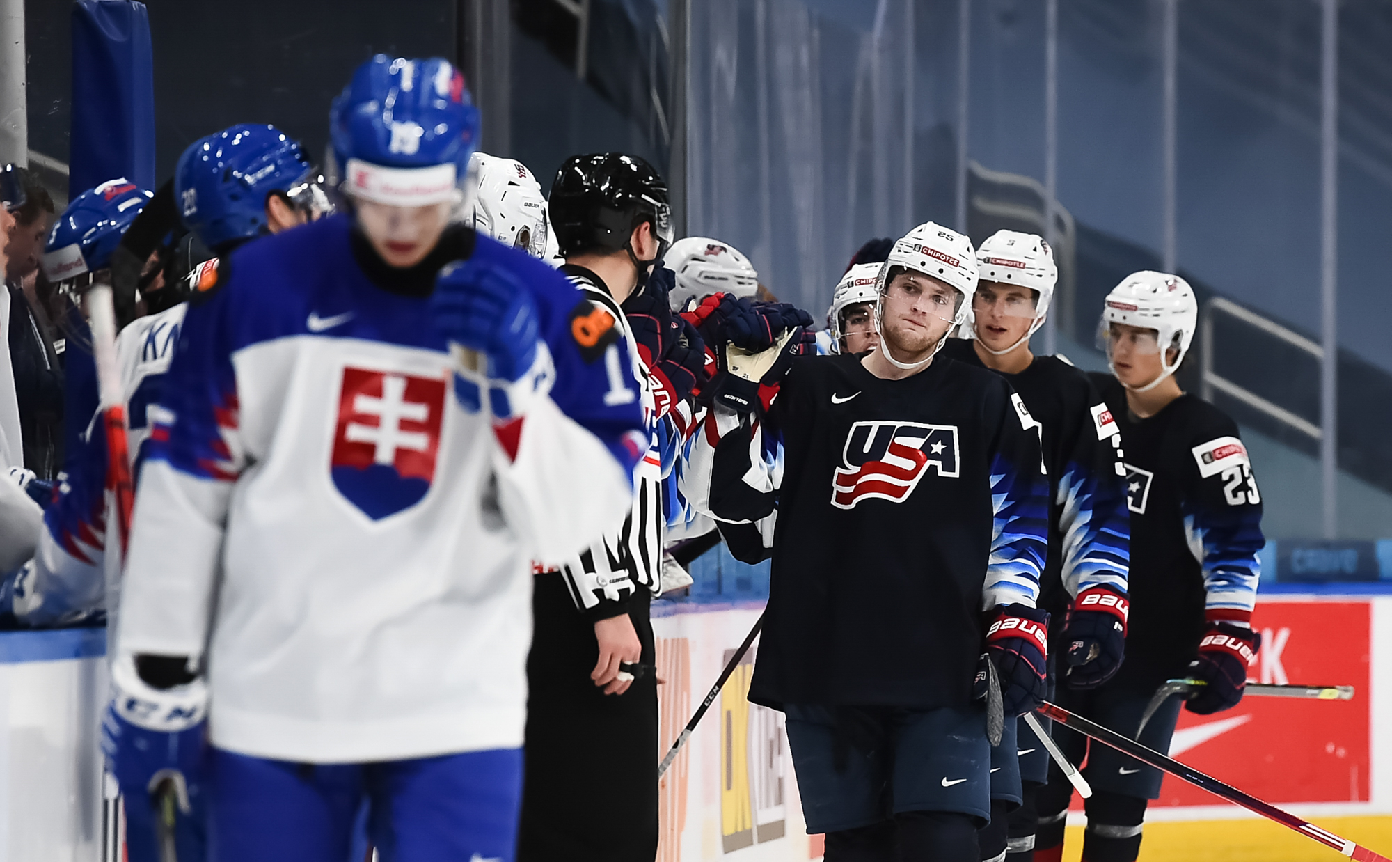 U.S. coach Nate Leaman's team set a World Junior record with a shutout streak of 218:53. It ended when Slovakia's Matej Kaslik scored late in the second period. The last goal the Americans had surrendered was Yegor Chinakhov’s empty-netter with 21 seconds left in the 5-3 opening loss to Russia.