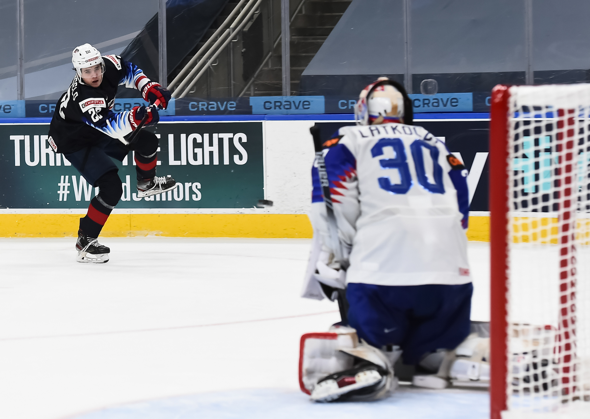 It was a goaltending duel between American starter Spencer Knight and Slovakia's Simon Latkoczky, who kept his team in it as shots favored the U.S. 43-18. Slovak coach Robert Petrovicky opted for the 18-year-old World Junior rookie Latkoczy, who entered with a 1.94 GAA and 93.3 save percentage, over three-time tournament participant Samuel Hlavaj.