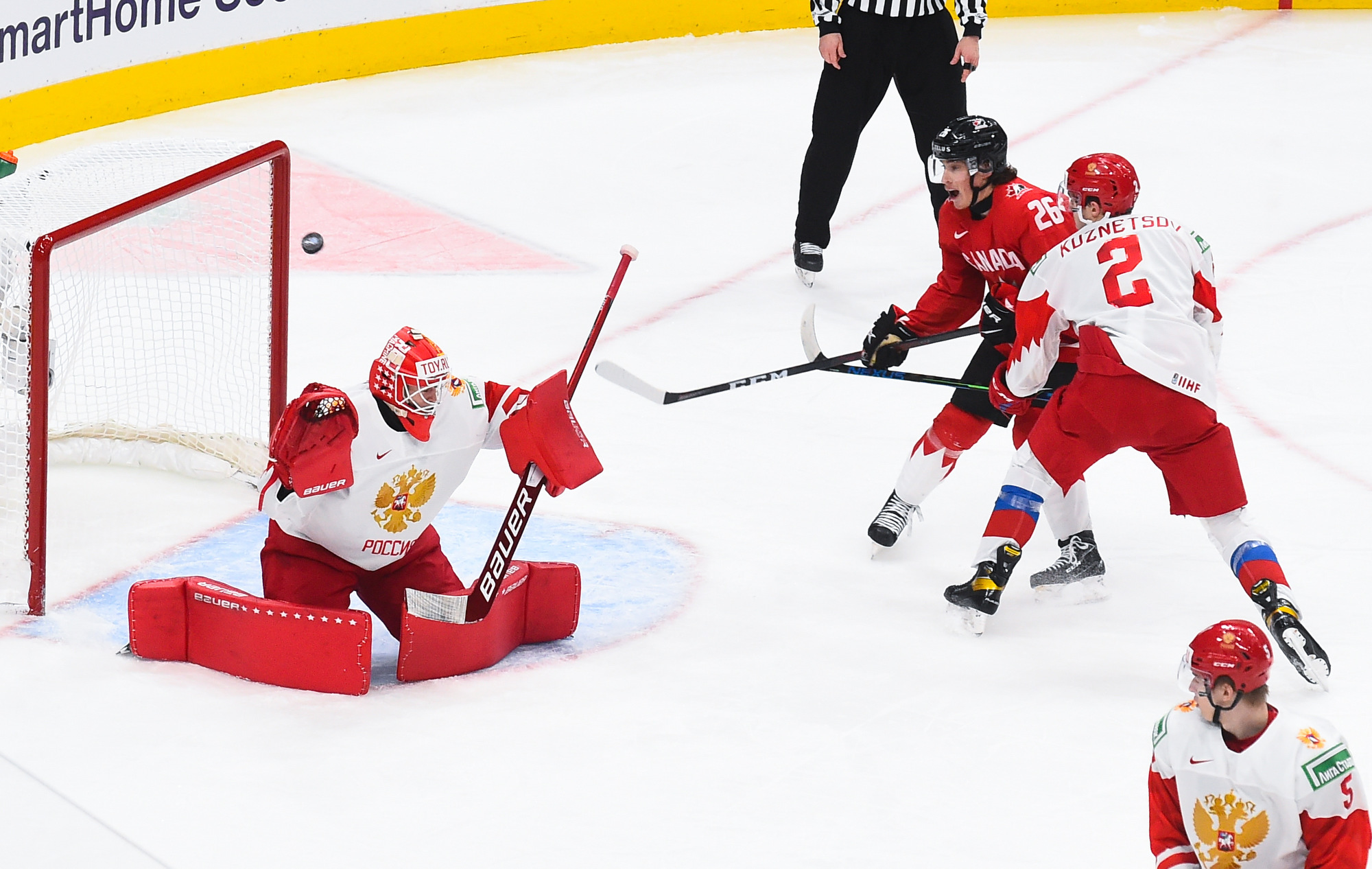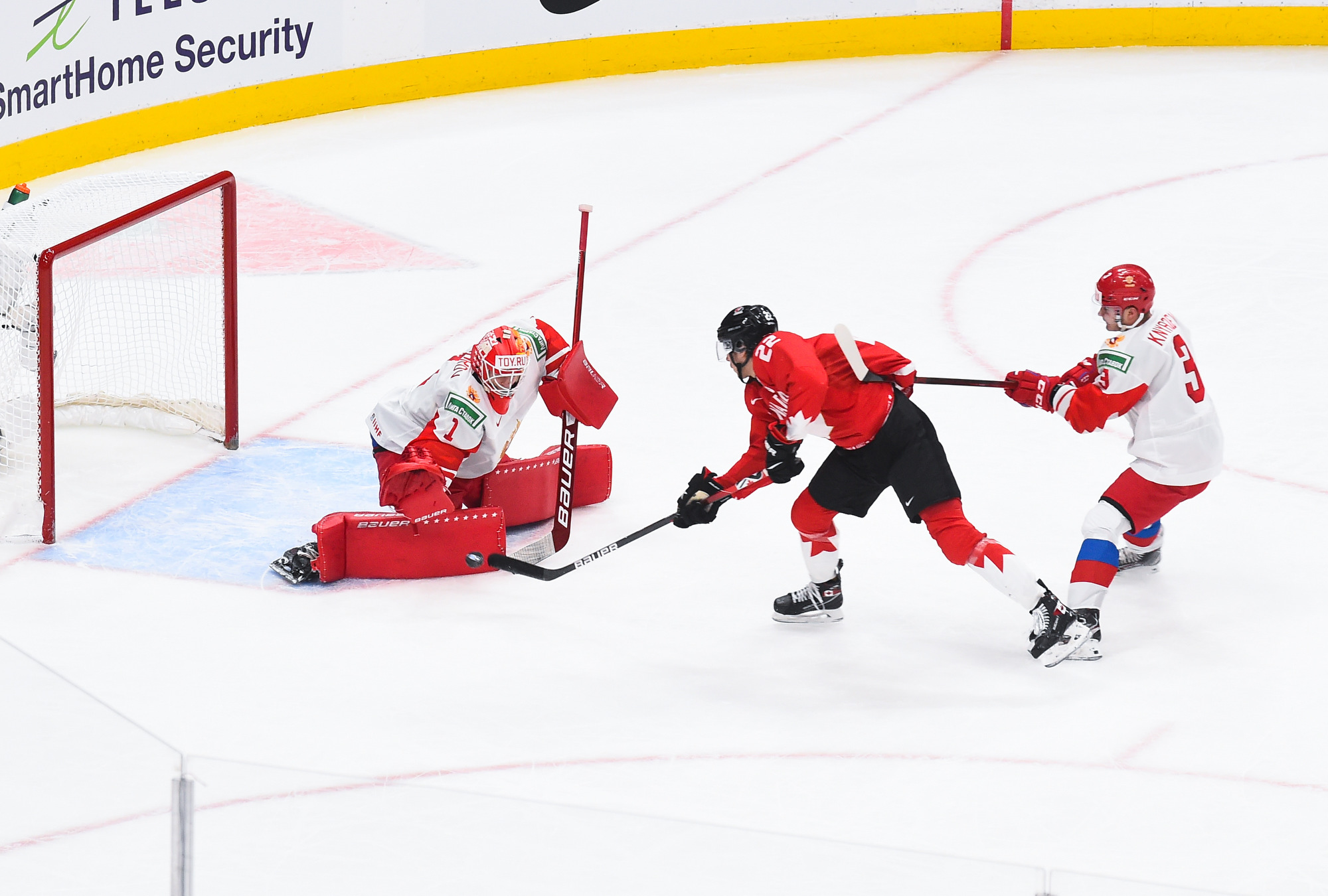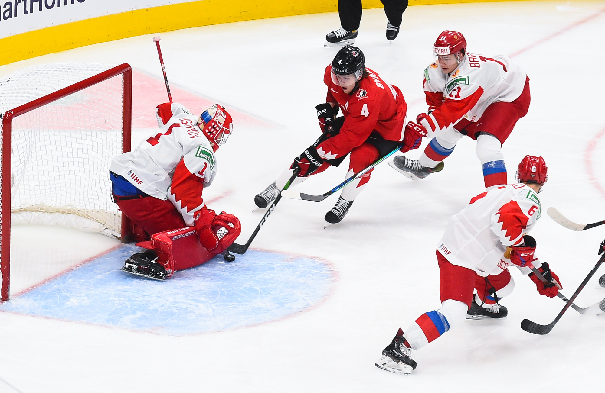 Nothing changed after the intermission, and Canada’s incredible puck pressure led to its fourth goal at 4:09. This time Askarov lost his stick and while he was trying to get it from Semyon Chistyakov the Canadians moved the puck around, setting up Braden Schneider. His shot beat the goalie to the glove side again.