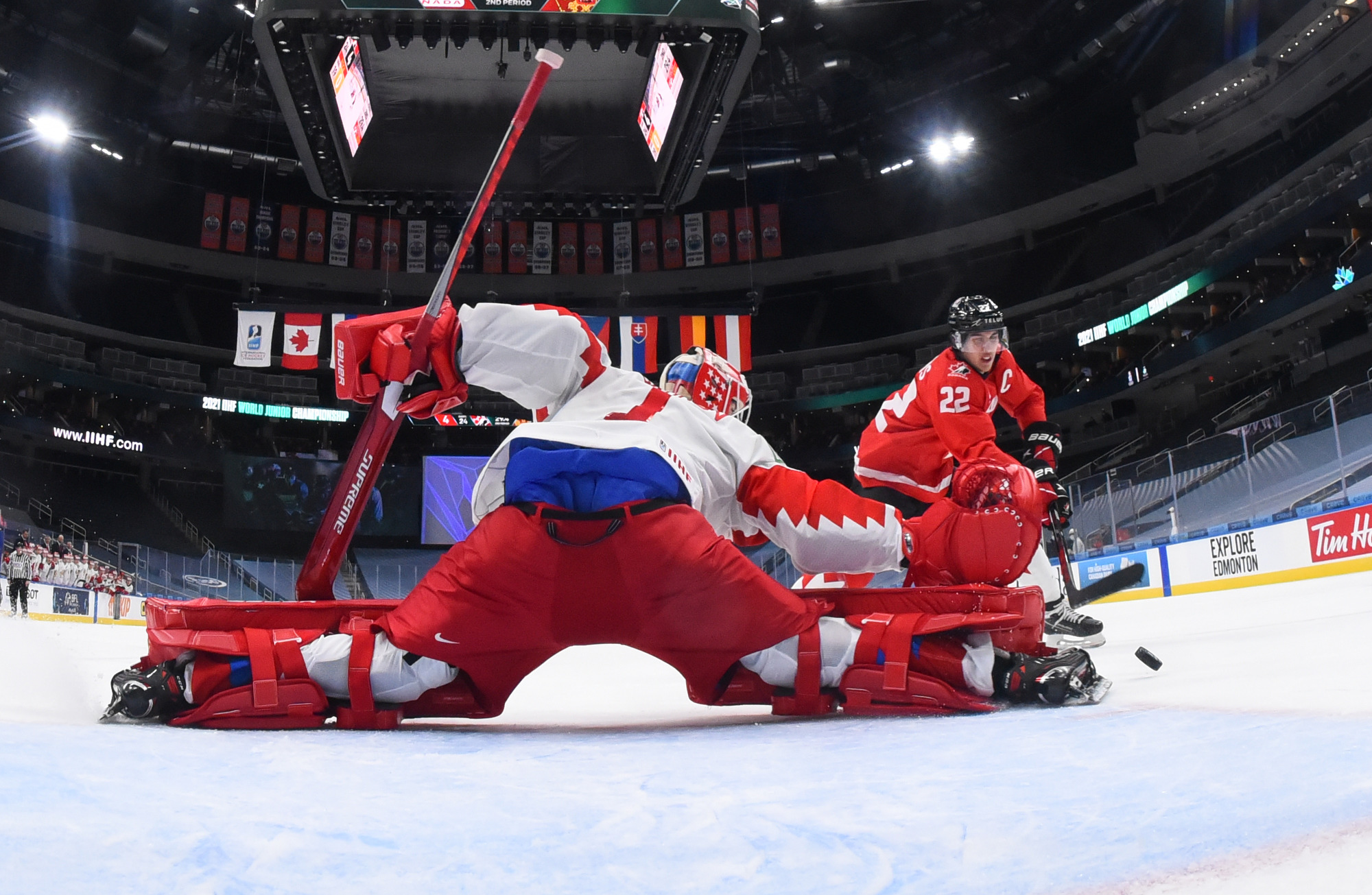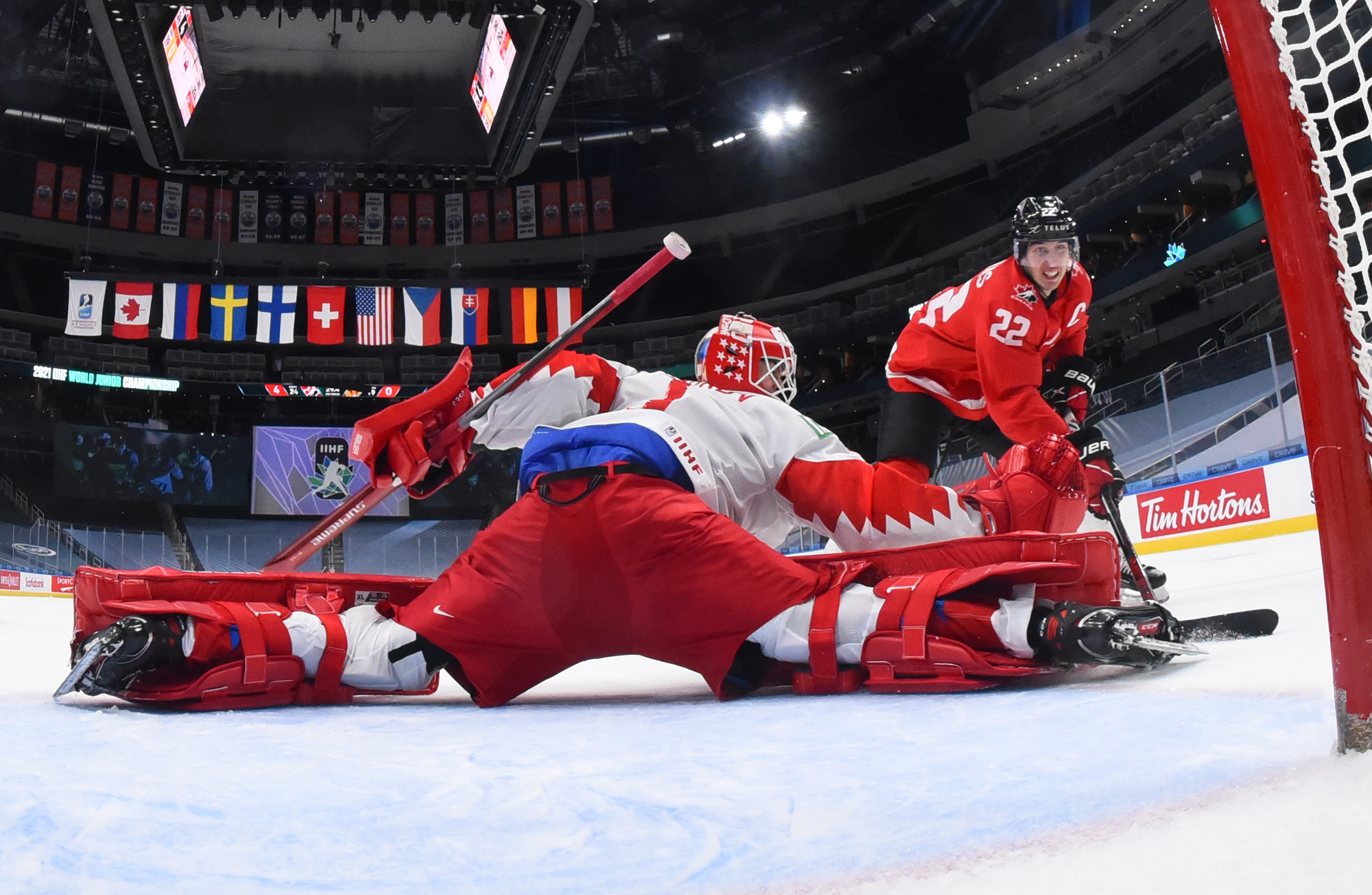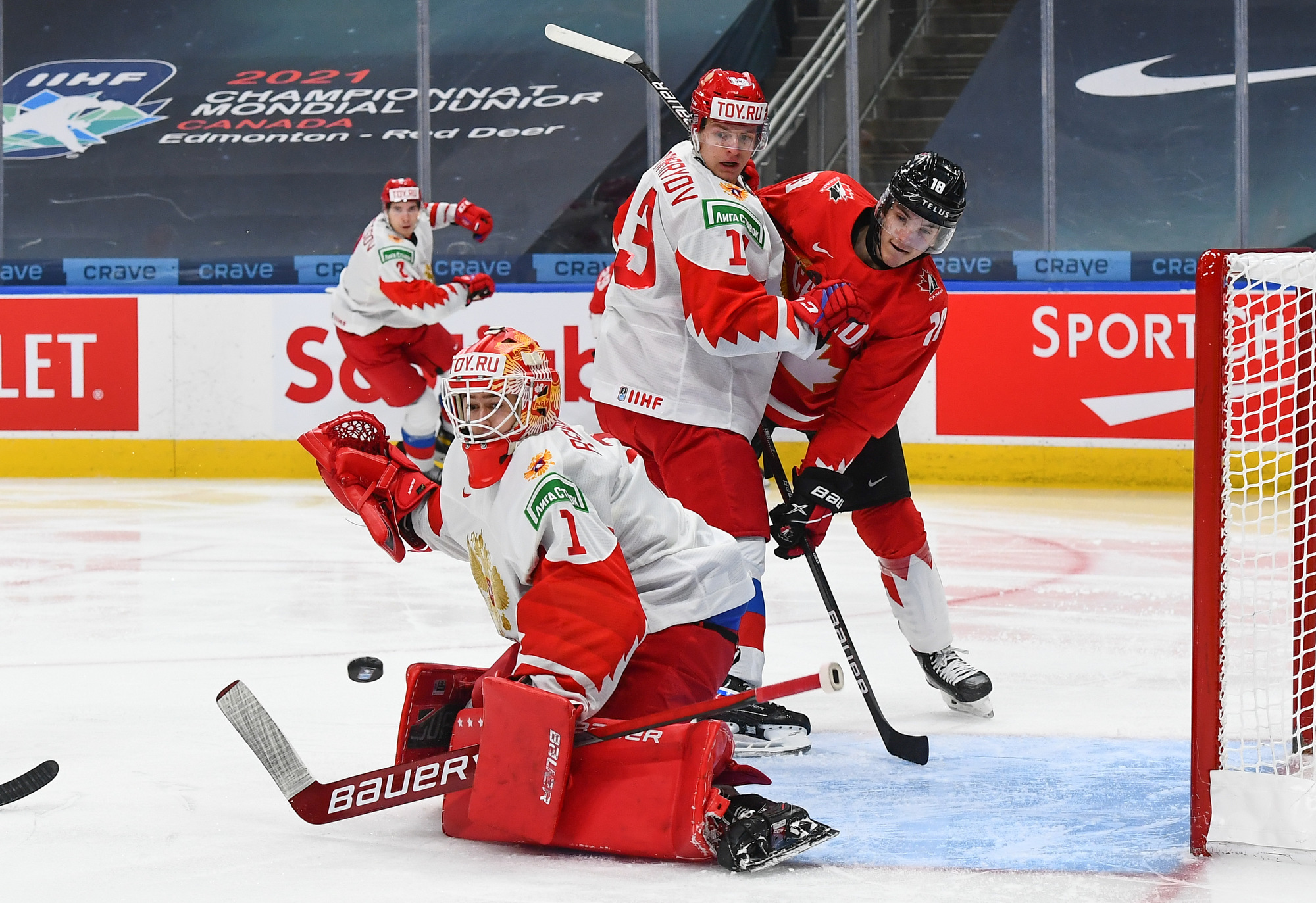Nothing changed after the intermission, and Canada’s incredible puck pressure led to its fourth goal at 4:09. This time Askarov lost his stick and while he was trying to get it from Semyon Chistyakov the Canadians moved the puck around, setting up Braden Schneider. His shot beat the goalie to the glove side again.