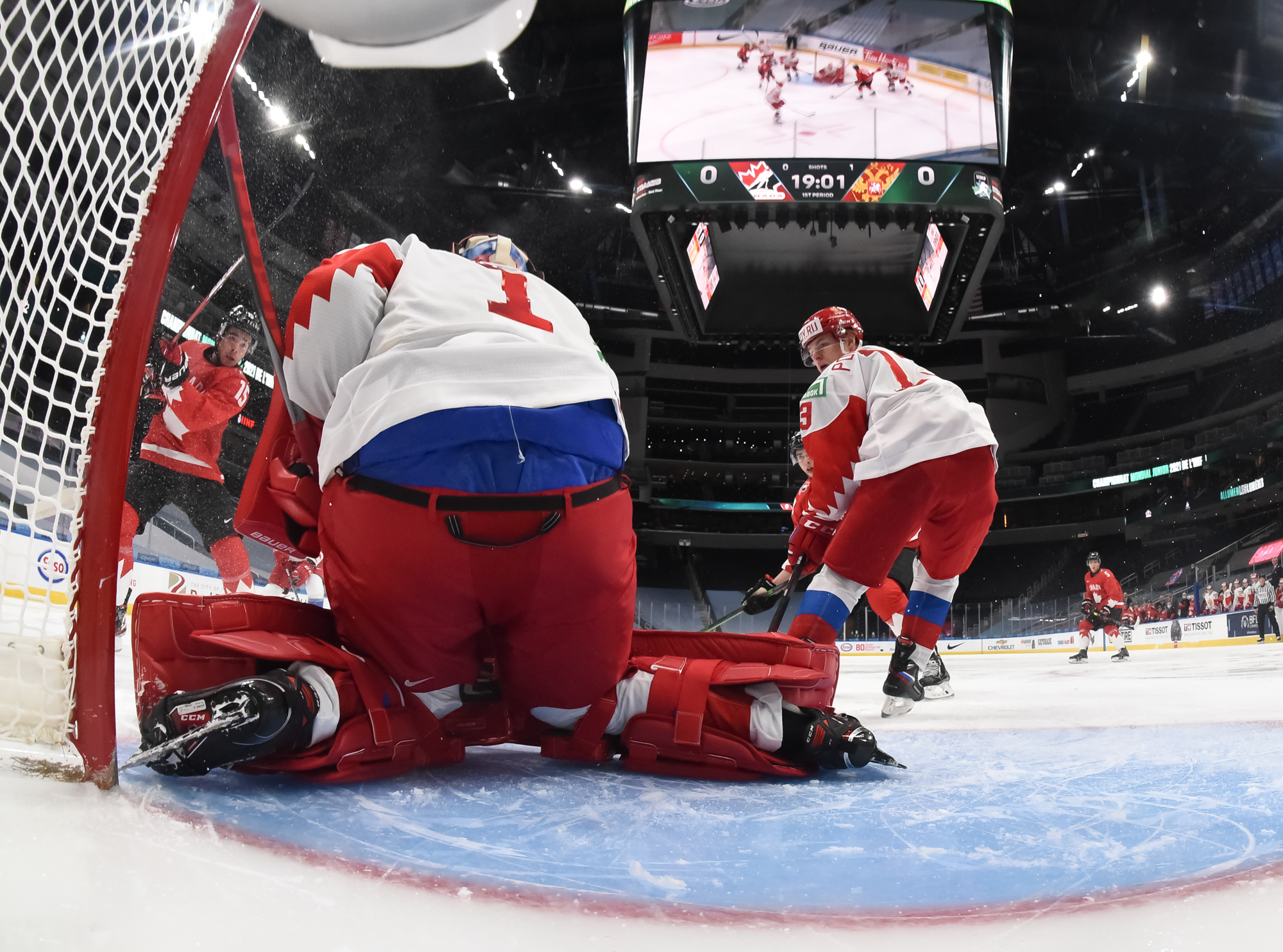 The Russians finally got their first power play of the night late in the period and scored after some good puck movement, but no sooner was it in the net than Canada challenged the play for offside. After a lengthy review, it was clear a player's skates had entered the zone before the puck crossed the blue line.