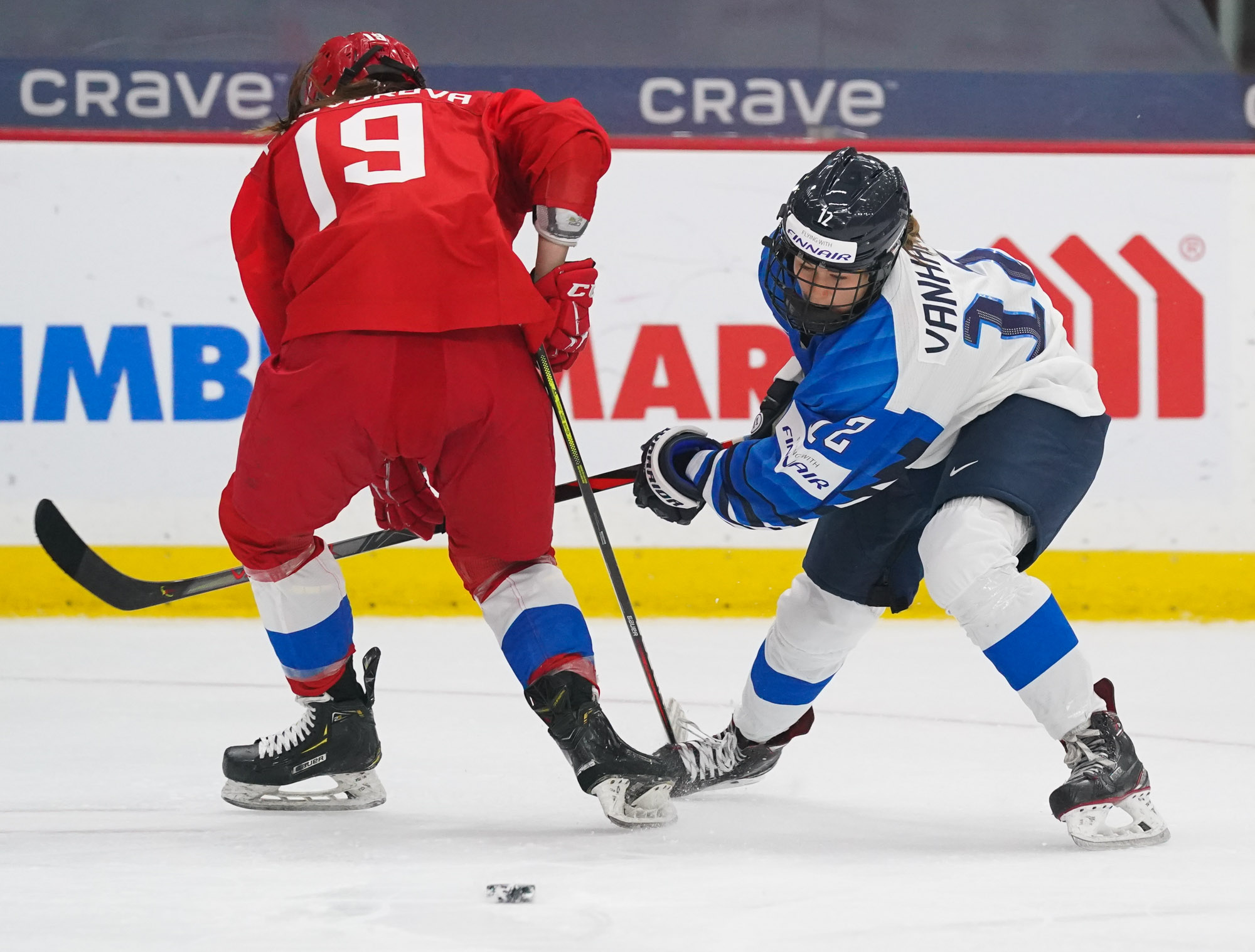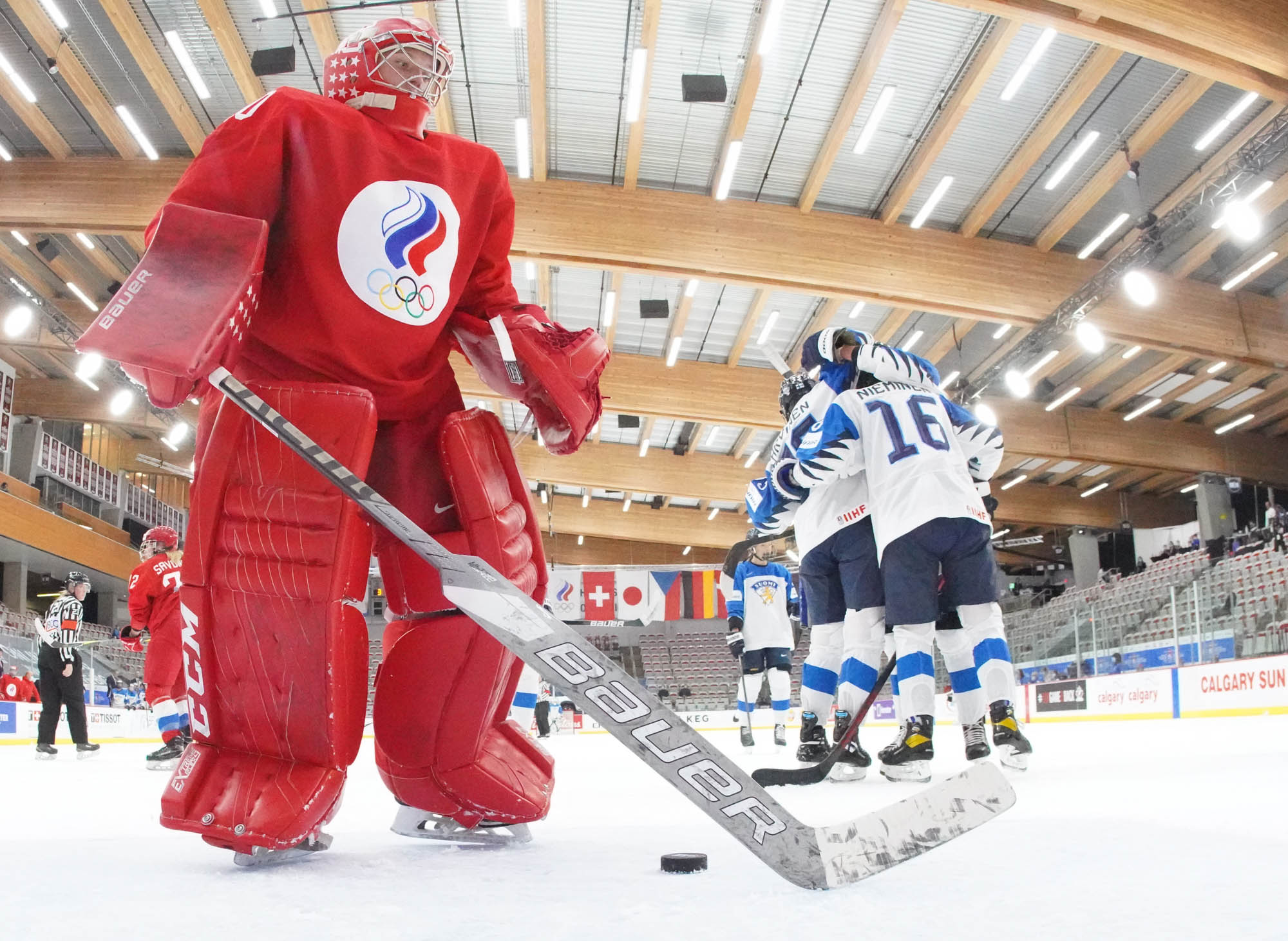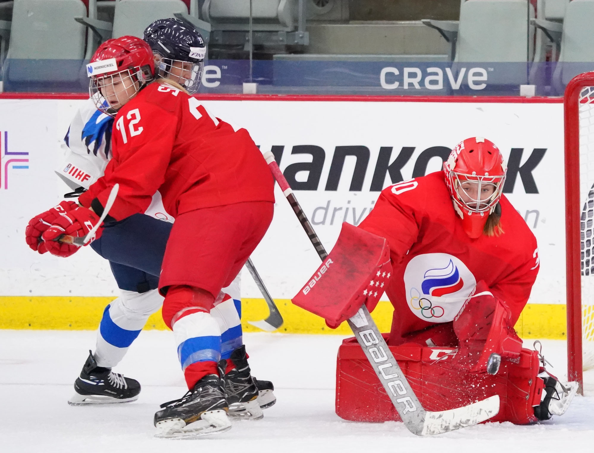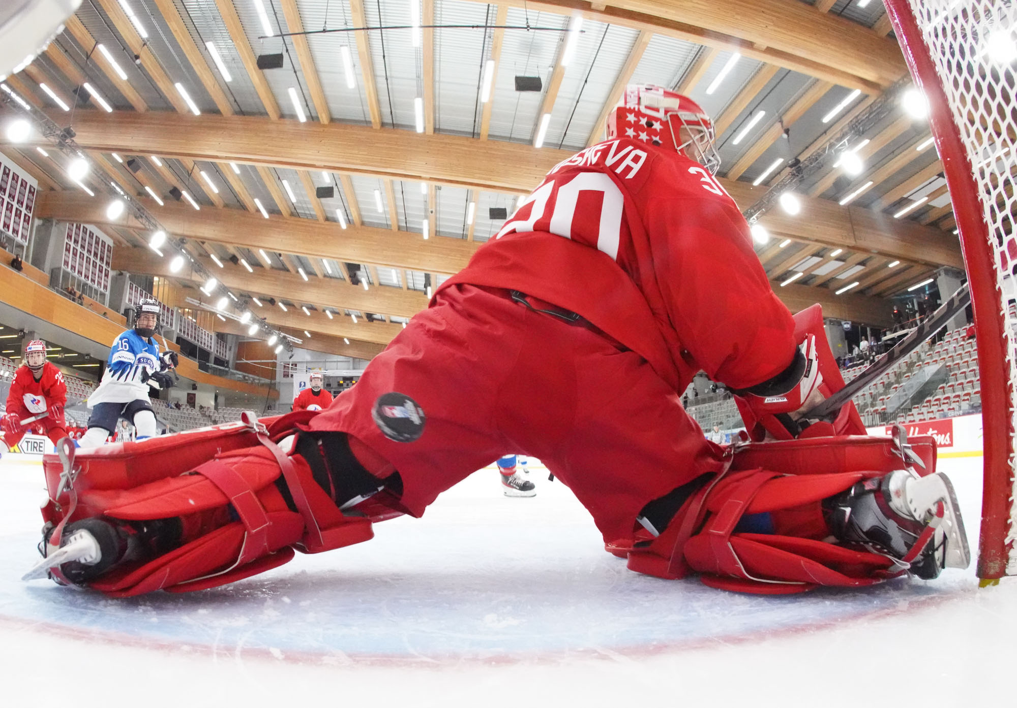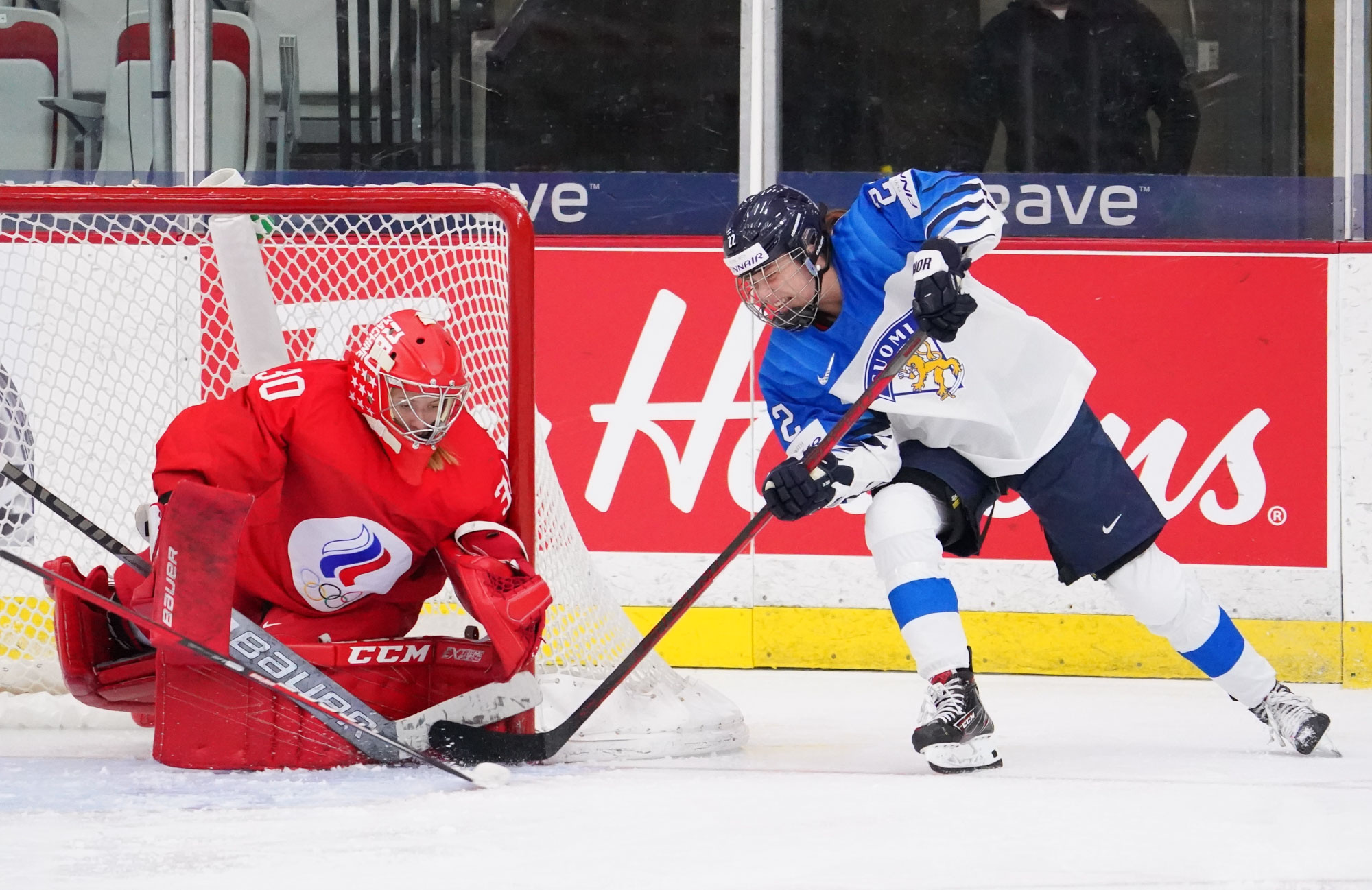 Four and a half minutes later, the Finns made it 2-0 when Karvinen’s long shot went in and out of the glove of goalie Valeria Merkusheva. Petra Nieminen was there to swat the rebound in at 12:33.