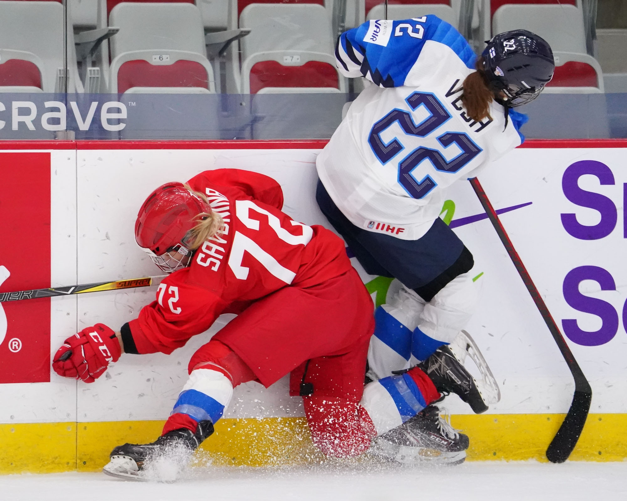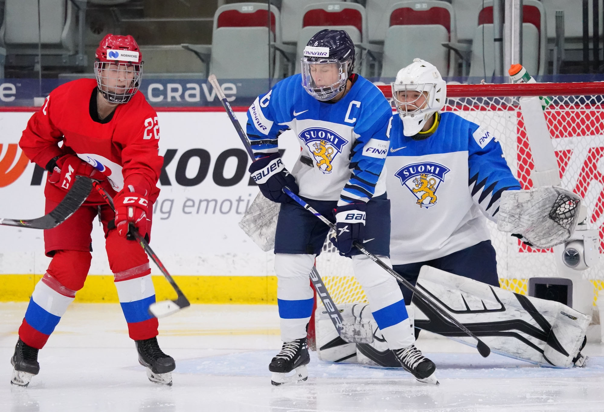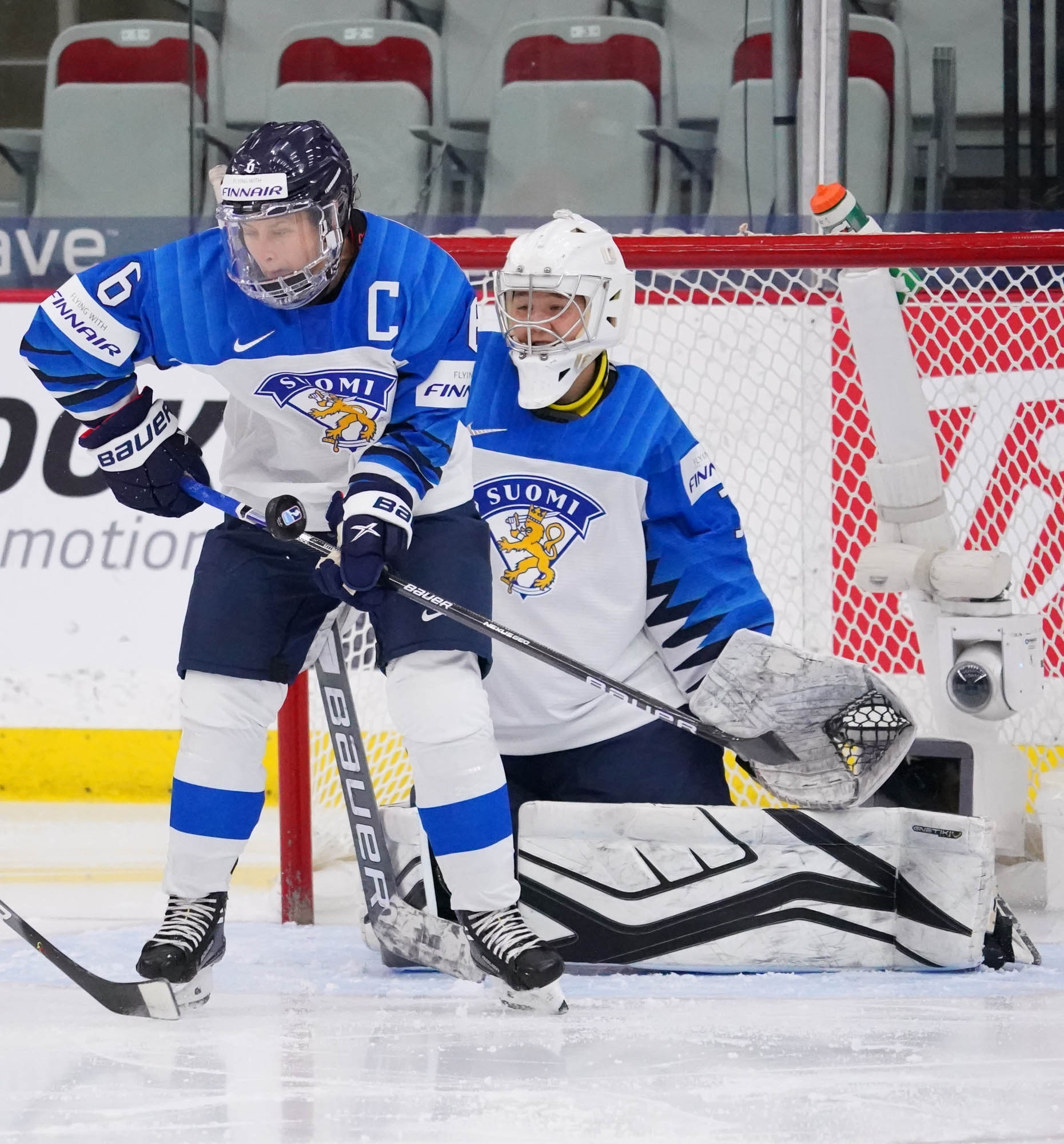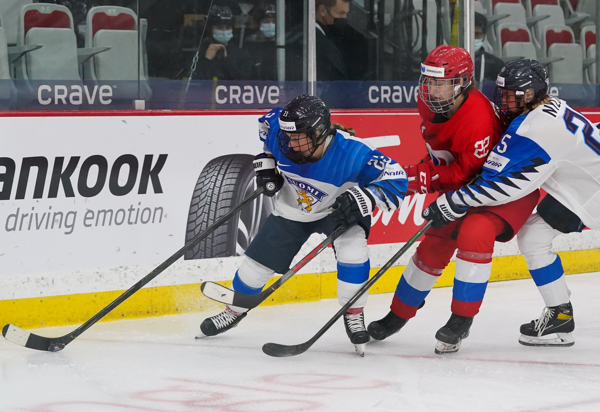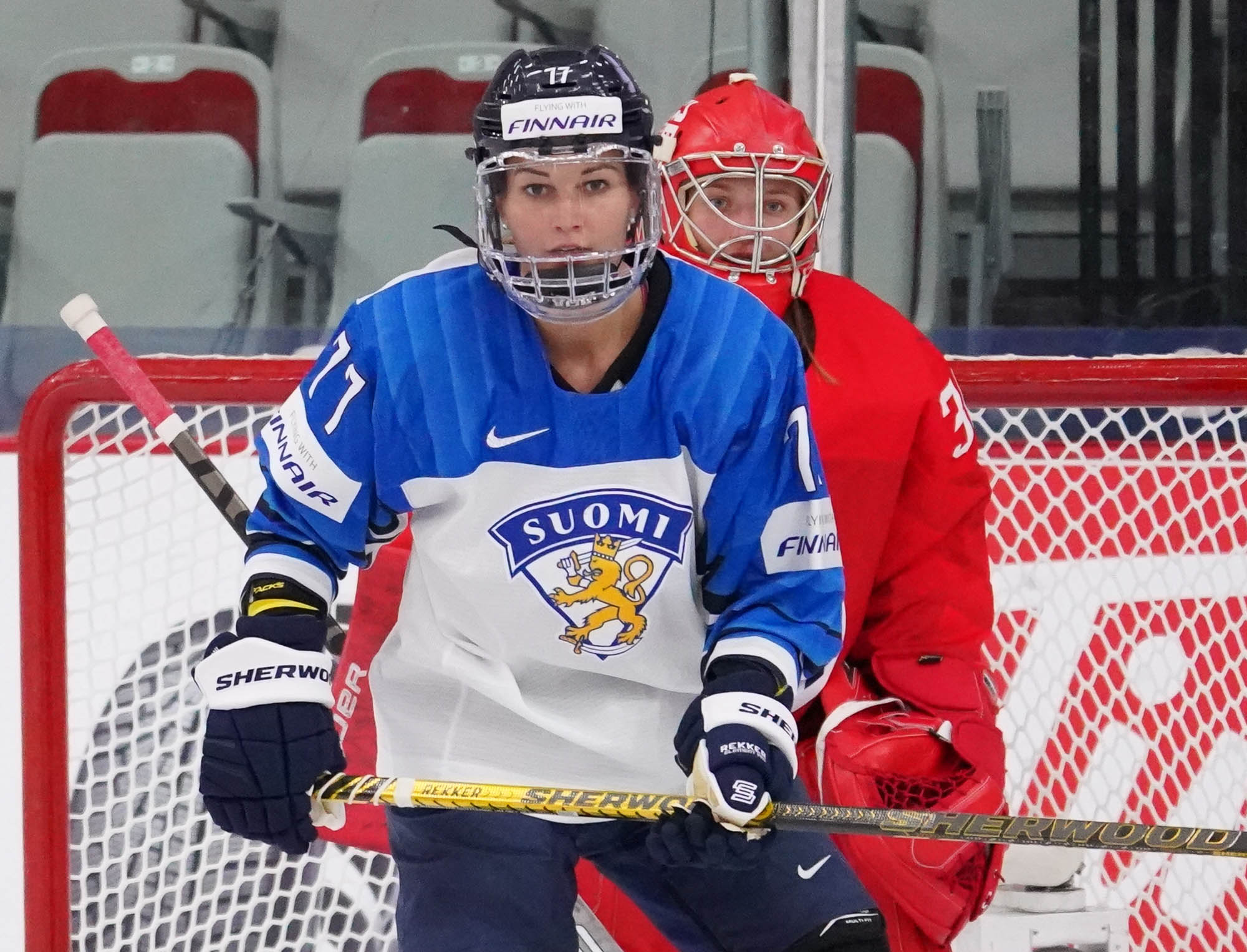 Four and a half minutes later, the Finns made it 2-0 when Karvinen’s long shot went in and out of the glove of goalie Valeria Merkusheva. Petra Nieminen was there to swat the rebound in at 12:33.