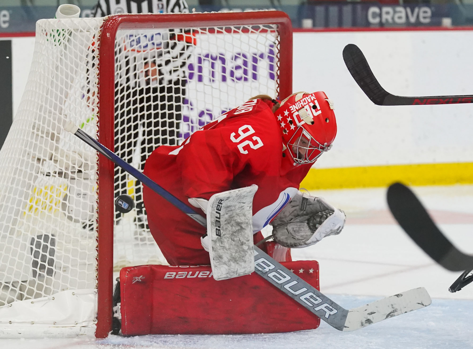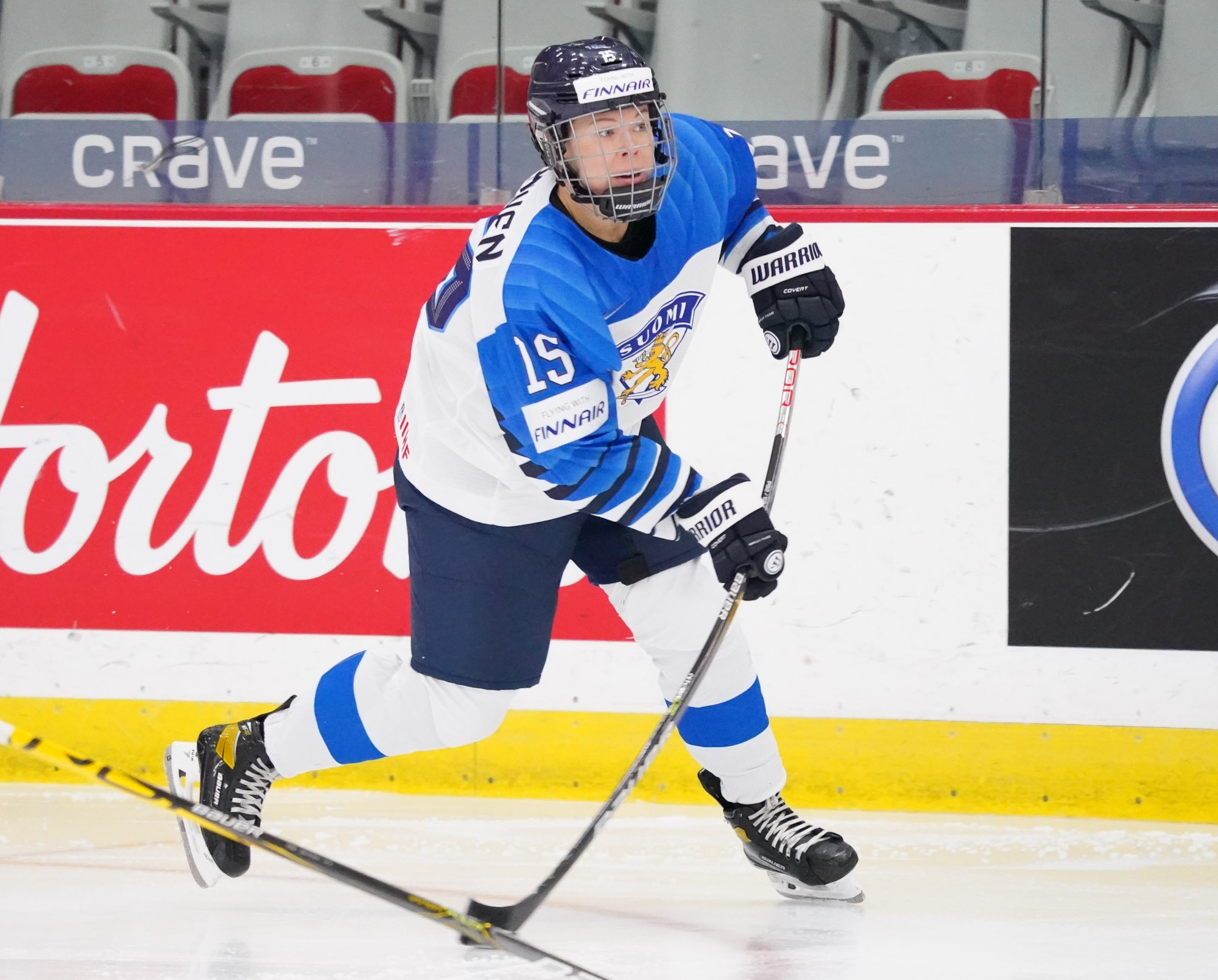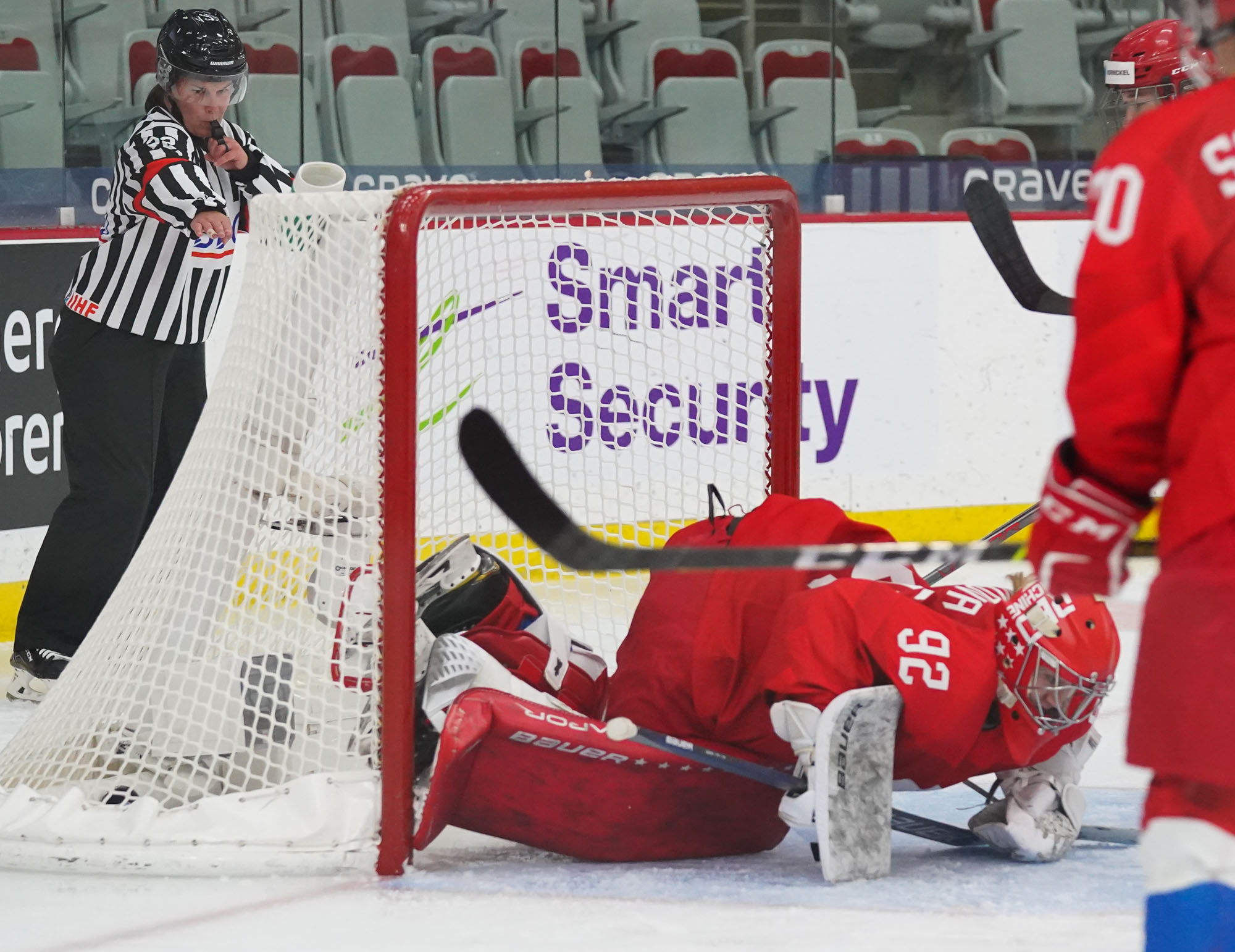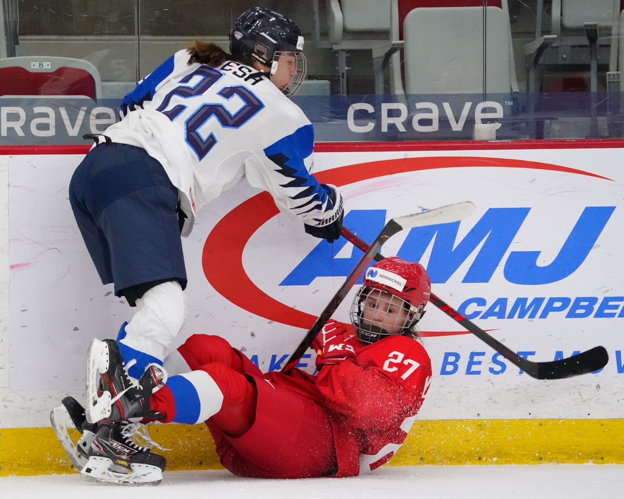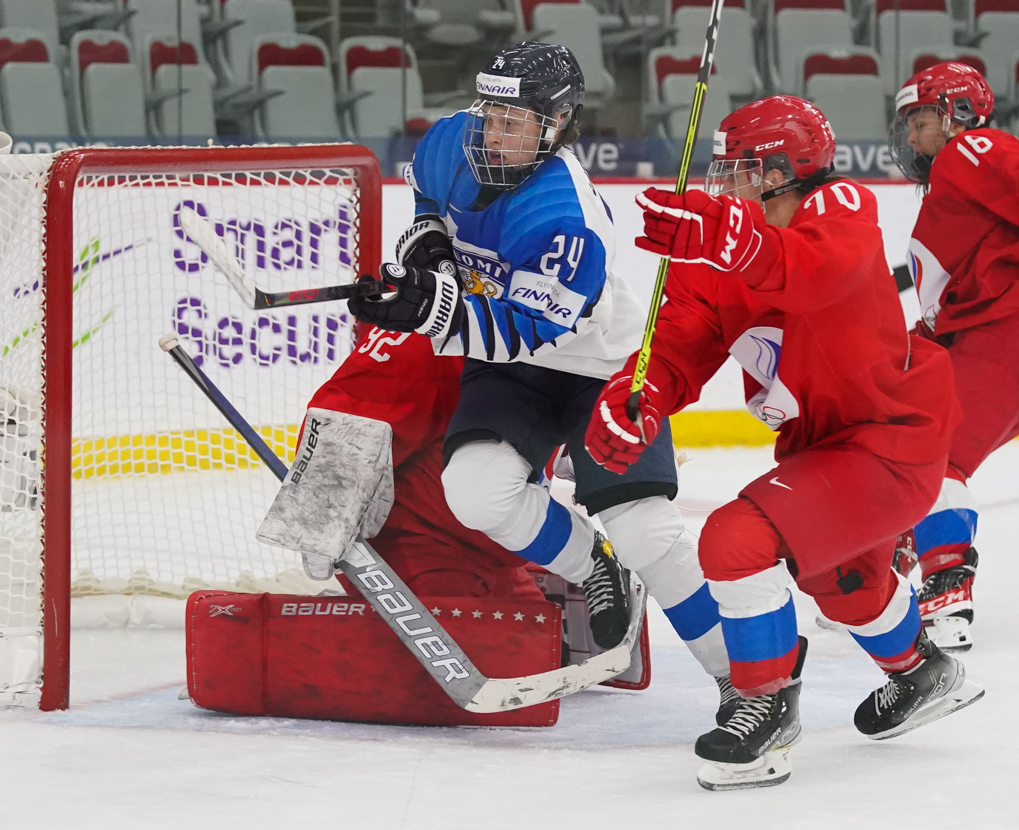 Four and a half minutes later, the Finns made it 2-0 when Karvinen’s long shot went in and out of the glove of goalie Valeria Merkusheva. Petra Nieminen was there to swat the rebound in at 12:33.