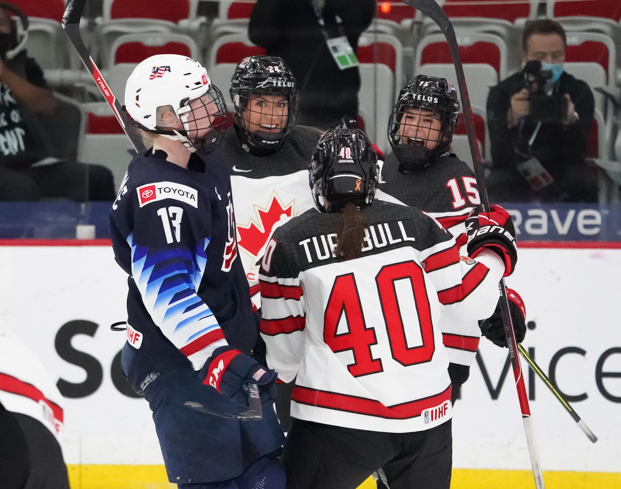 The Americans entered the game with a 29-game winning streak at the Women’s Worlds, their last loss coming to Canada, 3-2 in a penalty-shot shootout, on April 2, 2013. During that time, they had defeated Canada eight straight times.