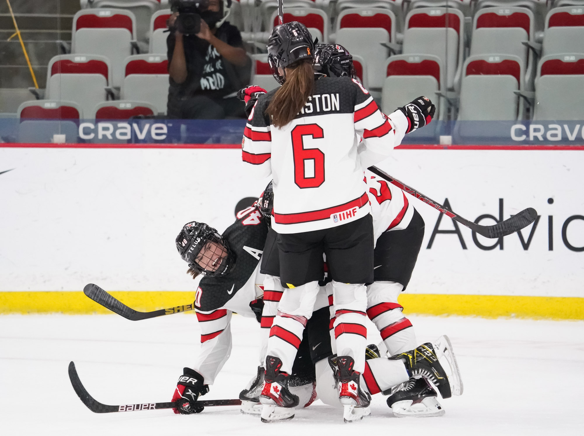 Sarah Nurse scored her first goal of the tournament at 10:36 short-handed. Coming down the left side on another rush, she fired a bullet over Nicole Hensley’s glove to make it 5-0.
