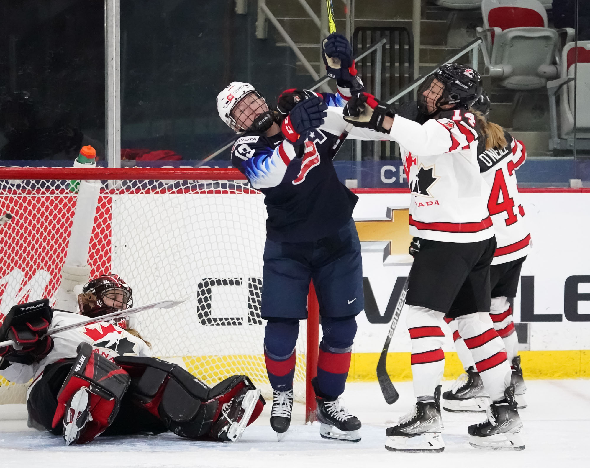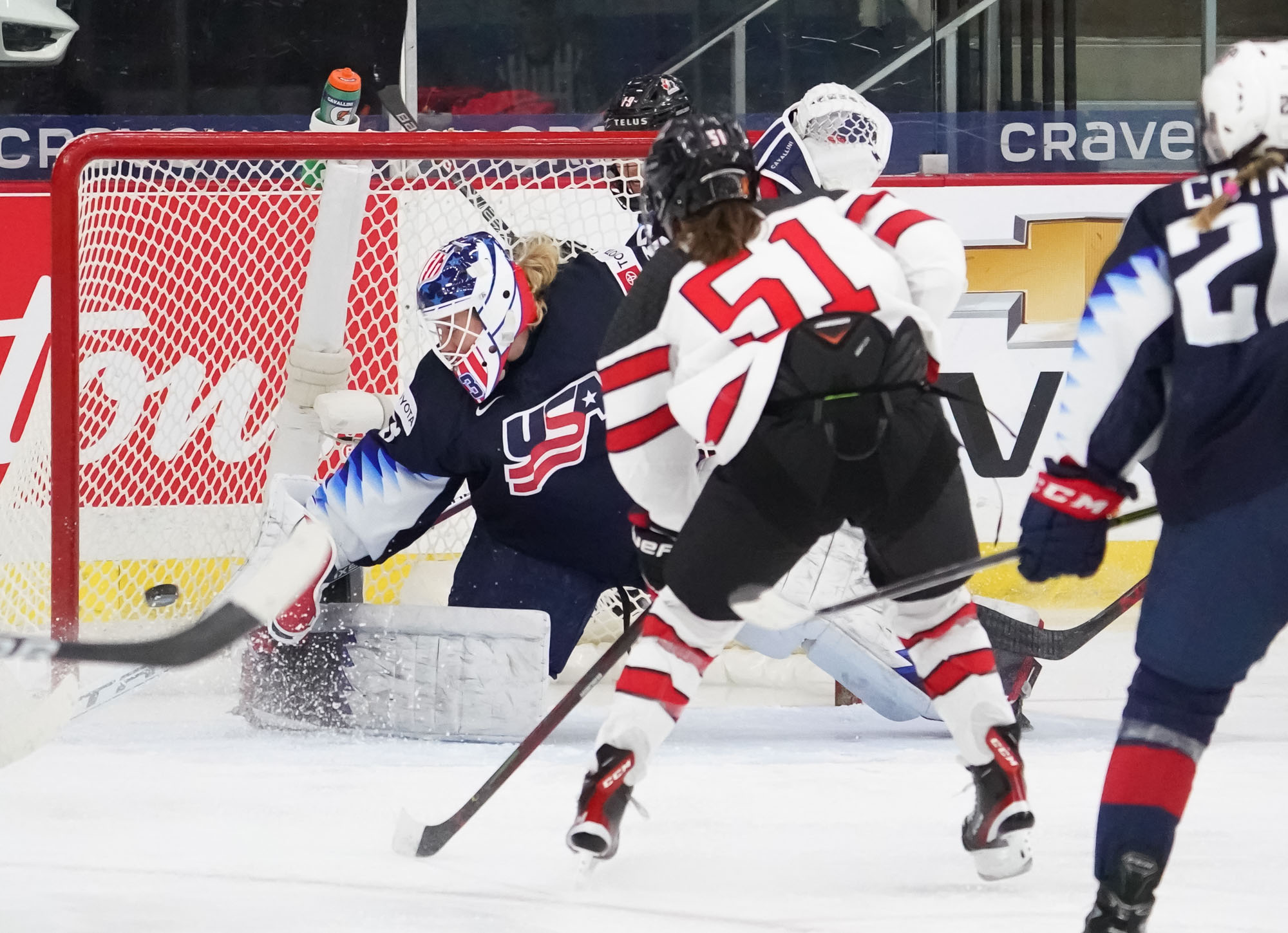 Three minutes later, Canada created a goal from nothing more than brute tenacity behind the U.S. goal, Rattray finishing the play by stuffing the puck in the short side from behind the goal line. That spelled the end for Cavallini, but not for the hosts.