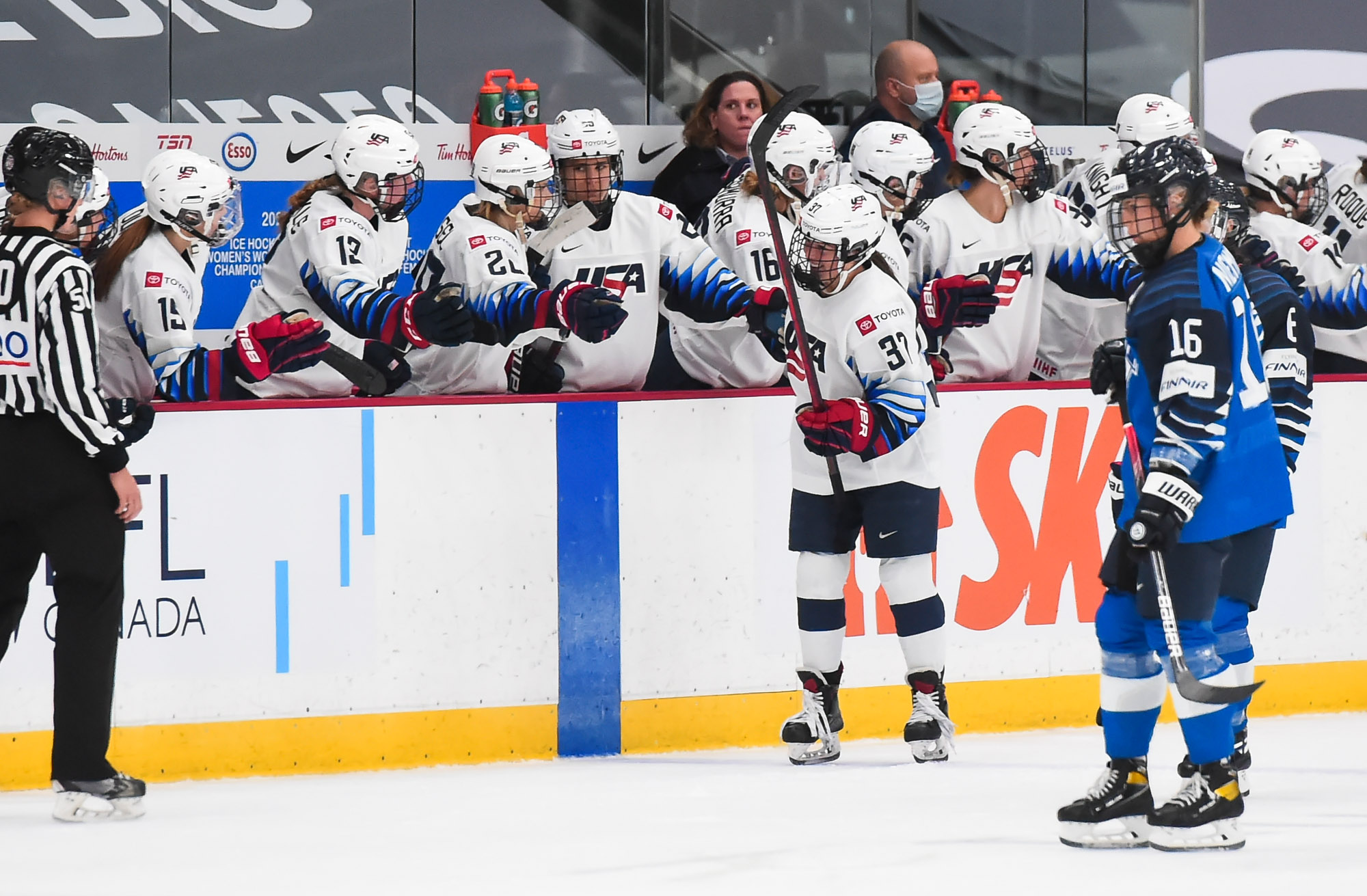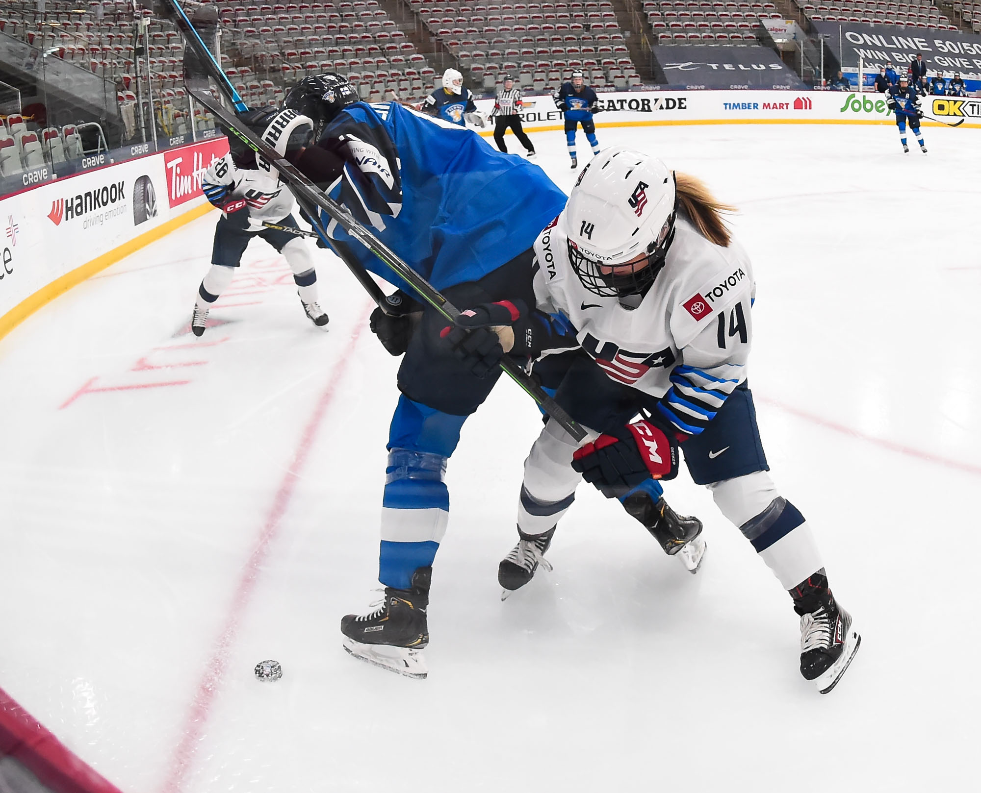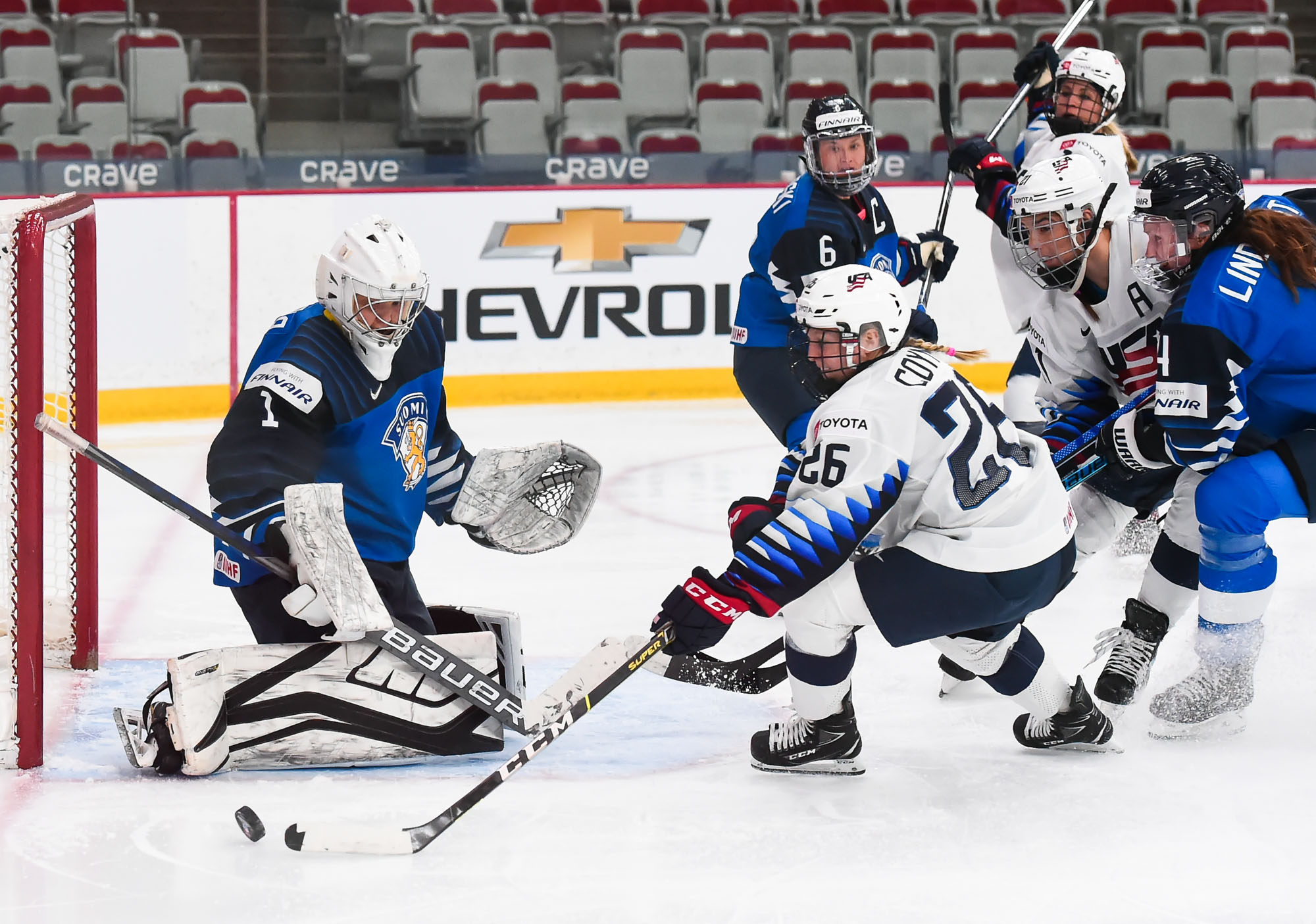 The U.S. applied heavy pressure in the Finnish zone en route to a 3-0 semi-final victory at the 2021 IIHF Ice Hockey Women's World Championship in Calgary.