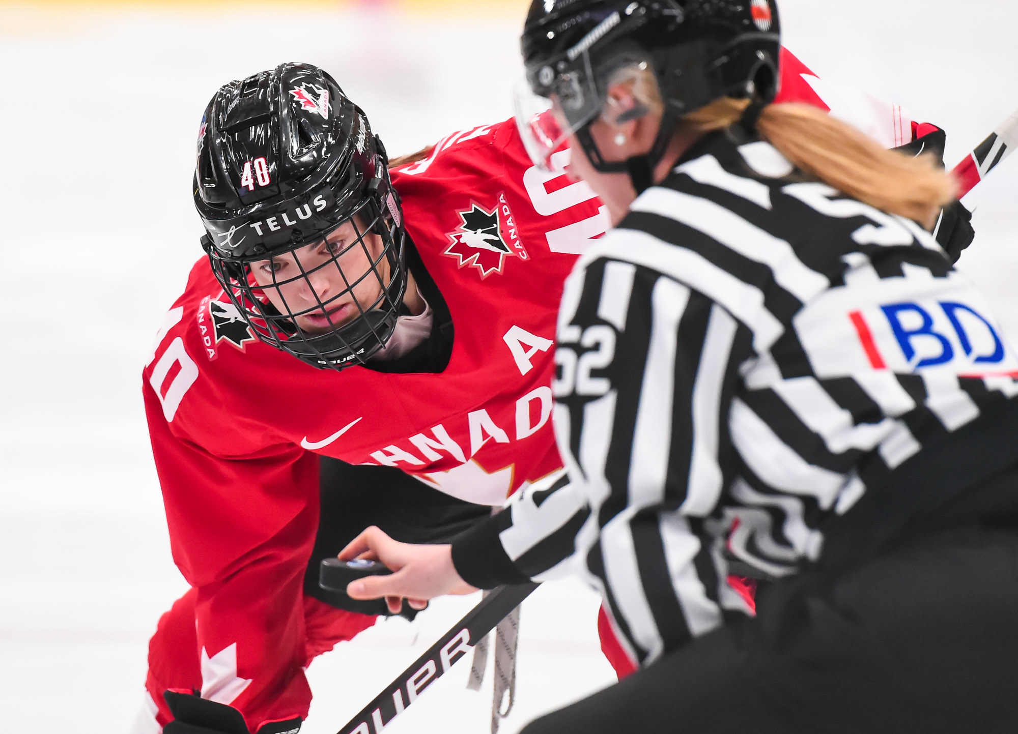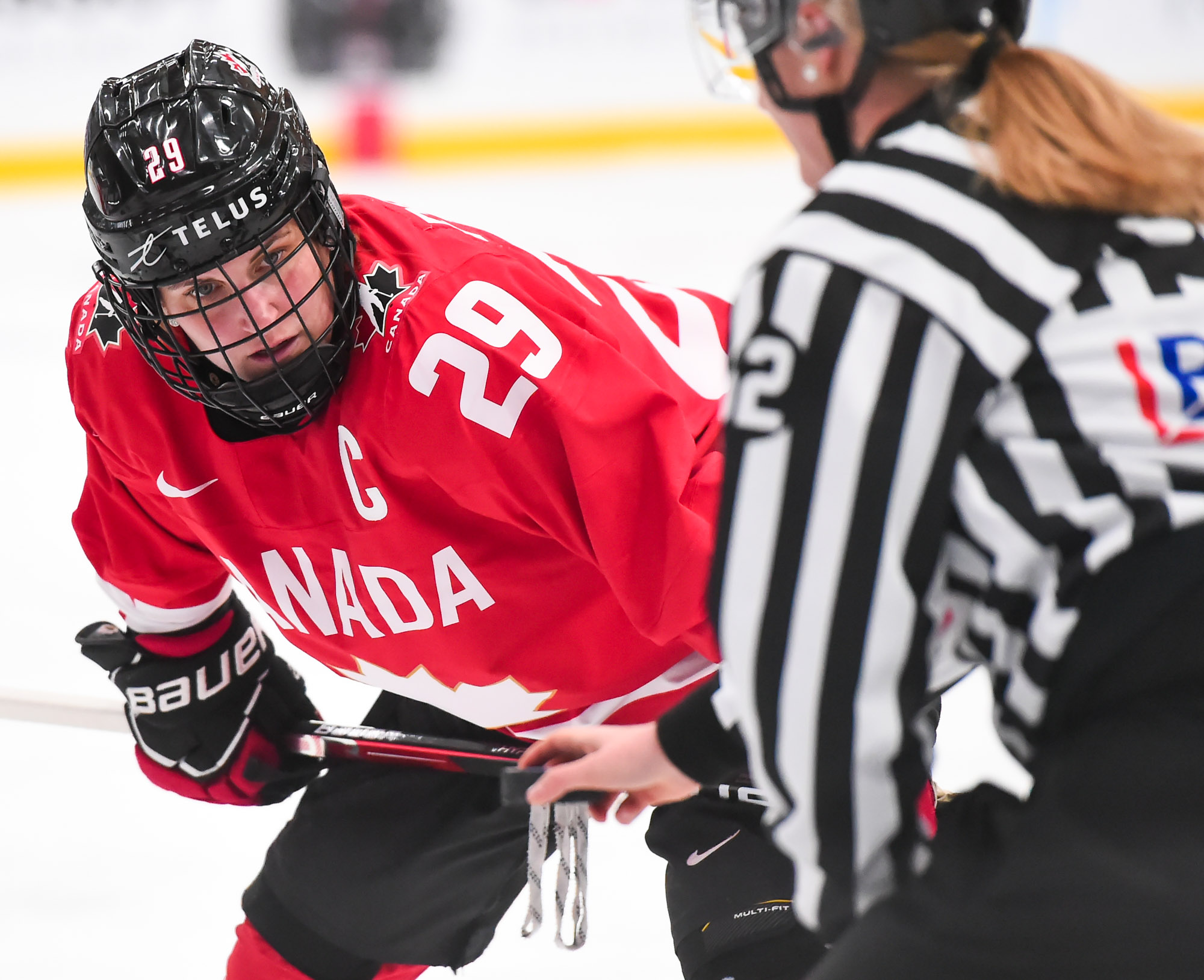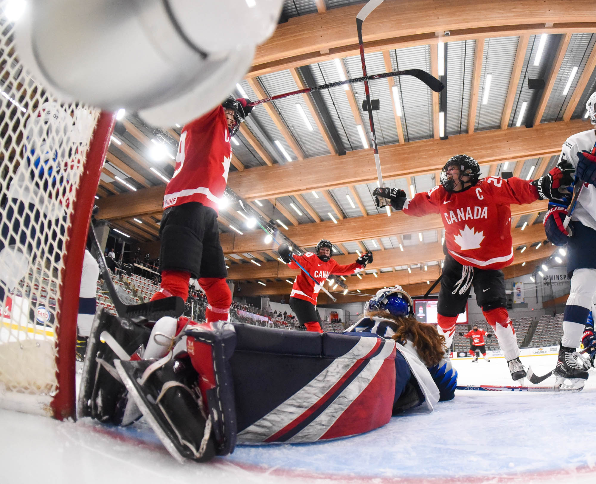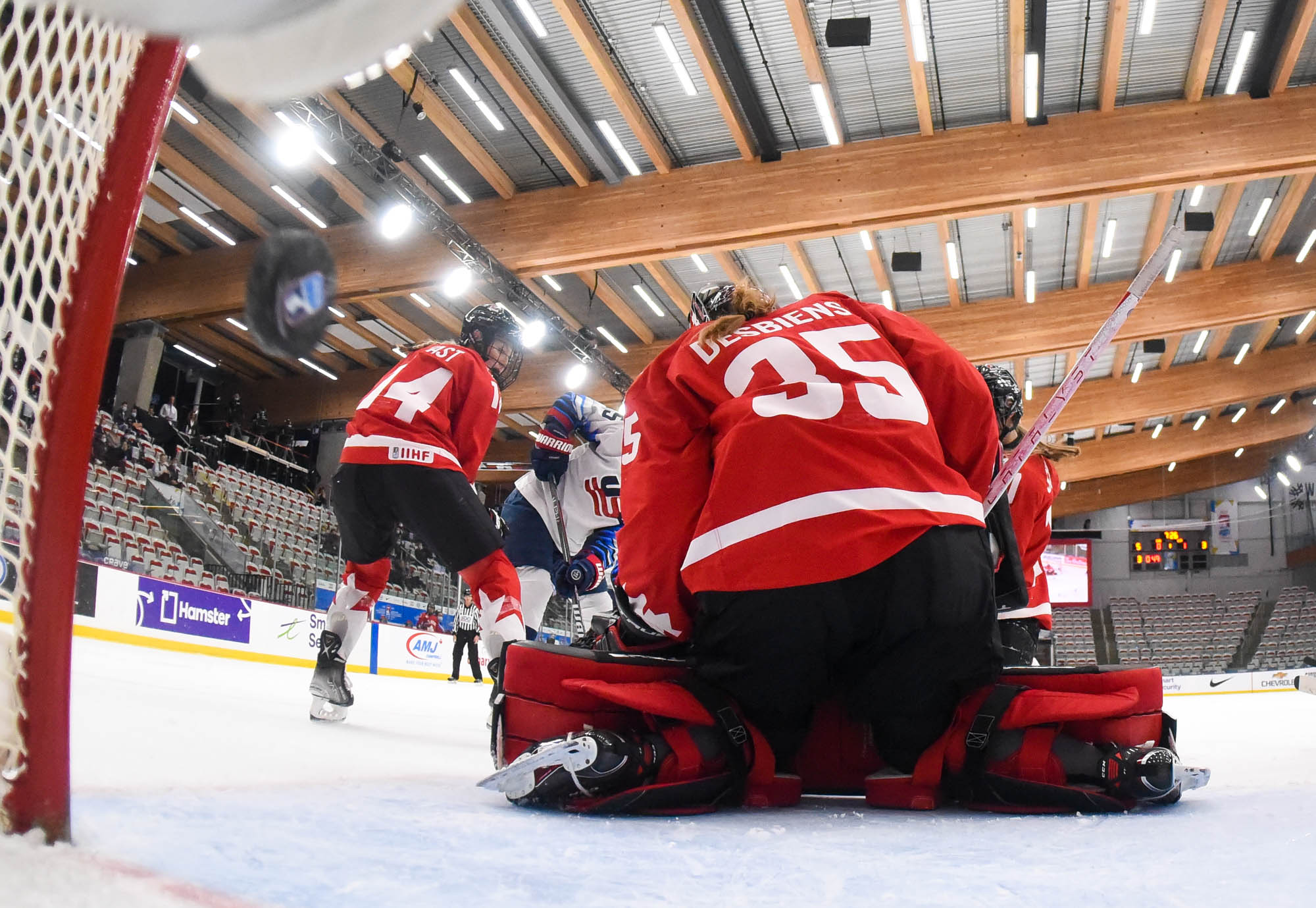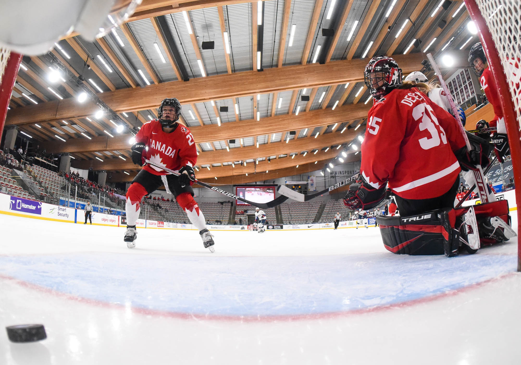 Not to be outdone, Desbiens then came to Canada's rescue. She stopped Hayley Scamurra, who blew by her cover and got a great shot on goal, only to be foiled by the goalie. Moments later, Abbey Murphy had a chance in close but Desbiens held her ground.