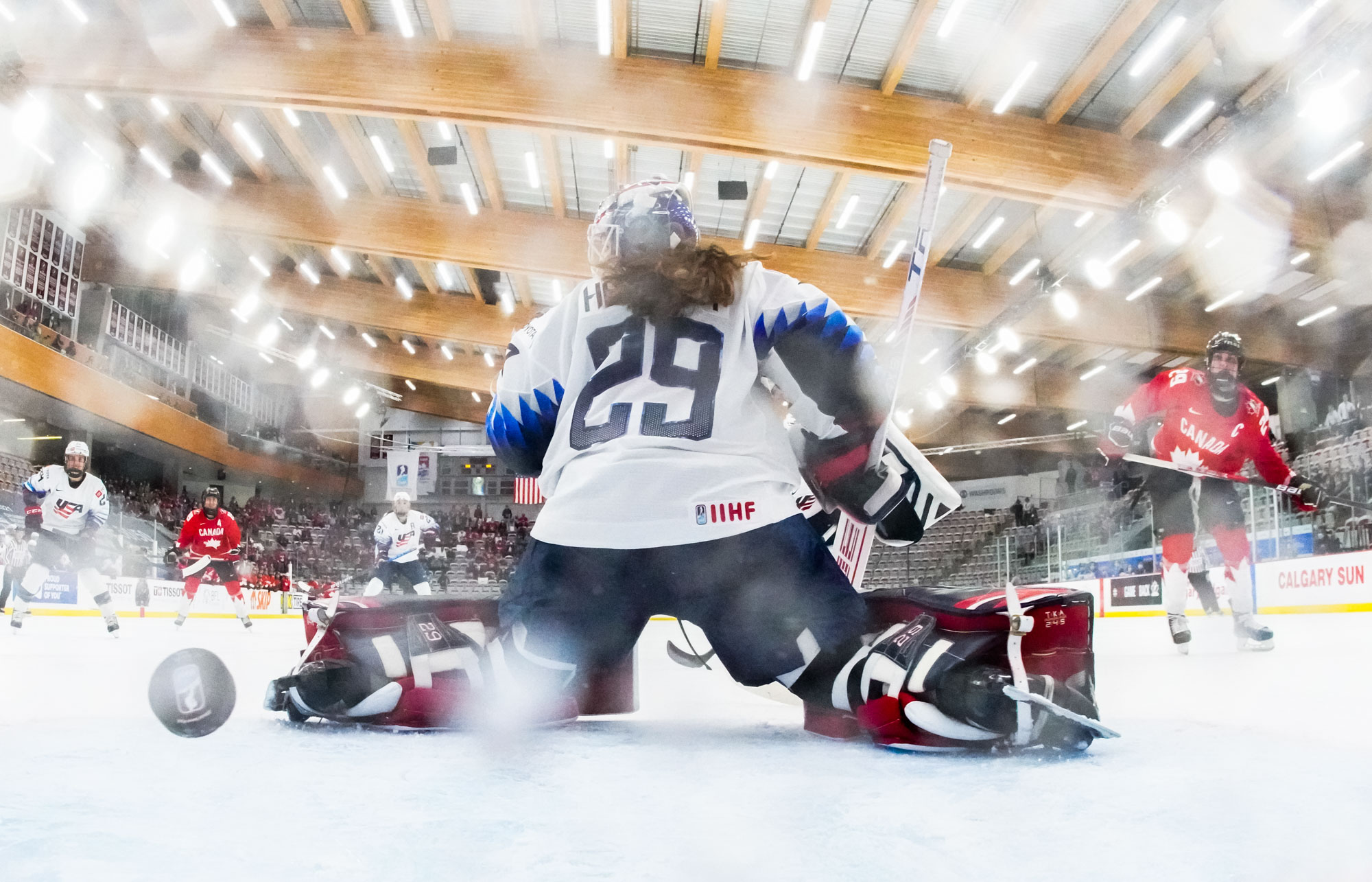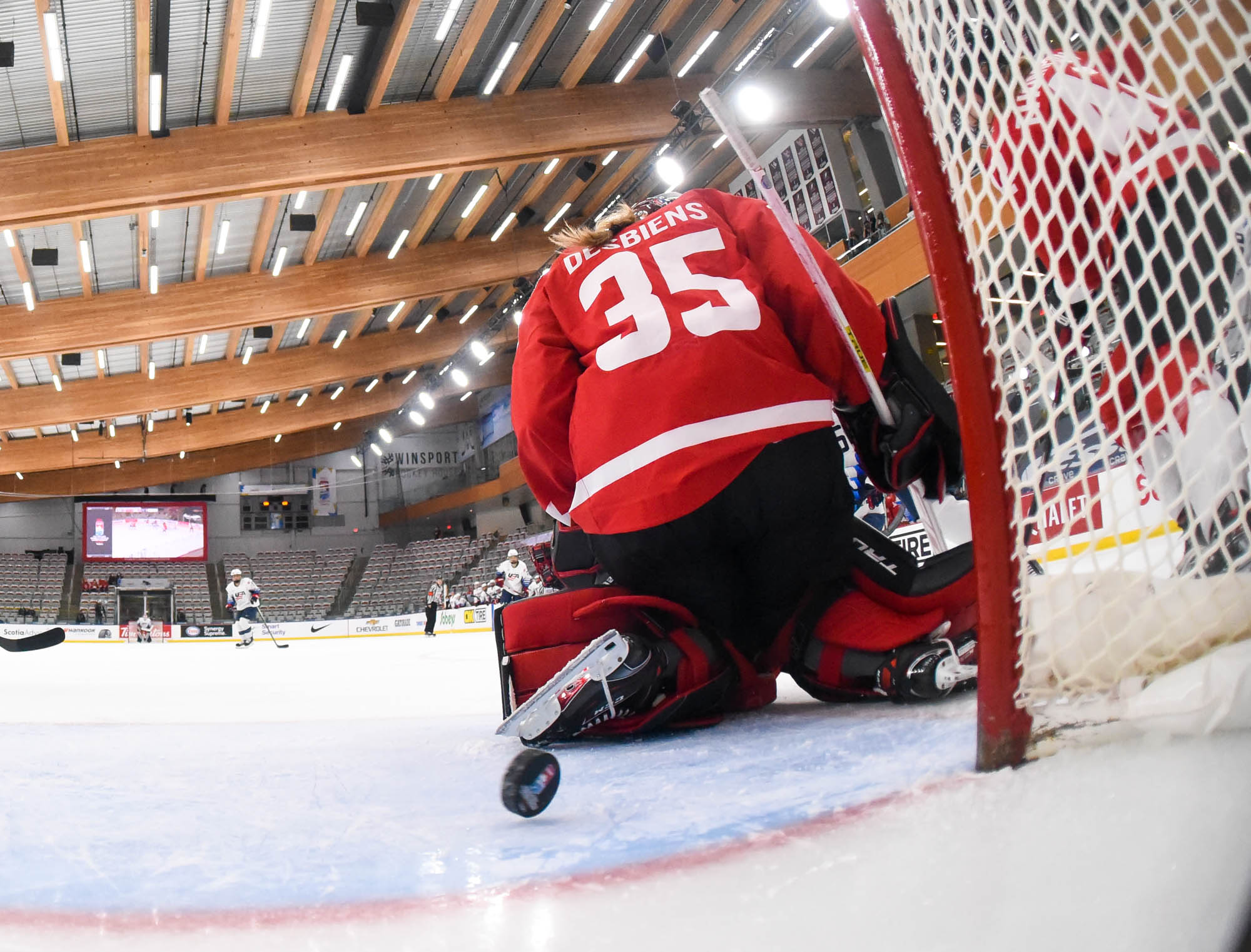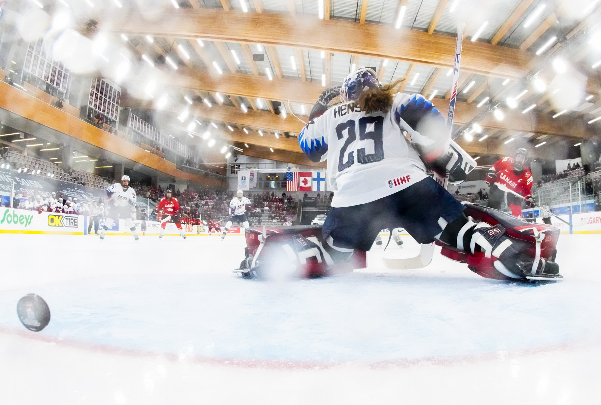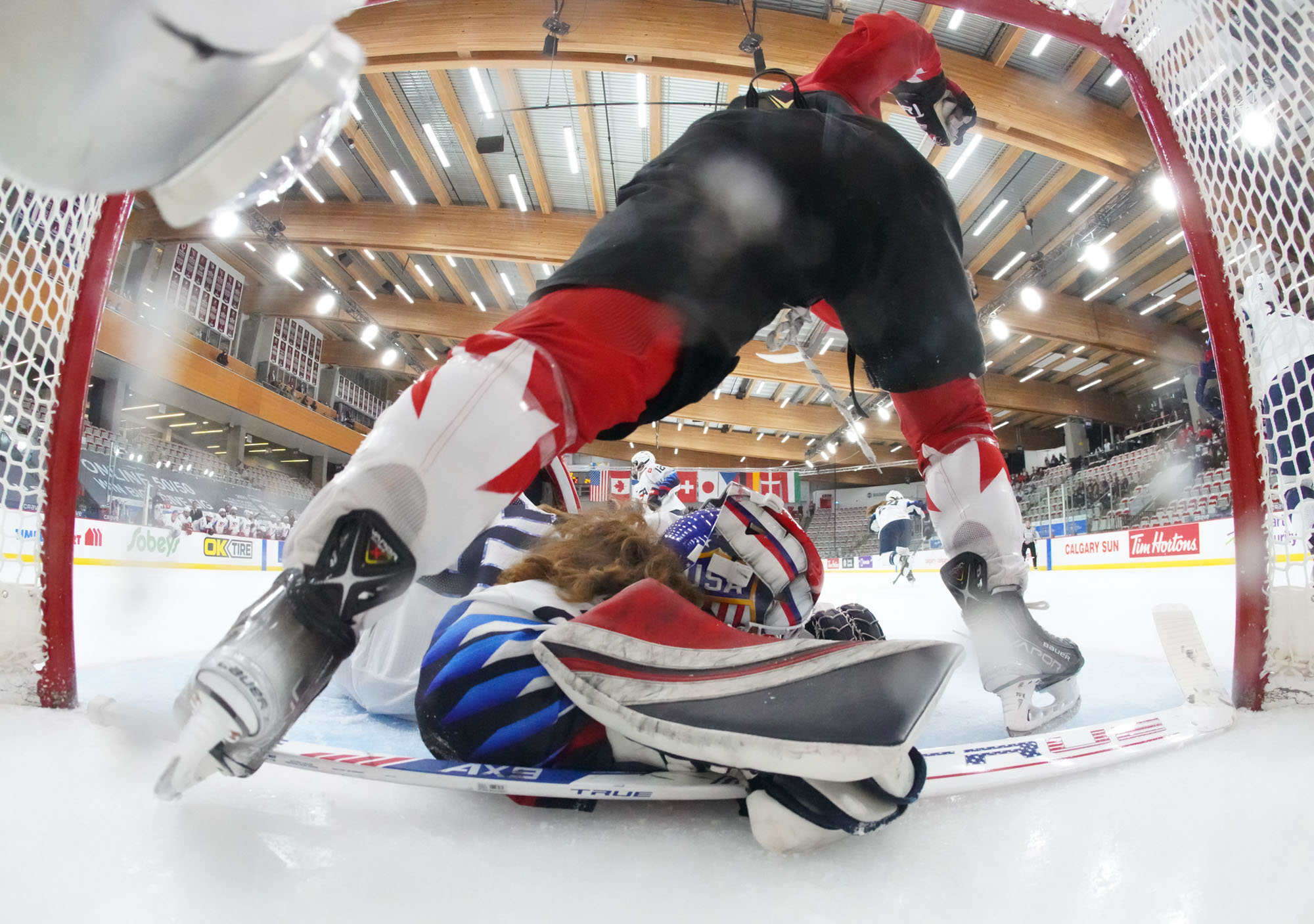 They swarmed Desbiens in the final minute, and although they couldn’t score they did draw a penalty to start the third with a power play. Canada killed that off to start the third, and teams exchanged power plays midway through the period without a goal. The Canadians had two great chances soon after, though, but the puck bounced over Jenner's stick on one chance from the slot and Johnston wired a shot into the logo of Hensley's sweater on the other.