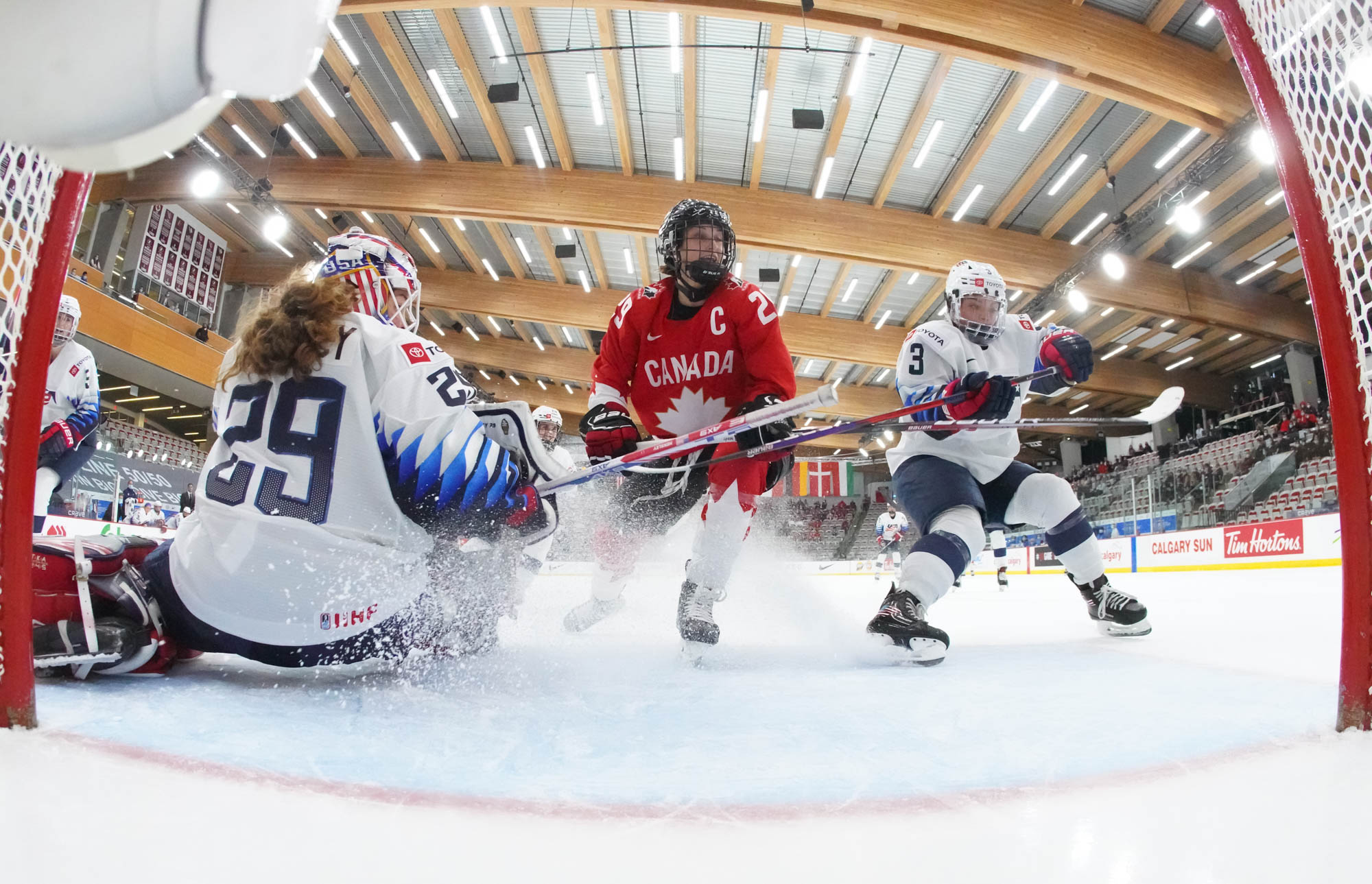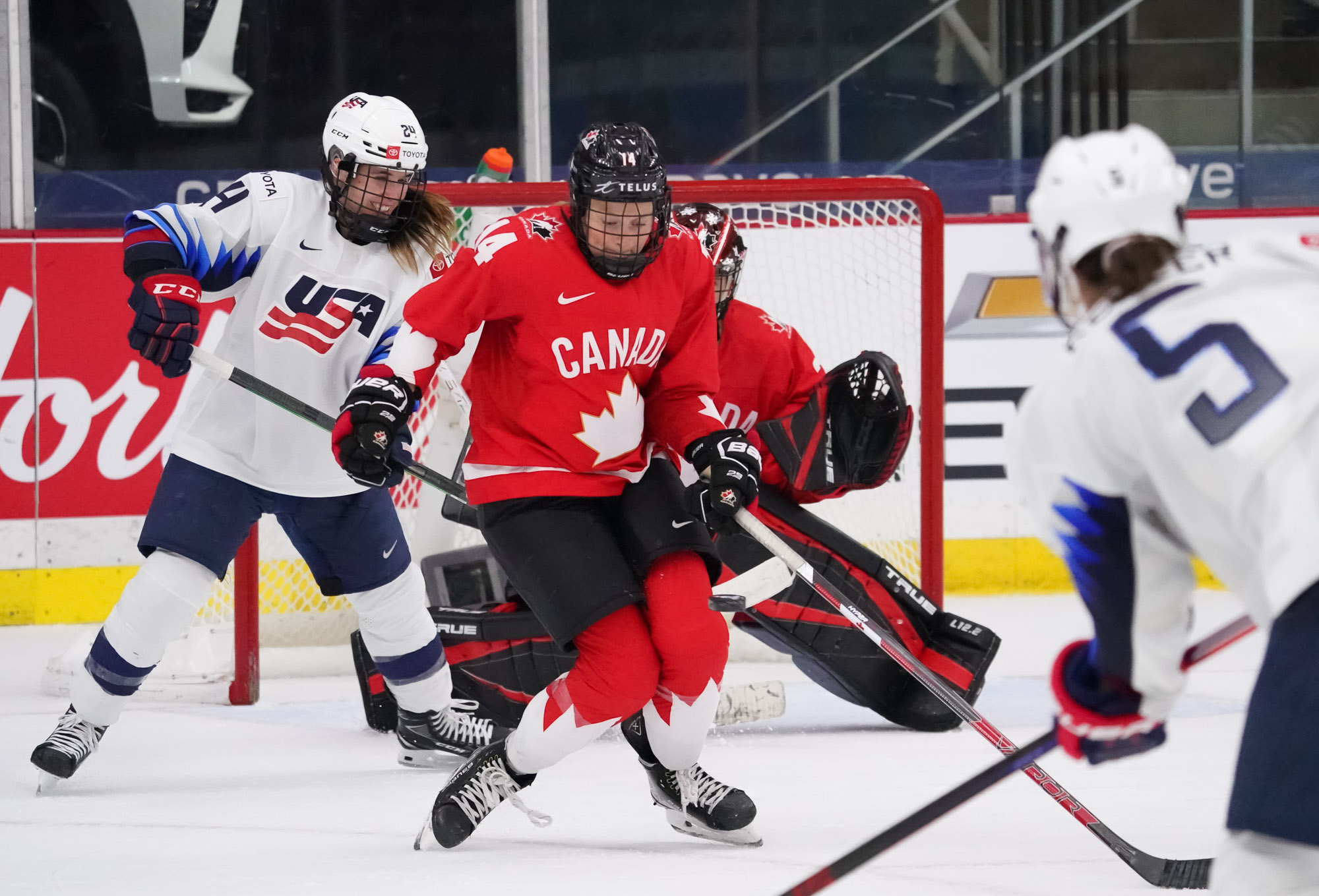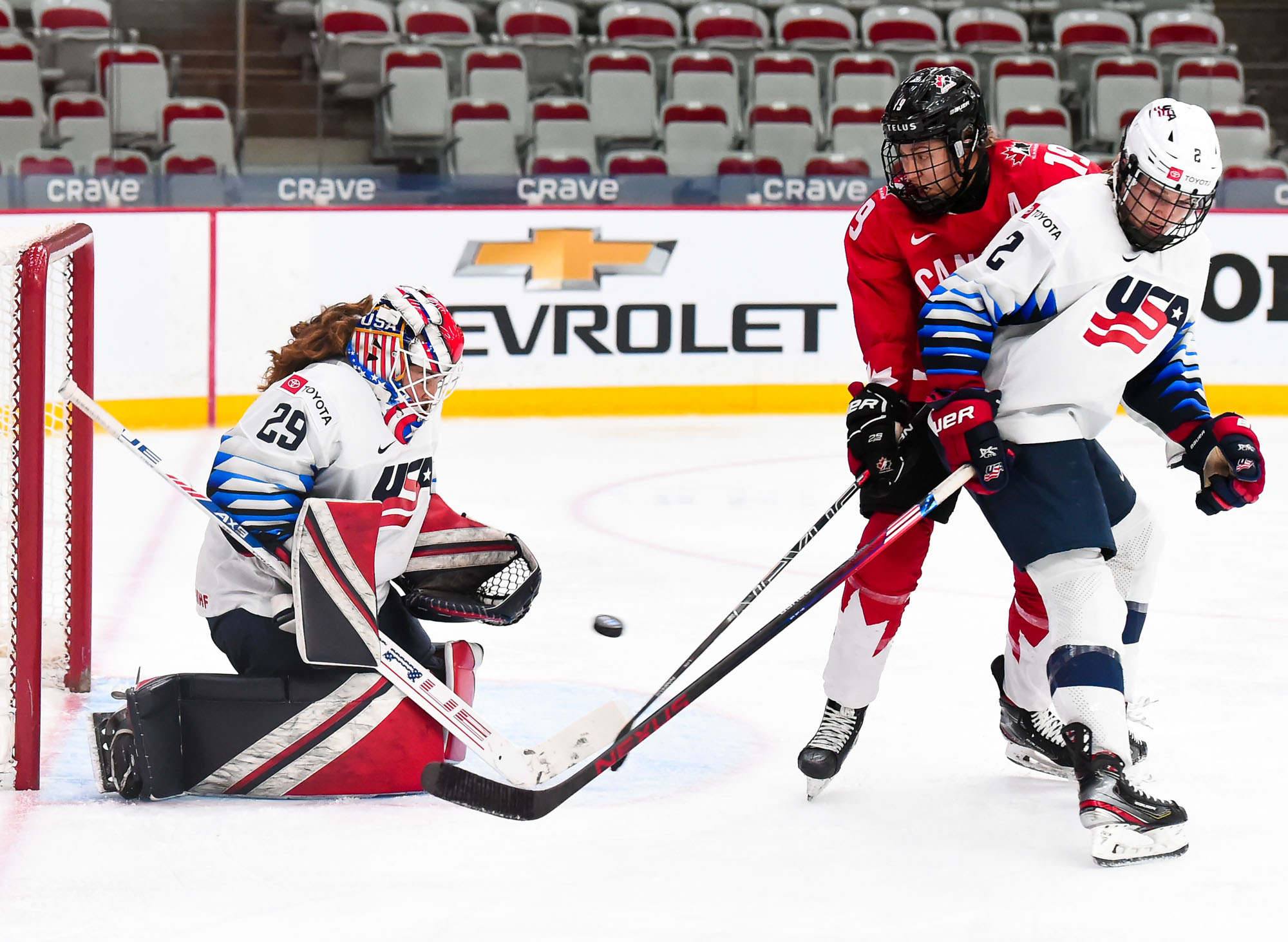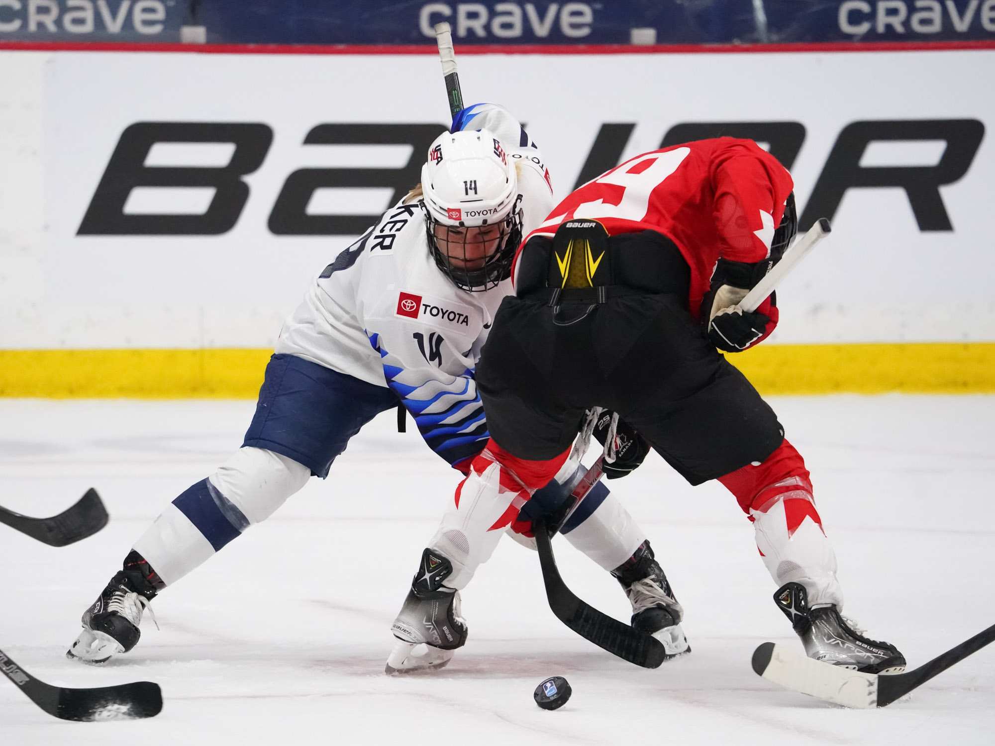 Canada came out in the second desperate and determined and managed to take control of the game until the final minute. The hosts got an early power play thanks to a faceoff violation by the U.S. and converted on the chance when Brianne Jenner got to Sarah Fillier’s shot and banged it in at 4:13.
