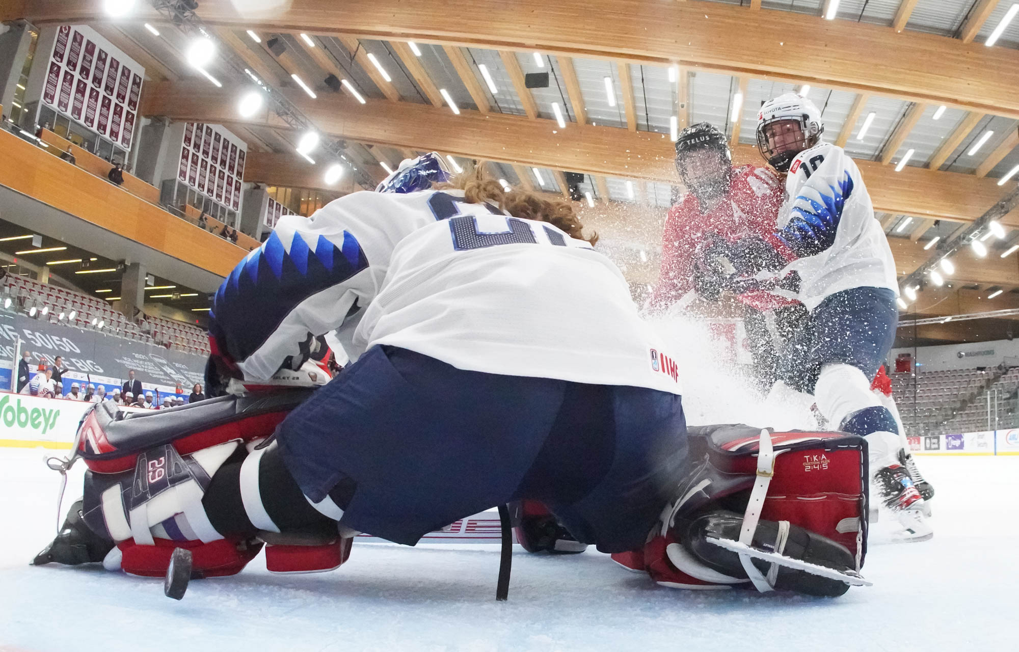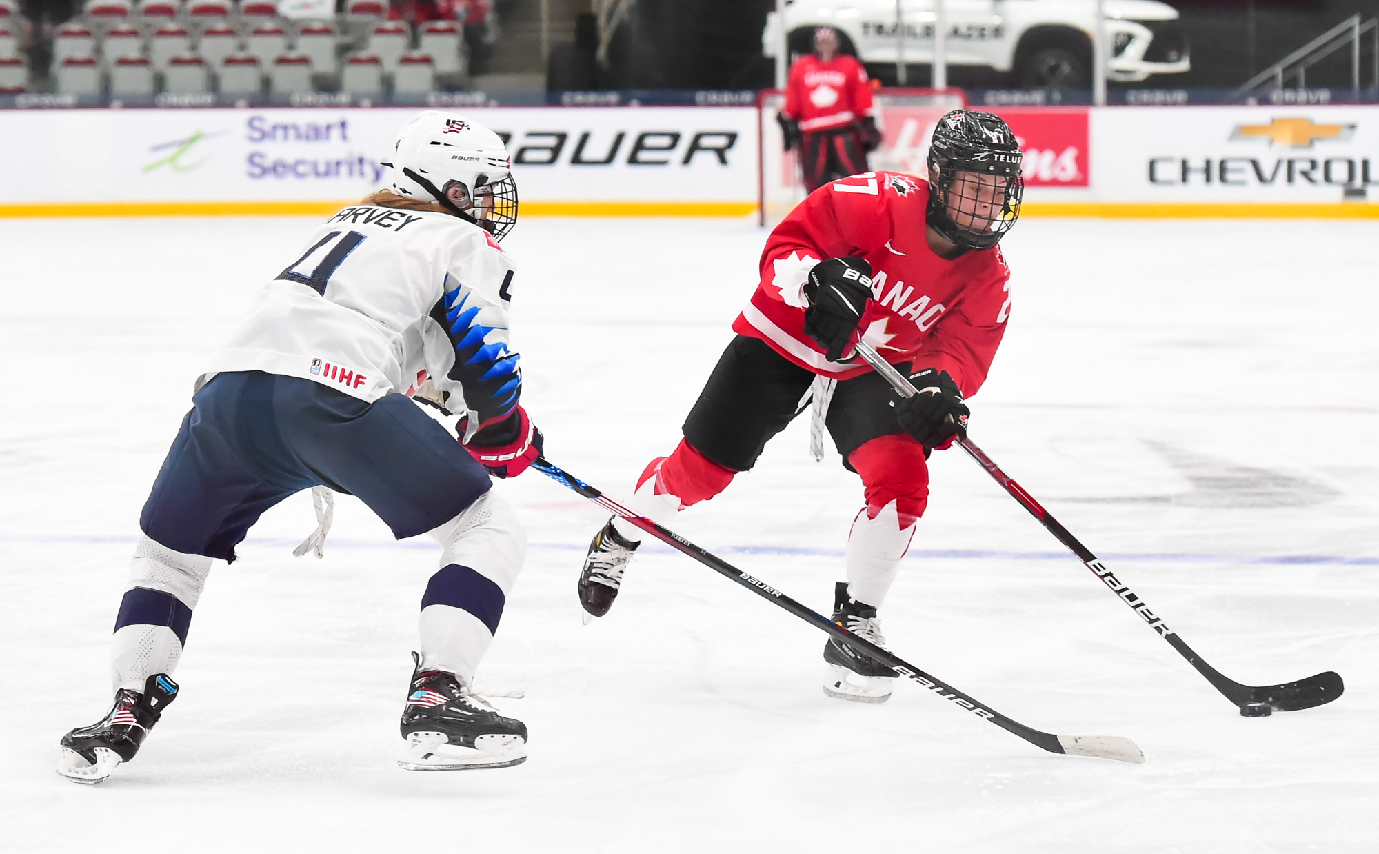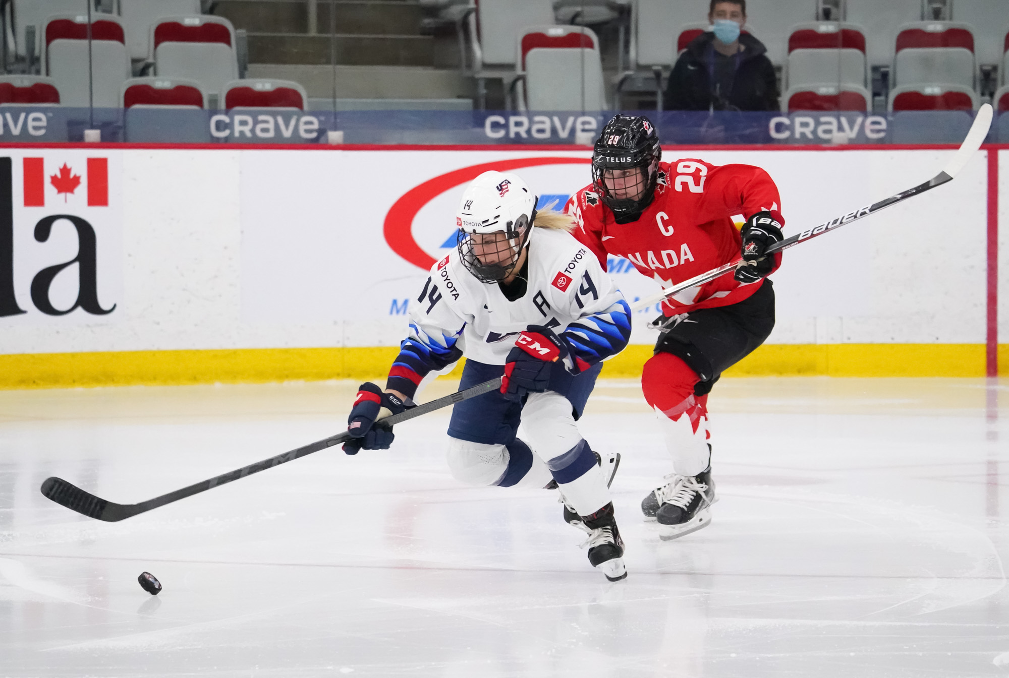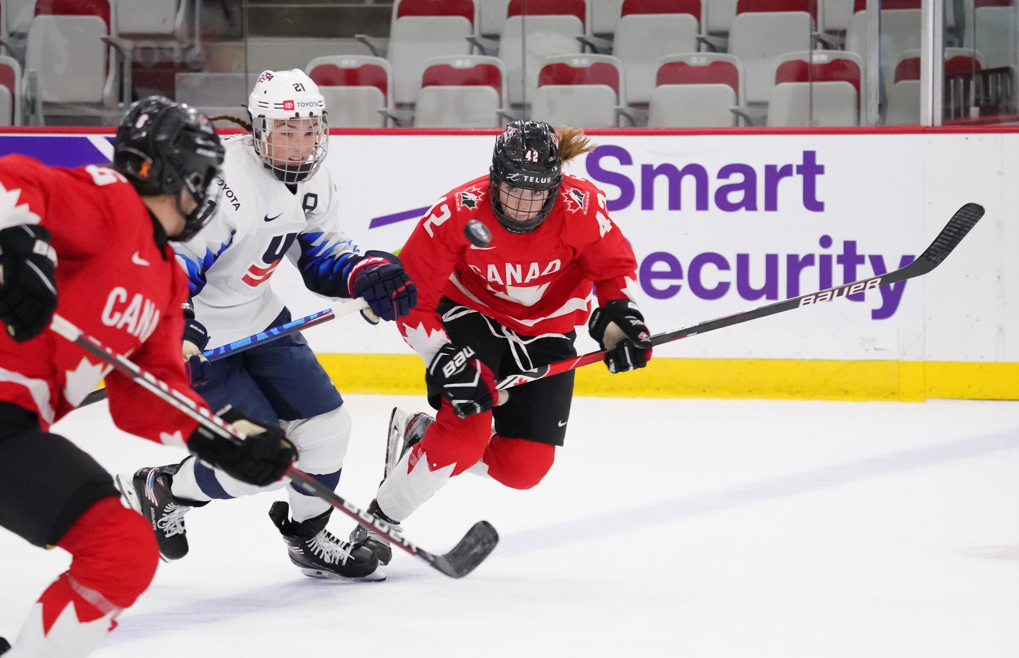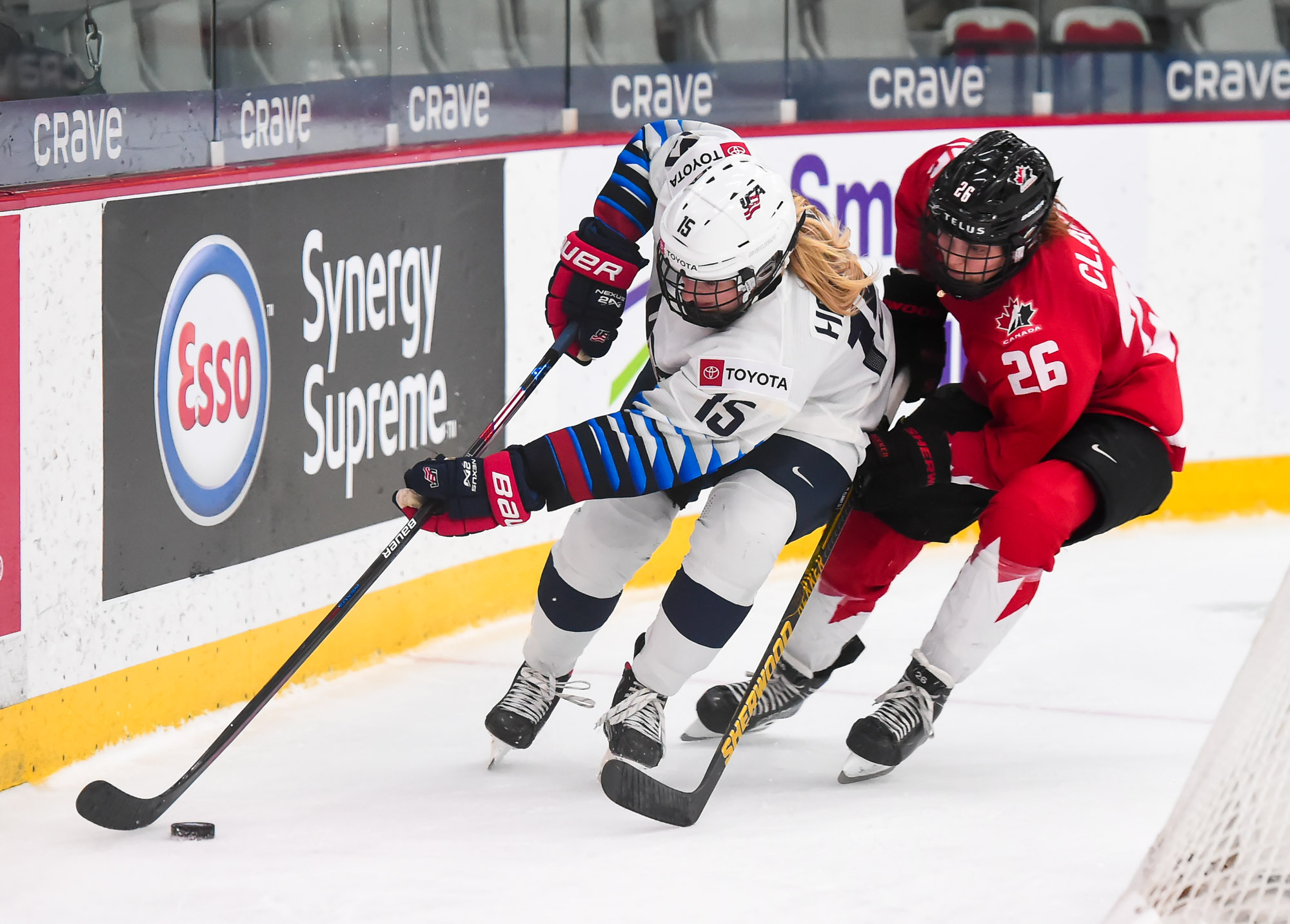 Canada came out in the second desperate and determined and managed to take control of the game until the final minute. The hosts got an early power play thanks to a faceoff violation by the U.S. and converted on the chance when Brianne Jenner got to Sarah Fillier’s shot and banged it in at 4:13.