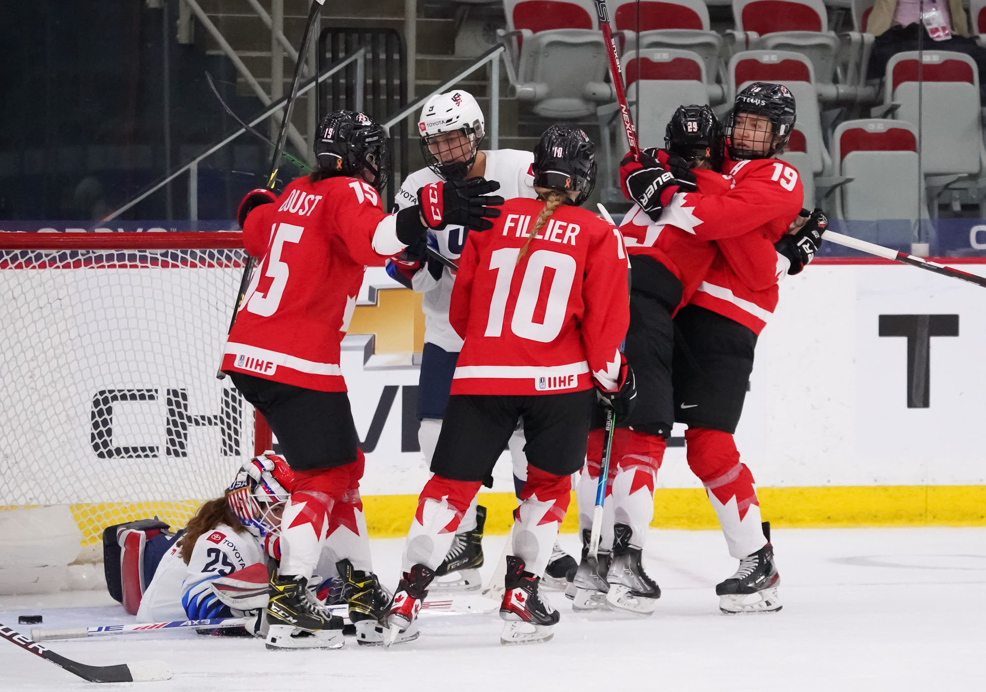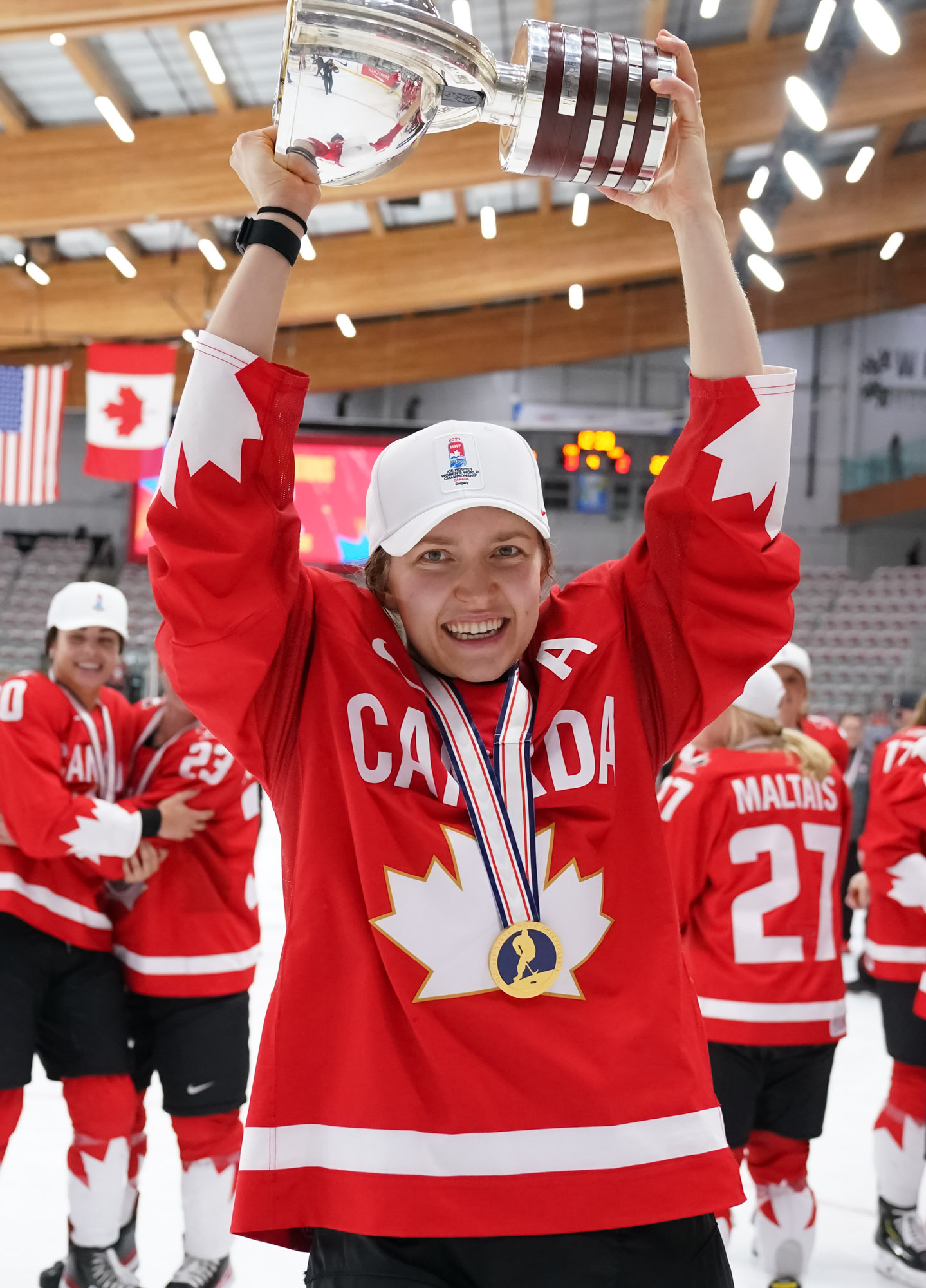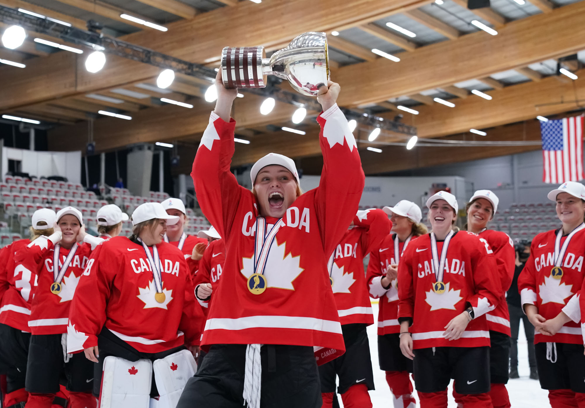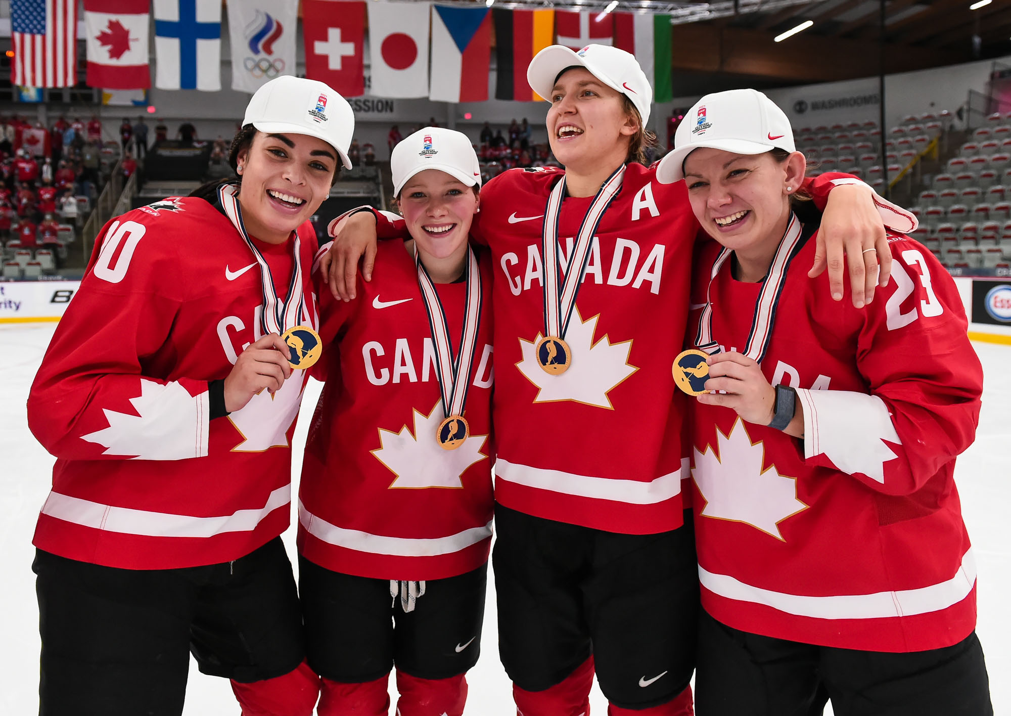 Marie-Philip Poulin scored the golden goal at 7:22 of the first overtime period to give Canada a 3-2 win over the United States. It was Canada's first gold medal at the Women's World Championship since 2012.