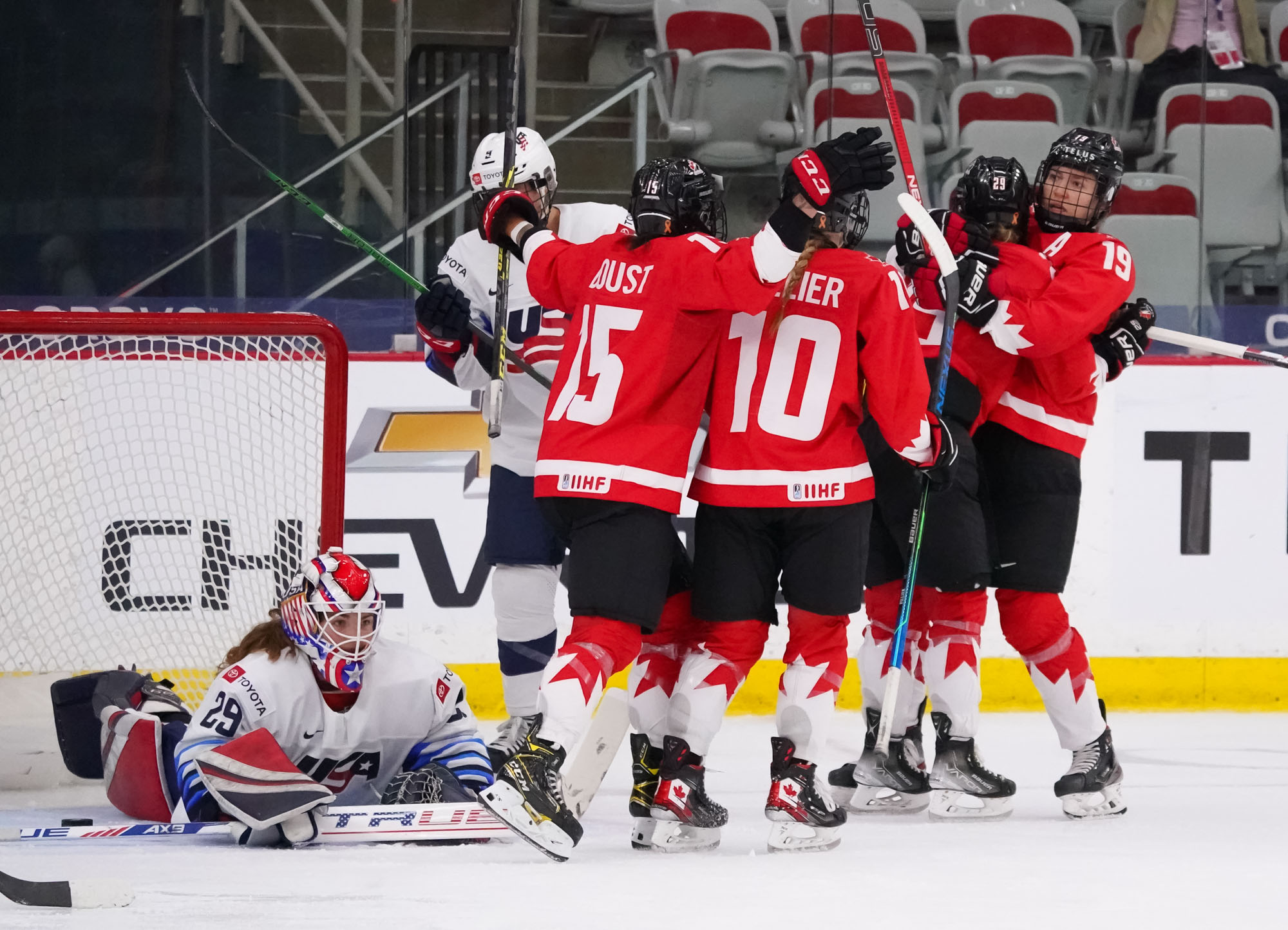 It was a game as thrilling and exciting as any played between the nations in the 31-year history of women's hockey at the IIHF. The Americans turned the table on Canada in the first, scoring the only two goals, but Canada stormed back to tie it in the second. The third was a wild affair that featured four penalties – three to Canada – but there was no fifth goal until the overtime.