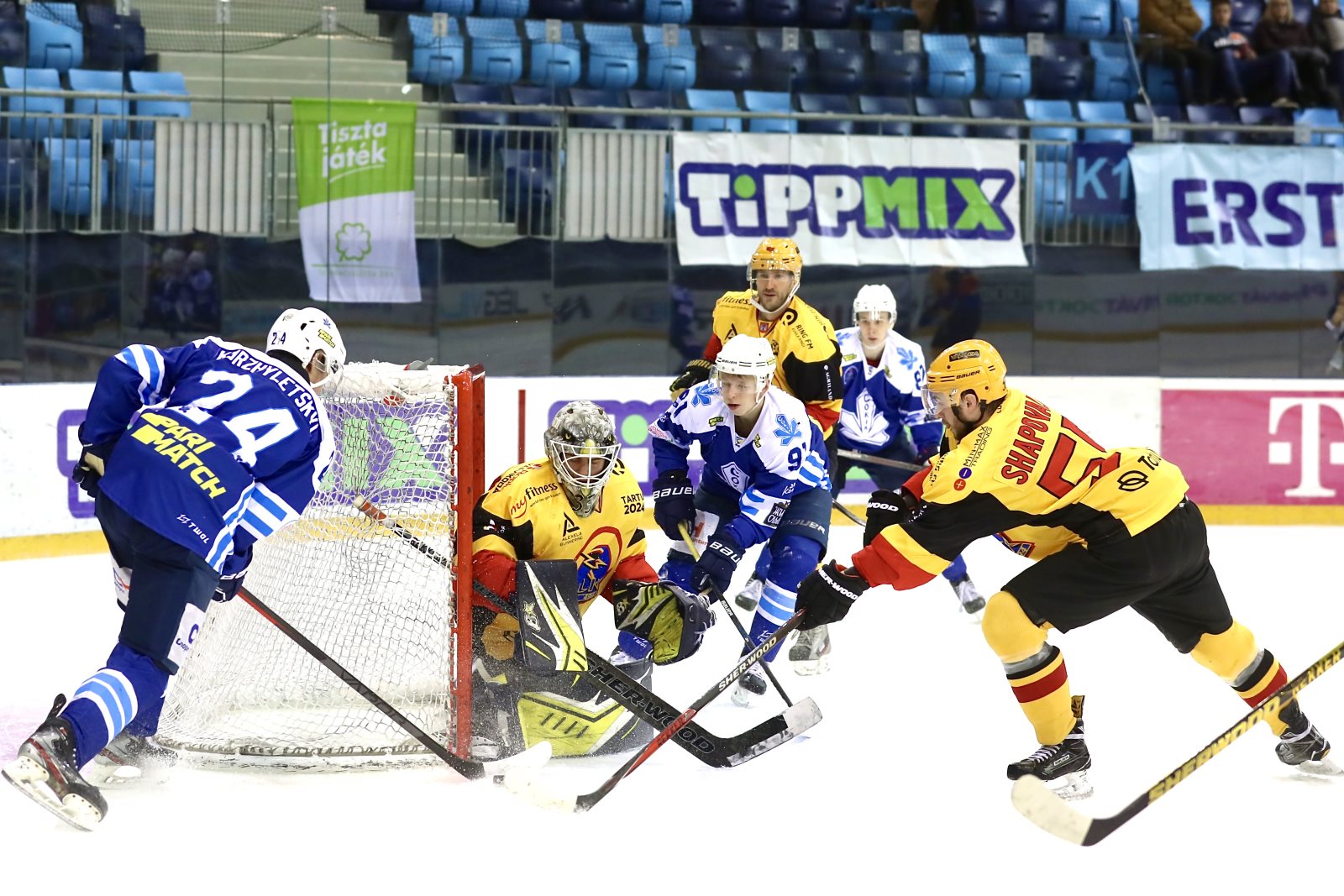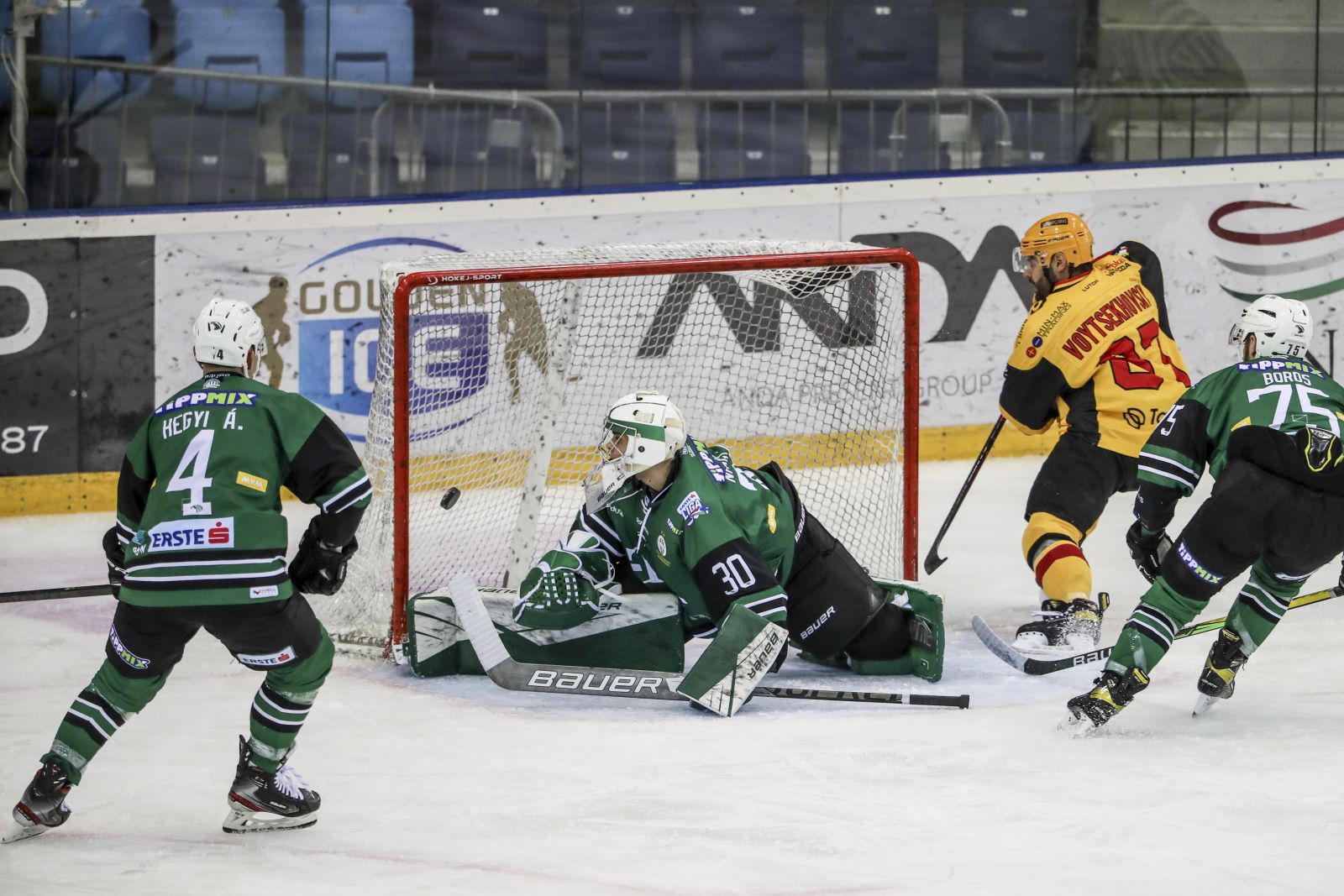 The Hungarians knew a big win was essential and got off to a good start when Gergo Nagy opened the scoring midway through the first period. Cody Fowlie broke down the right and, after his first attempt to get the puck to the slot was blocked, he spotted Nagy joining the rush. The second pass picked out his team-mate, and the Hungarian international made no mistake in front of Andrey Bonch-Bruevich’s net.
