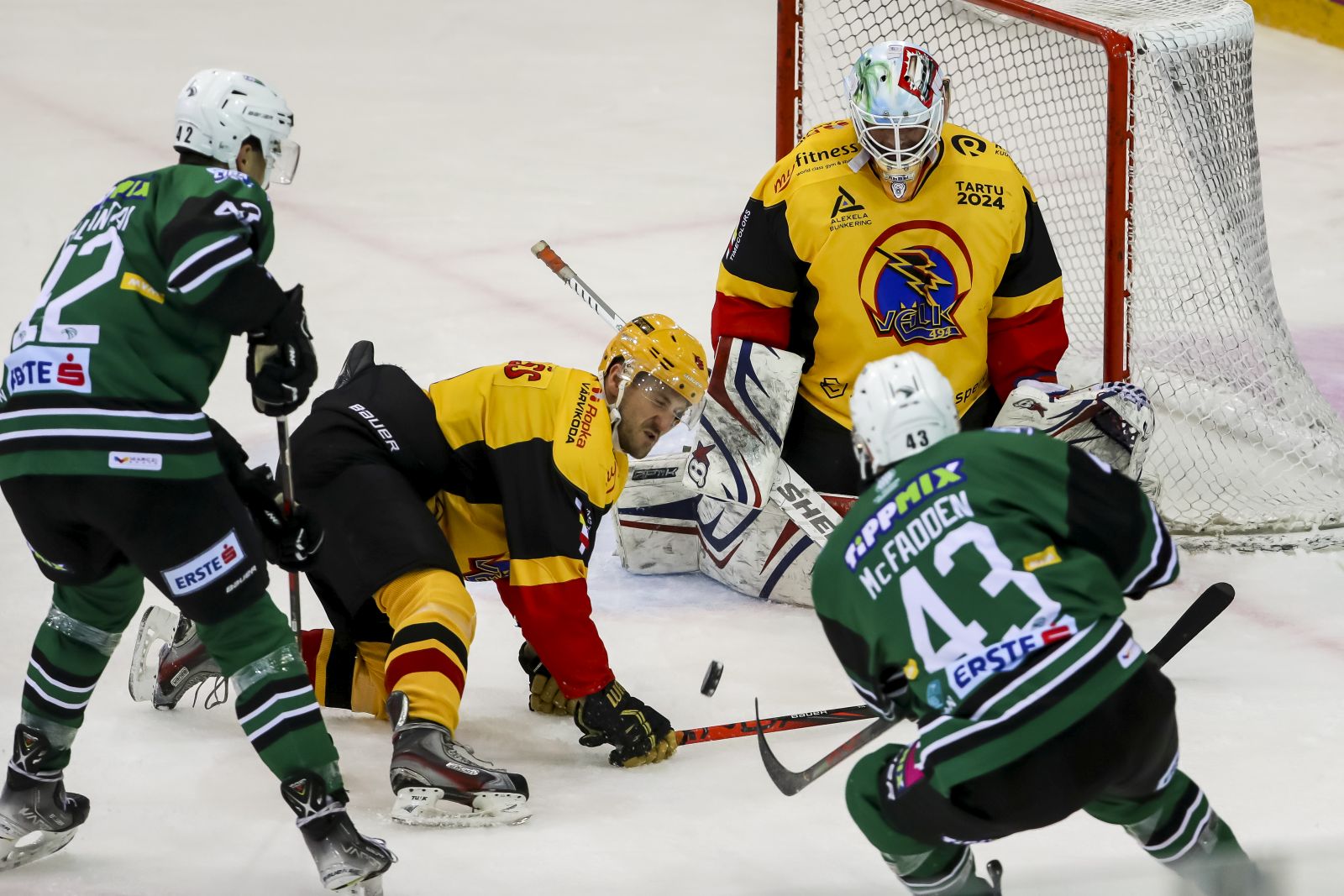 That picture changed dramatically in the closing moments. Adrian Toth took a hooking penalty on 56:33 and Olimp took its chance on the power play. Pujacs and Redlihs combined to set up a Brahmanis one-timer from the left-hand dot. The most experienced players on the team produced the goal that put their team in pole position. Now, in a three-way tie, Olimp would be first; only a Tartu victory over Sokil could deny the Latvians a place in the next round.