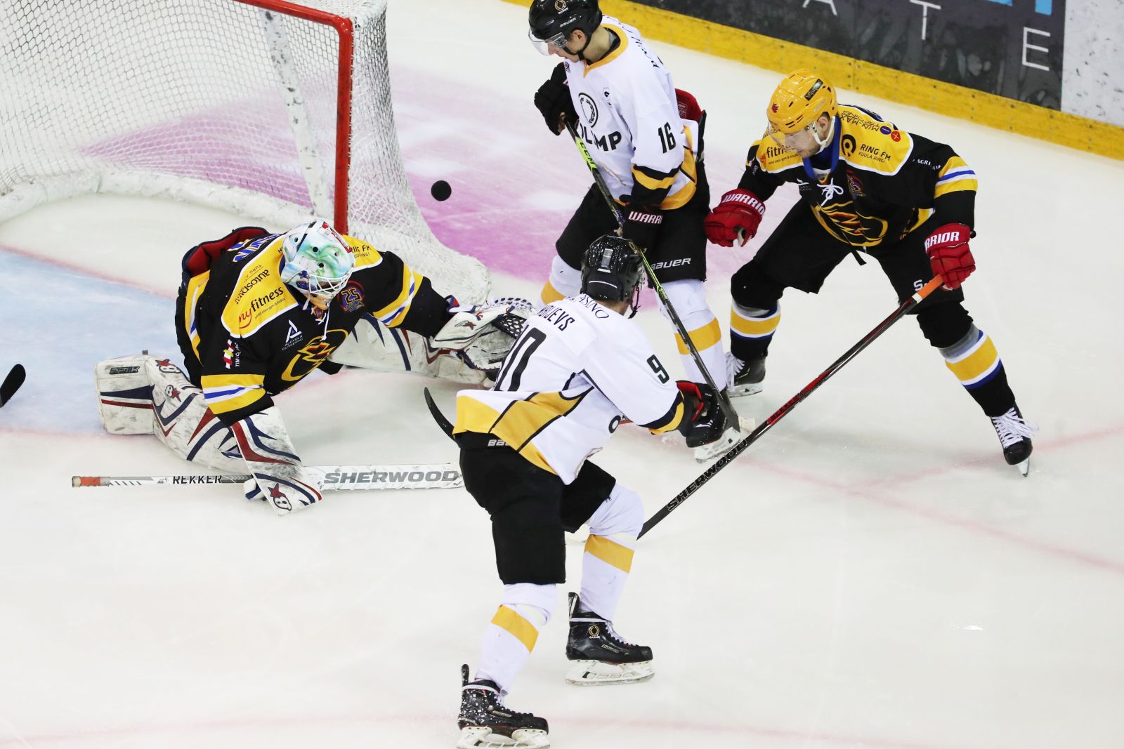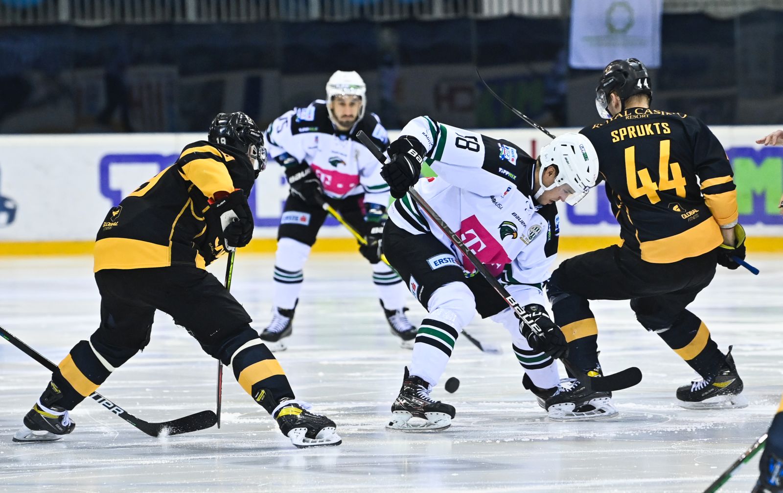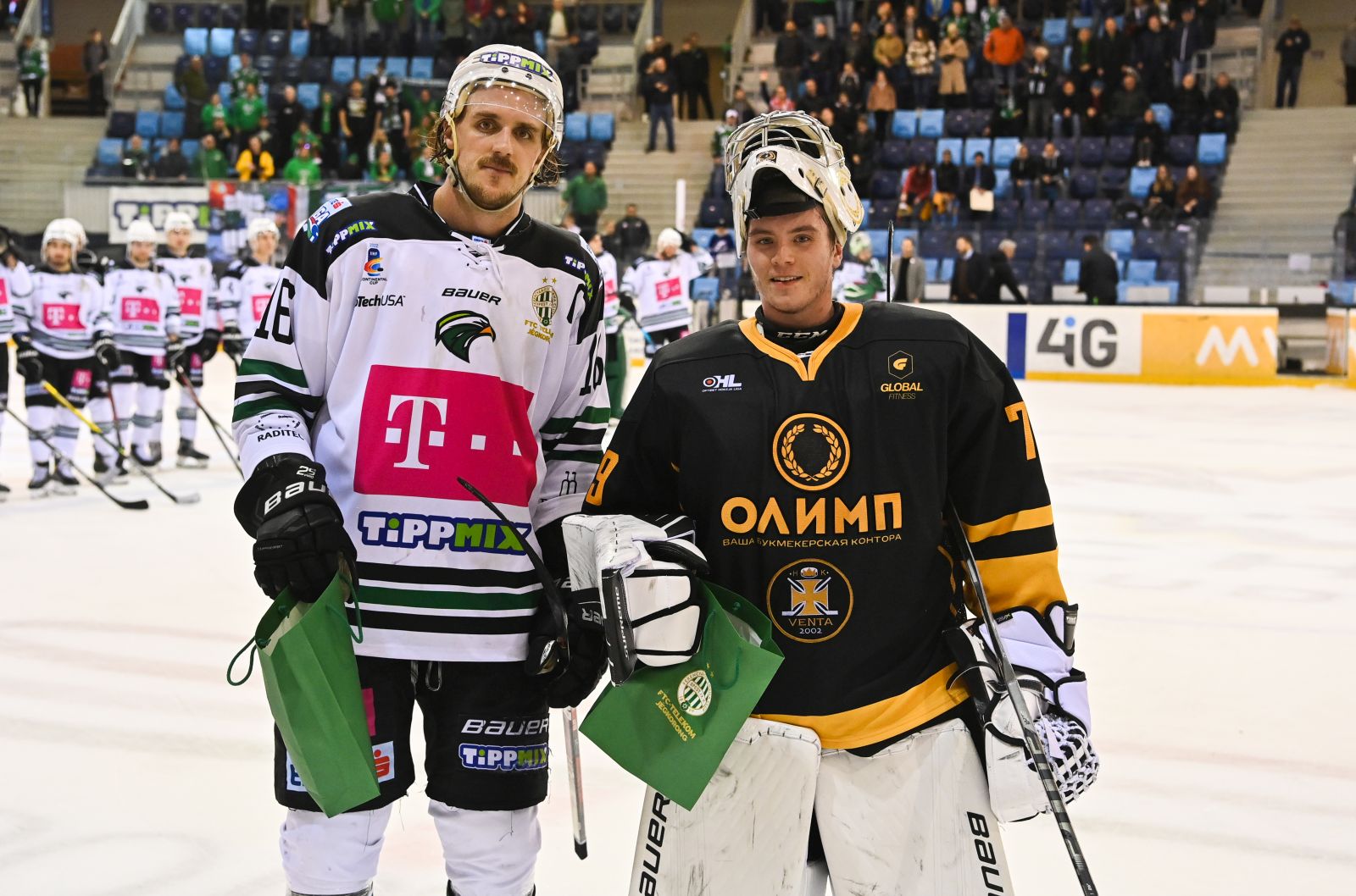 However, a goalless second period left the home team with work to do and it wasn’t until the team from Budapest scored twice in three minutes at the start of the third that Hungarian hopes really came to life. Neither goal was a highlight reel contender, both were forced home amid crowd scenes in front of the Riga net, but Juhani Tamminen and Balazs Somogyi picked up a goal and a helper apiece to push Olimp to the brink of elimination.