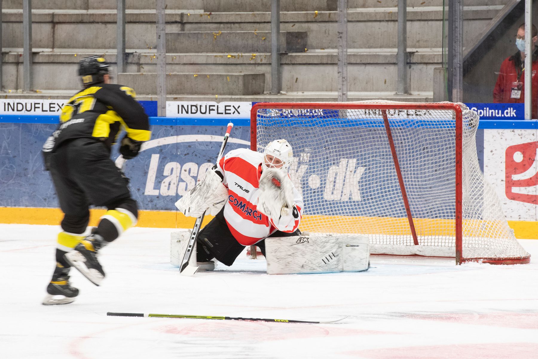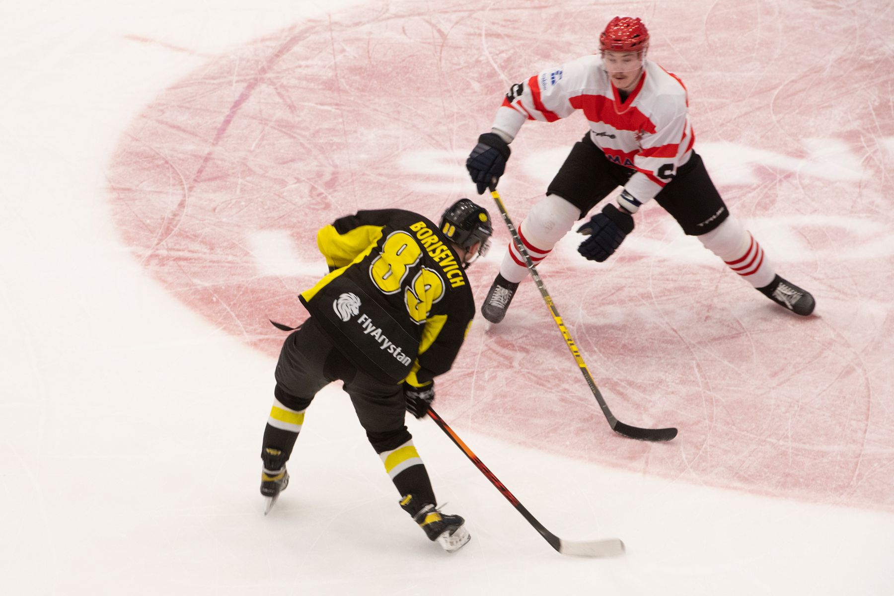 With 5:15 left and the teams playing 4-on-4, Cracovia Krakow even got the lead in a goal that was almost a copy of the first marker. Grigori Mishenko won a puck battle in the own zone and skated along the right side boards. In a 2-on-1 in the offensive zone he passed to Gula on the left who gave his team the lead.