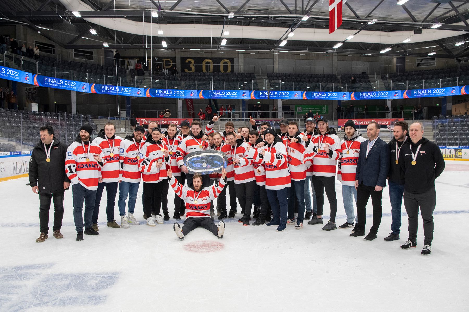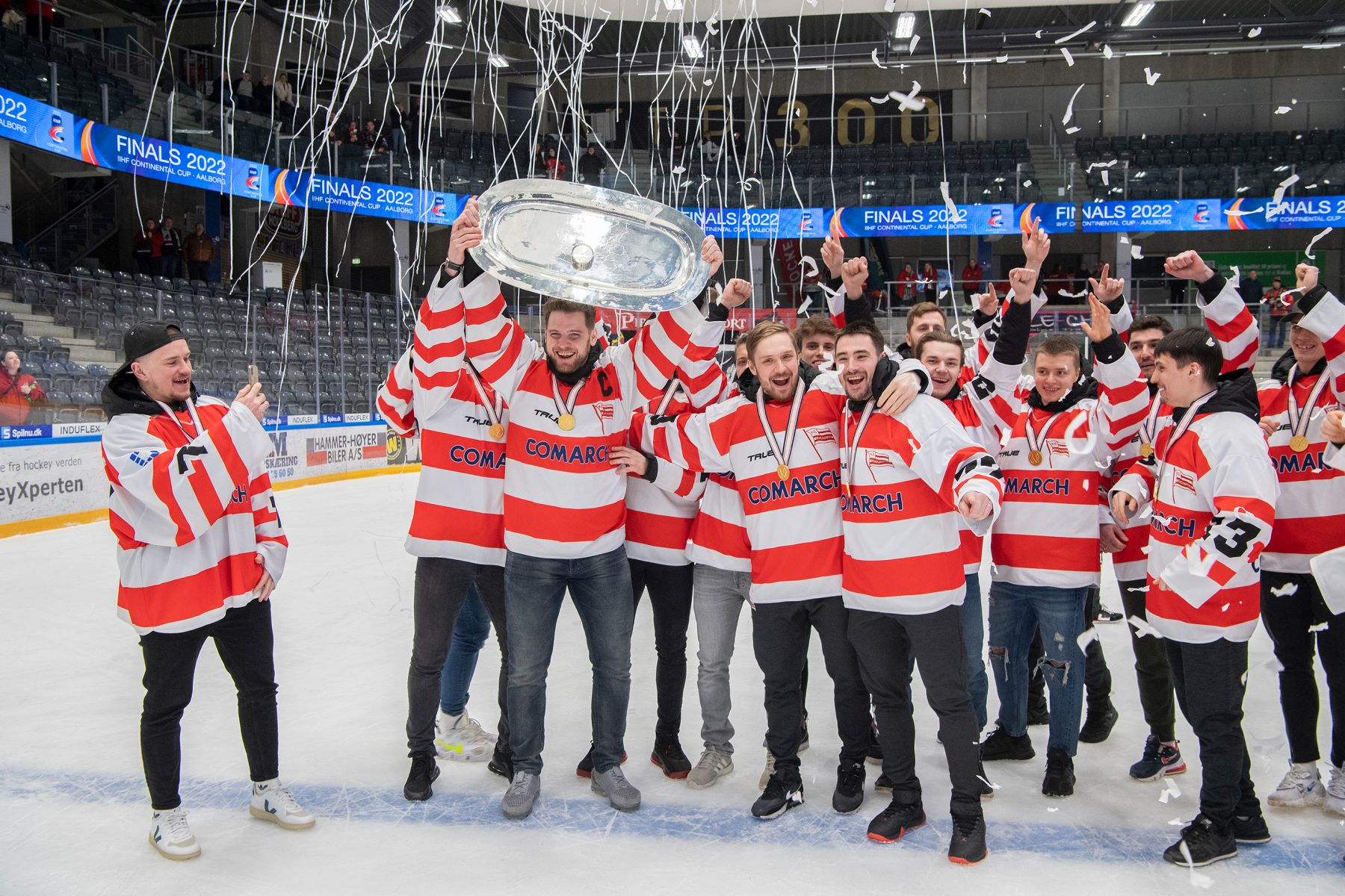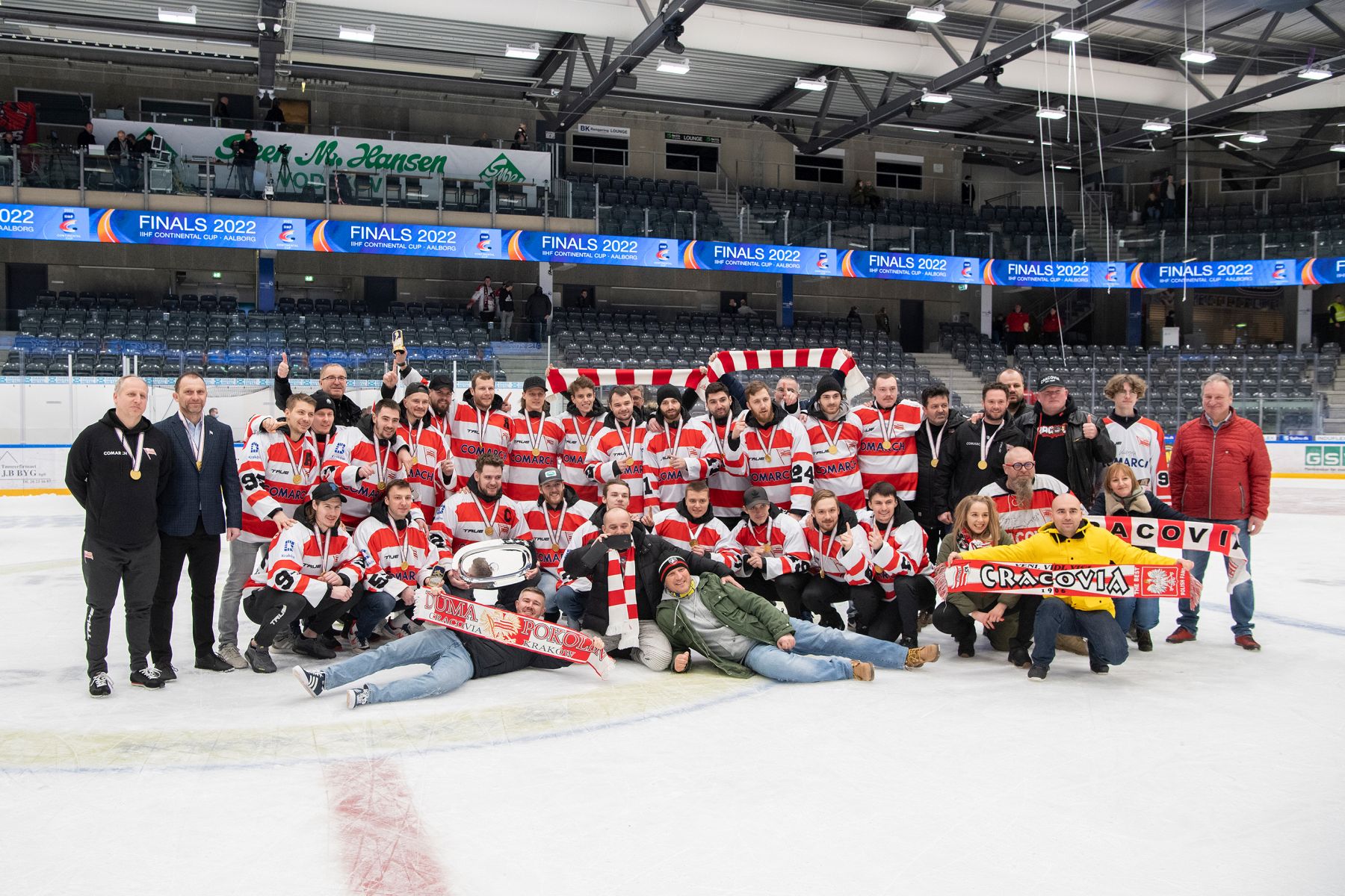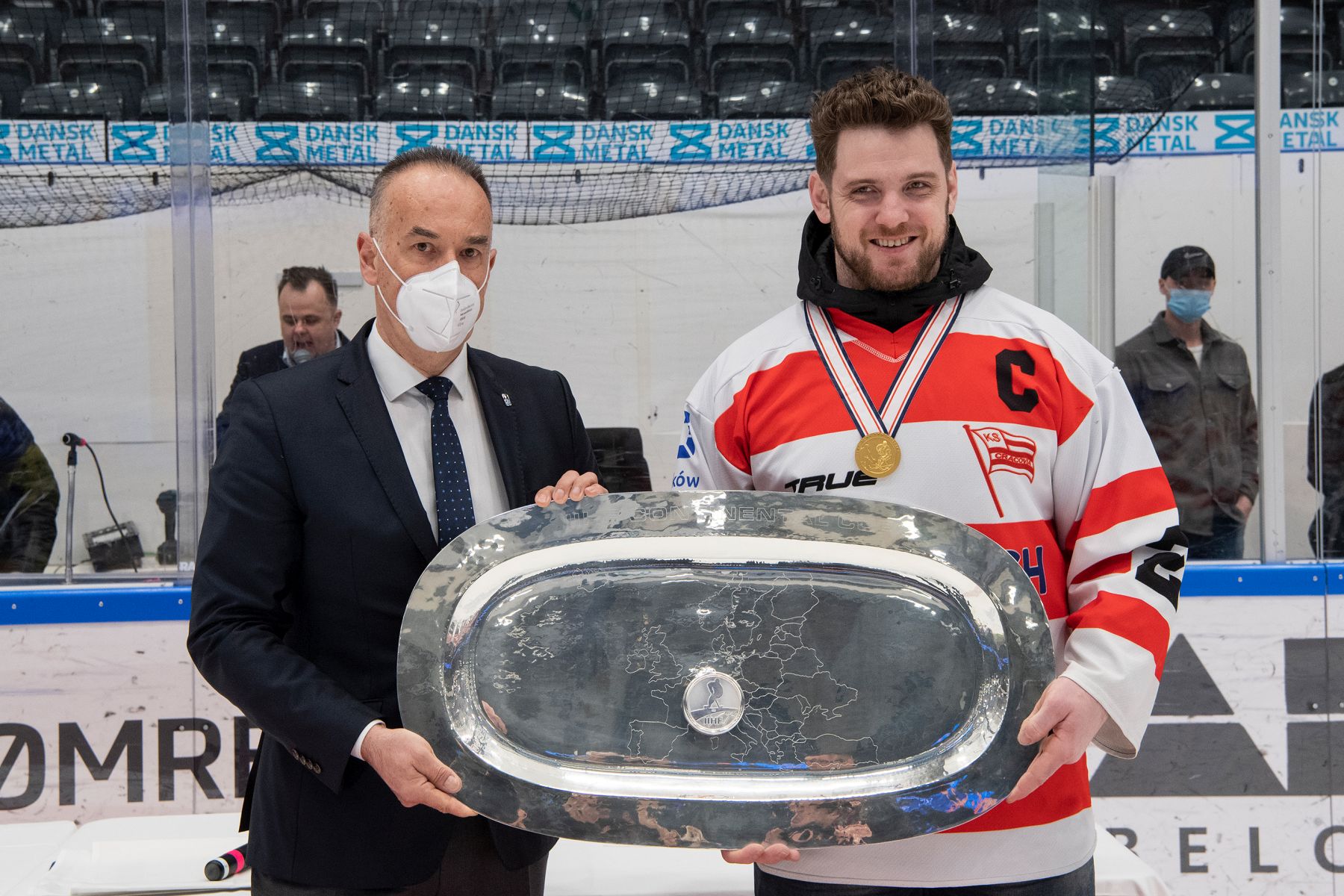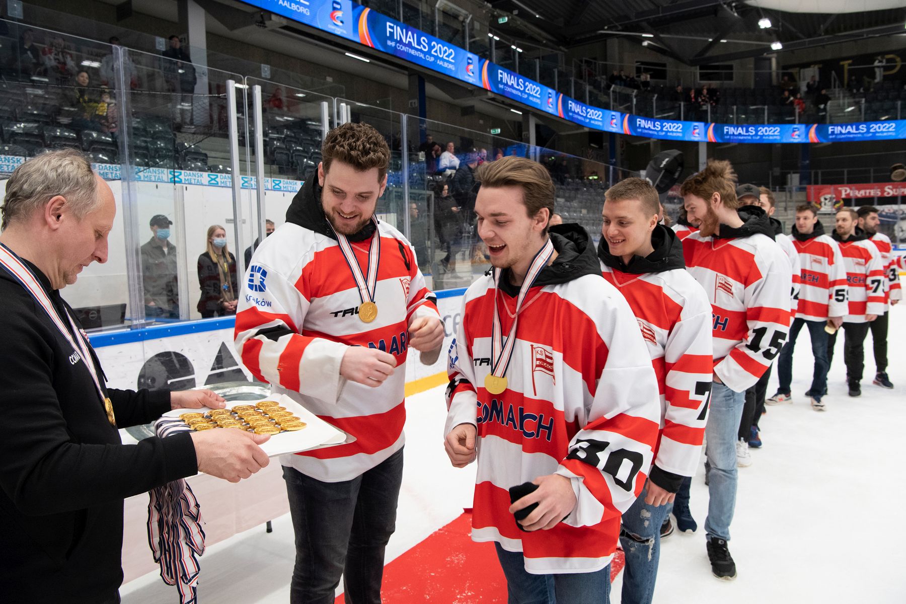 After the game the award ceremony took place with the Cracovia Krakow players coming back to the ice to receive their gold medals and the winners’ plate.