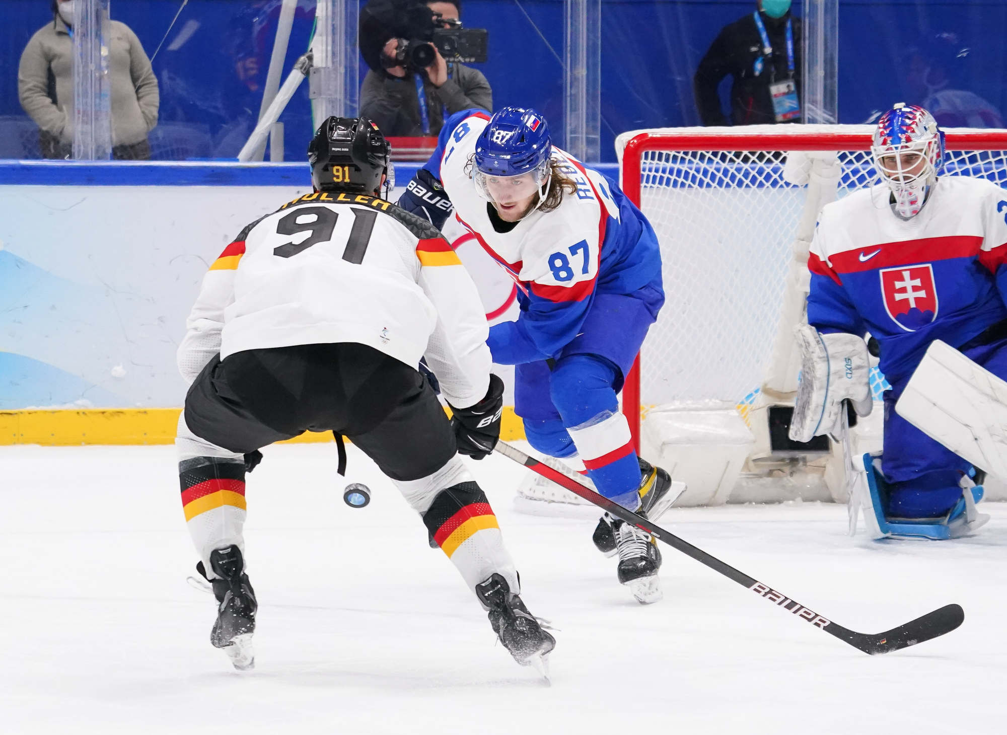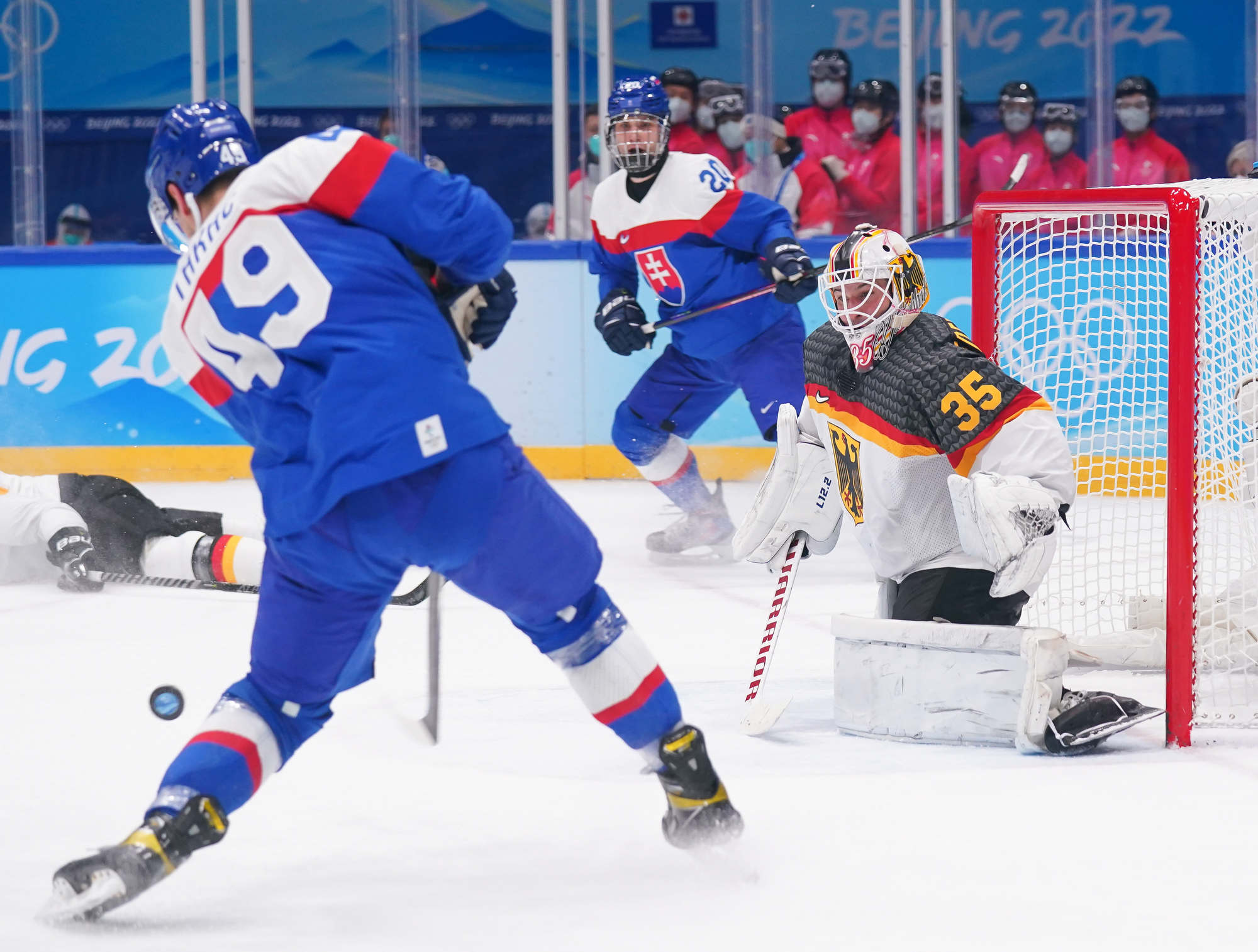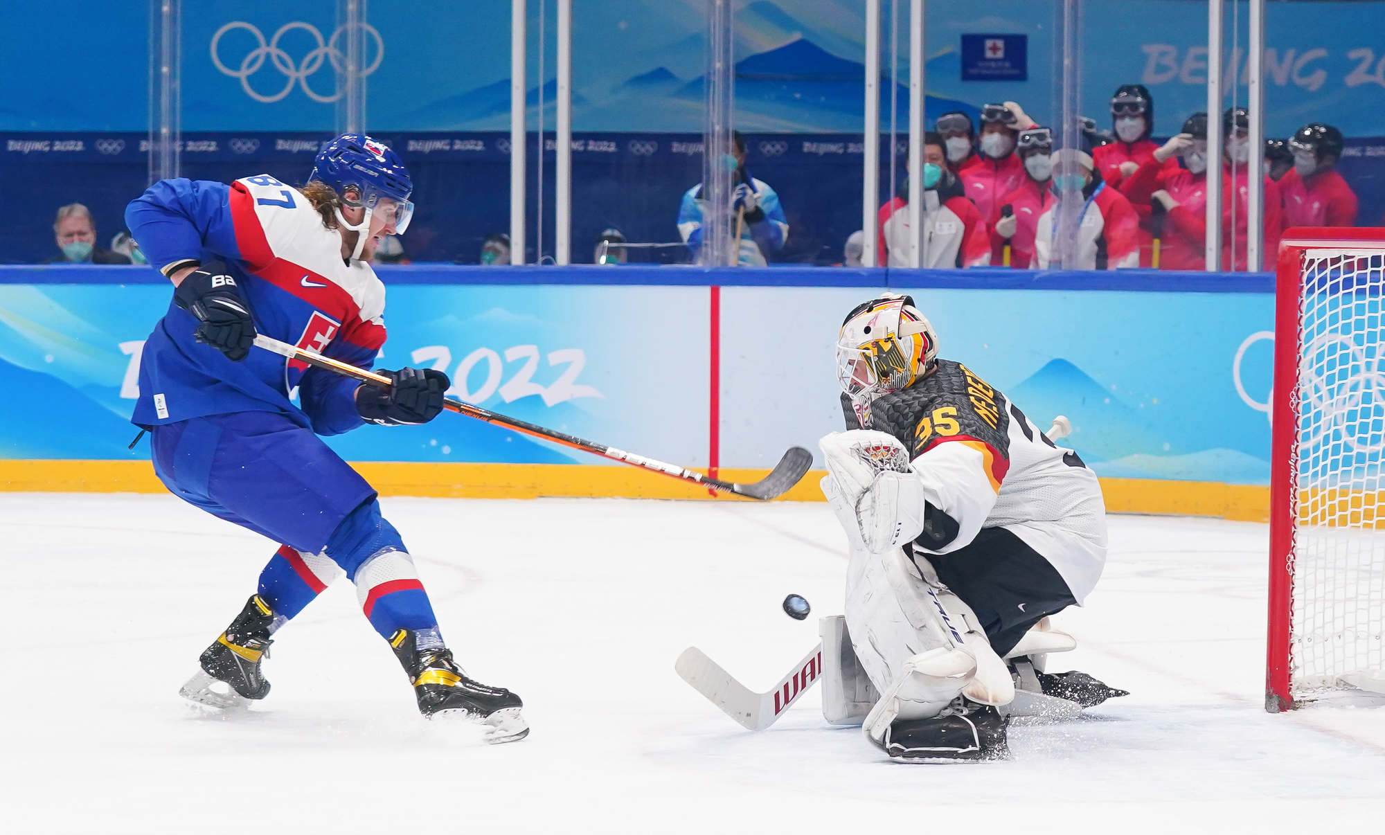 Playing for the third time in these Games, Patrik Rybar made 21 saves, becoming the first Slovak goalie to post a shutout at the Olympics since Jaroslav Halak in 2010 in Vancouver. Rybar’s 0.76 goals-against average and 96.49 save percentage both lead all goalies in the tournament. Playing his third game for Germany, Mathias Niederberger stopped 29 of 32.