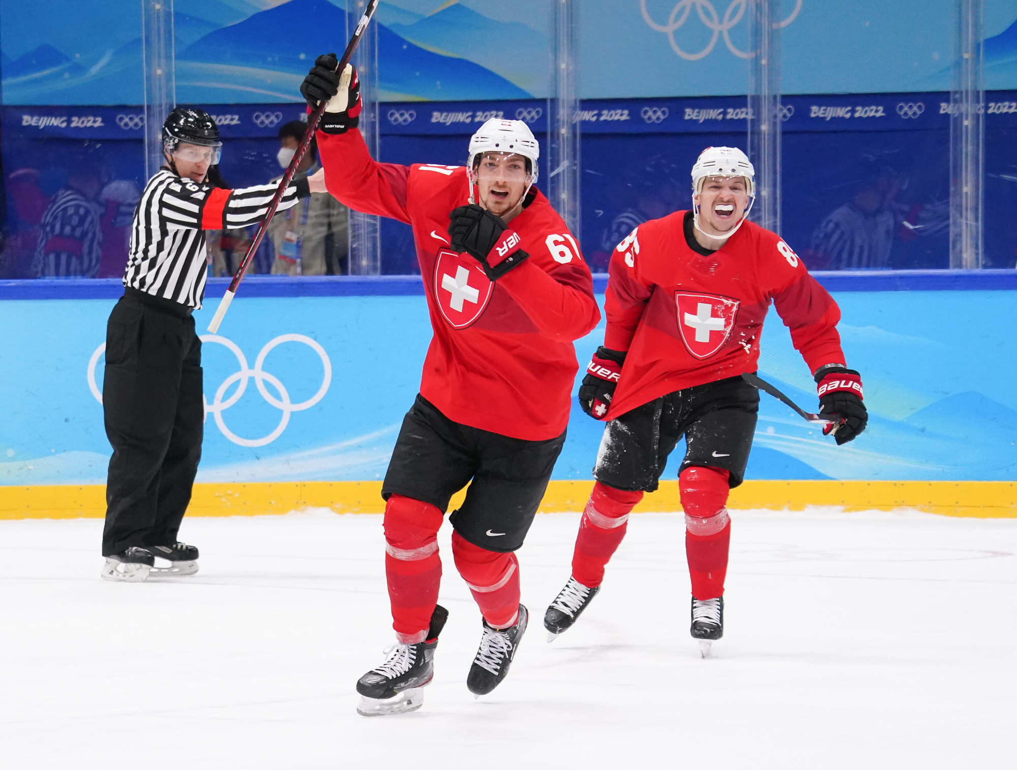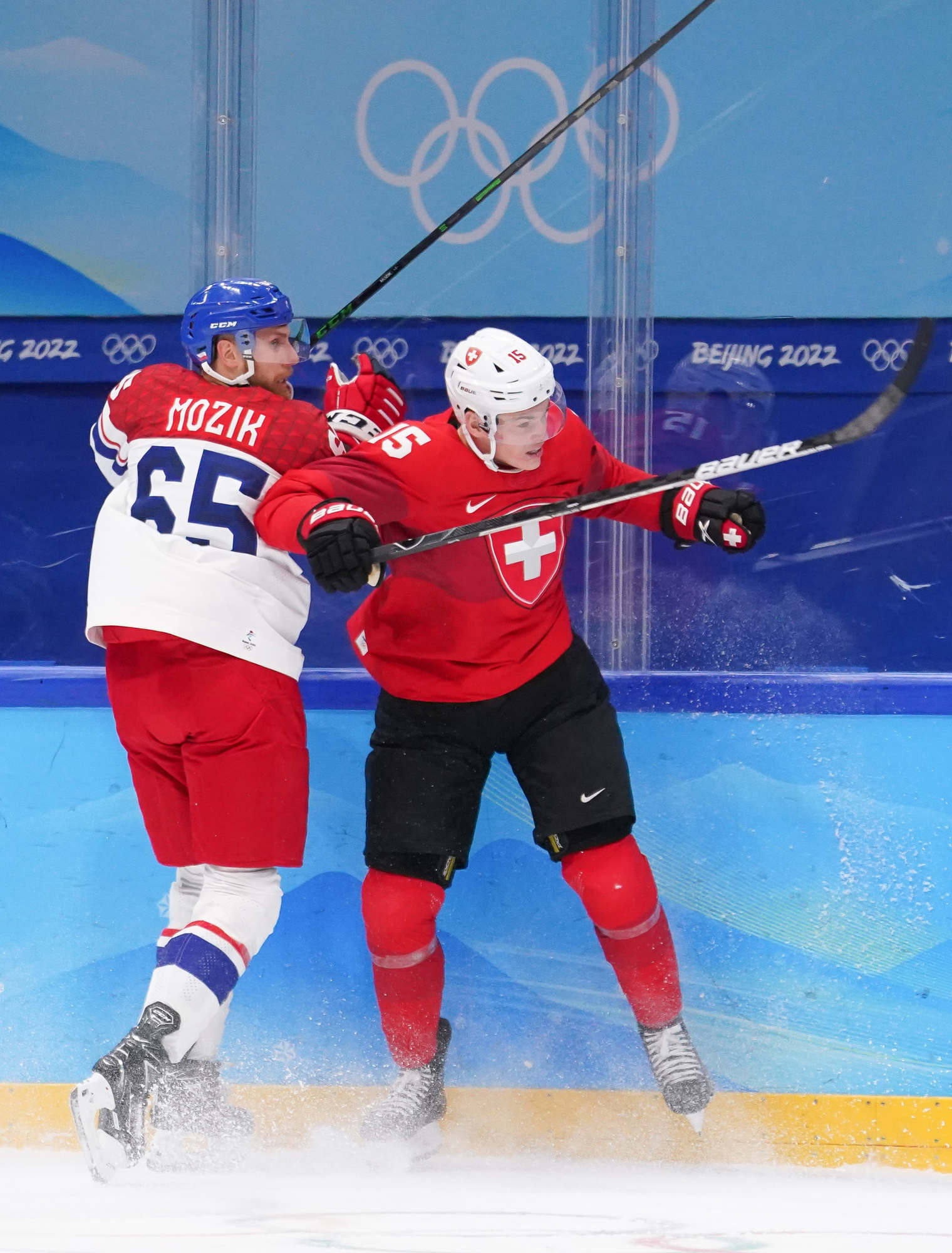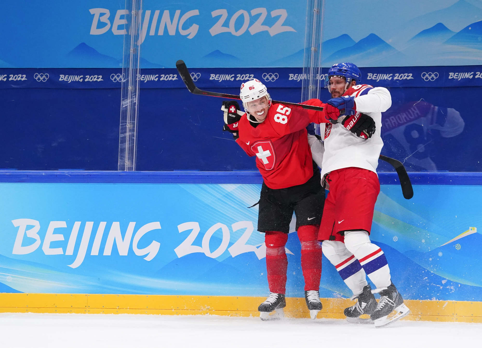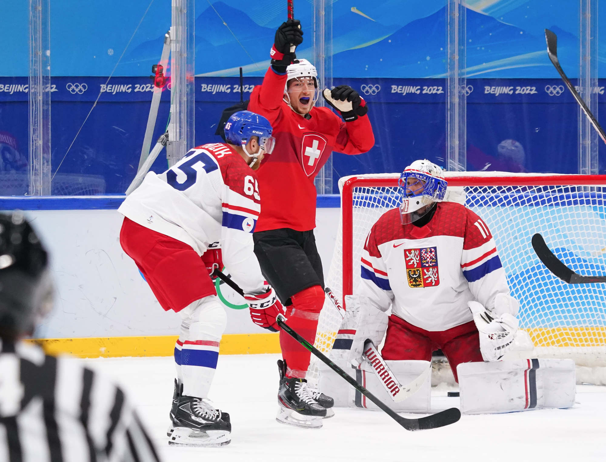 Team Switzerland picked the perfect time for its first win in Beijing. Tuesday’s 4-2 verdict over Czechia puts the Swiss into a quarter final against Finland and sent the Czechs home. Veteran Andres Ambuhl, playing in his fifth Games, got his first Olympic goal to tie the scores in the first period and after that, his team never looked back, grabbing swift revenge for a shoot-out loss against this opposition in Group B play. That was the only point Switzerland achieved in the group stage, suffering losses against Denmark and ROC, but the qualification round offered a reprieve that was eagerly accepted.