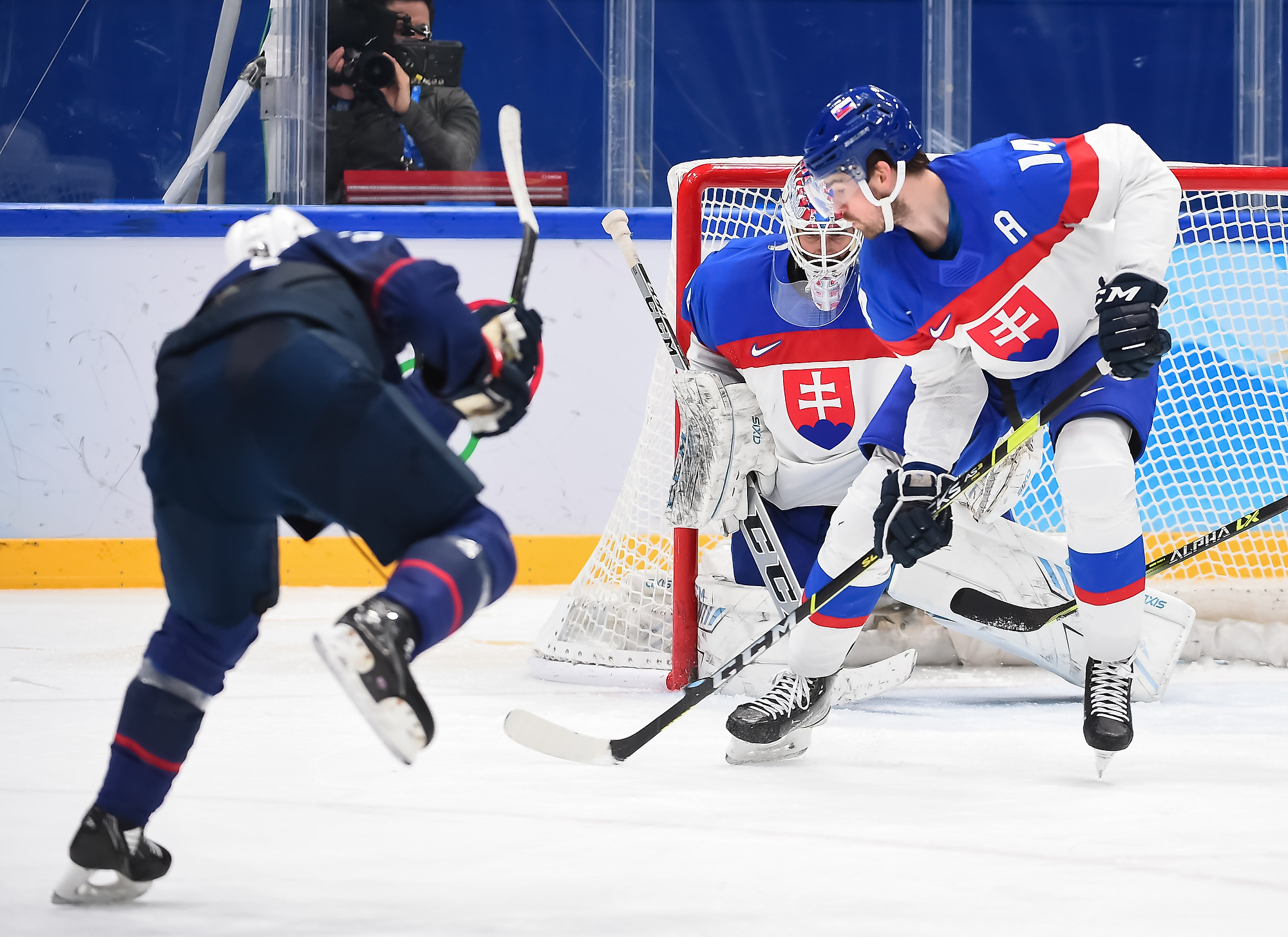 Less than three minutes later, Slovakia had its best chance of the period when Libor Hudacek got in behind the U.S. defence and took a pass, but was pressured from behind and was checked without getting a shot away.