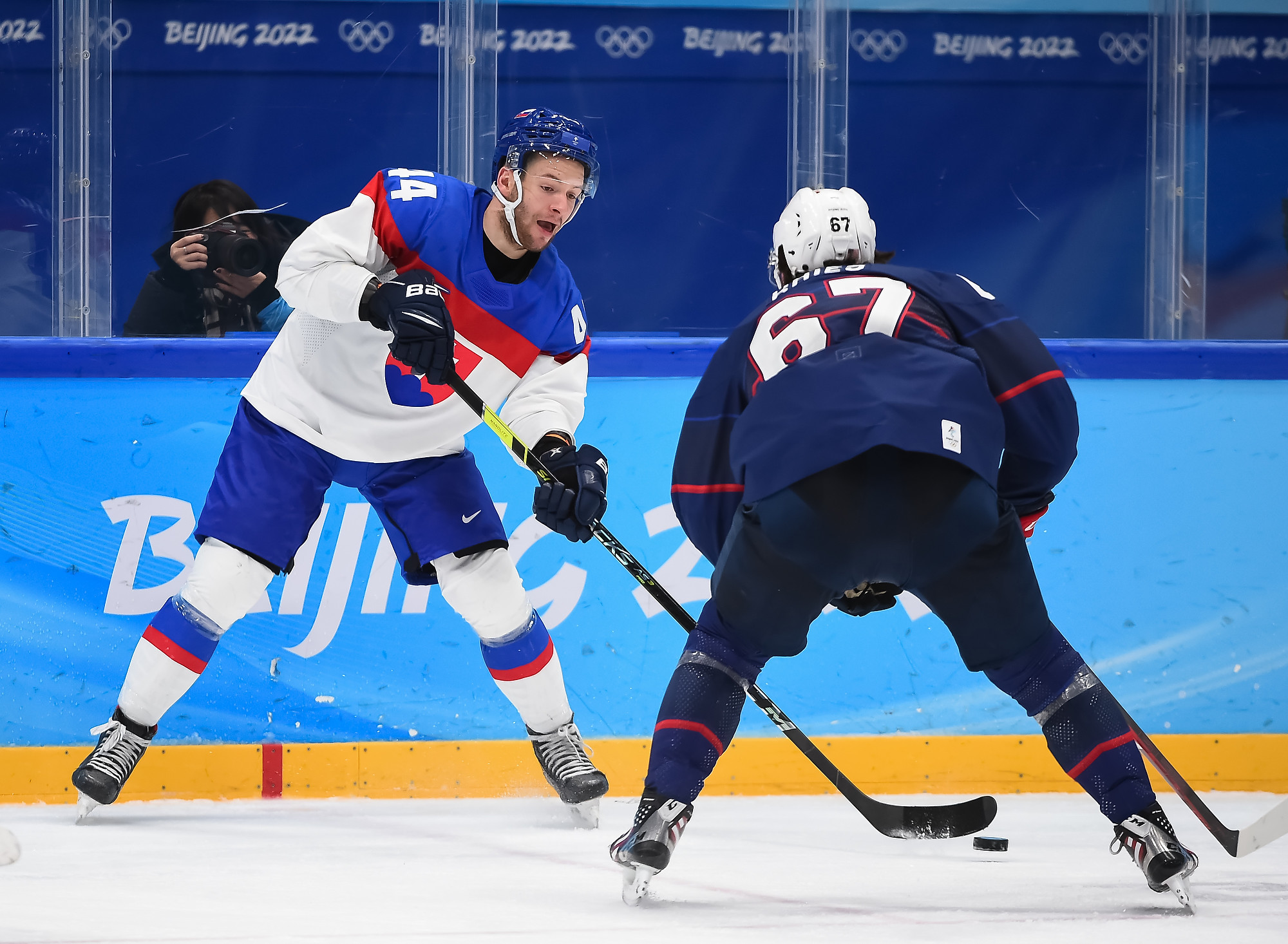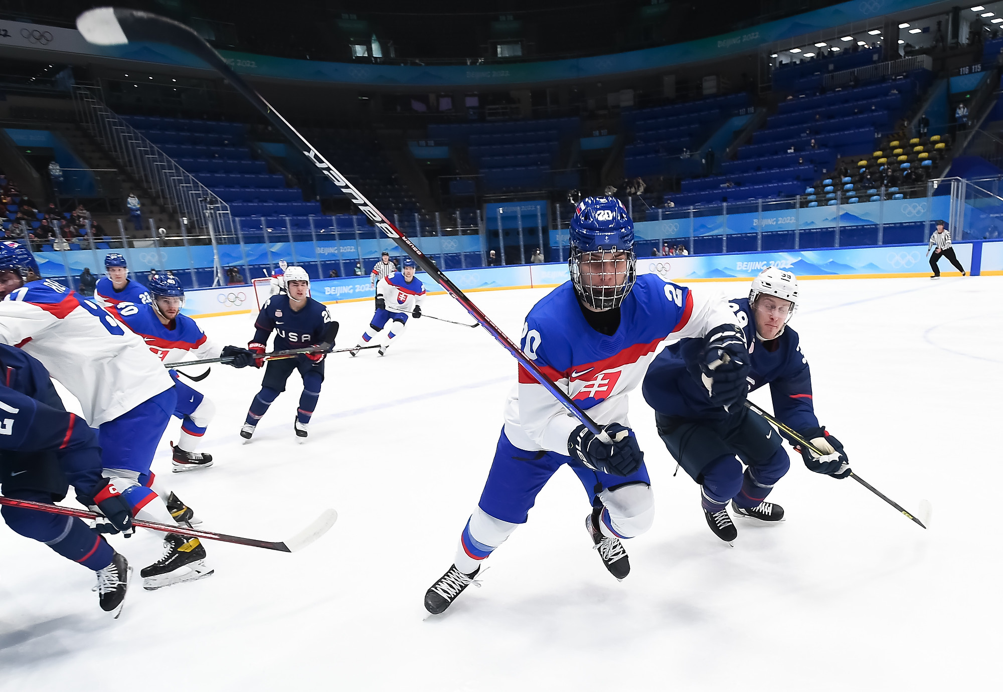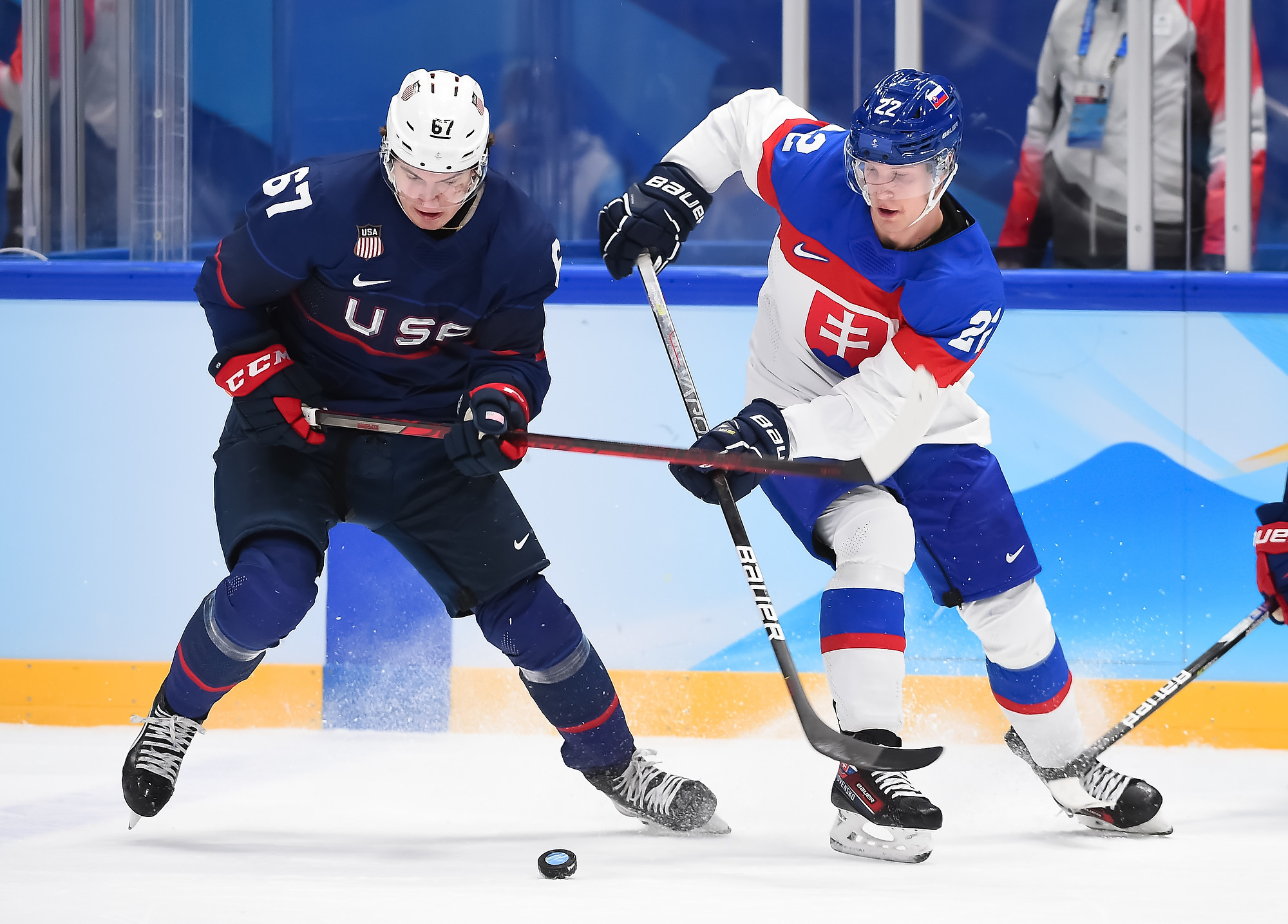 It was a battle of two skating teams with lots of young talent on display, the USA was led by 19-year-old Seattle Kraken prospect Matty Beniers and a host of NCAA players against Slovakia’s 17-year-old wonderkids Juraj Slafkovsky and Simon Nemec.