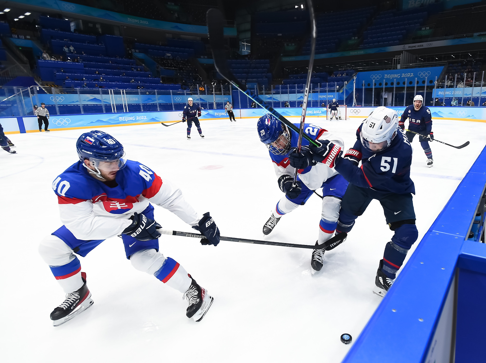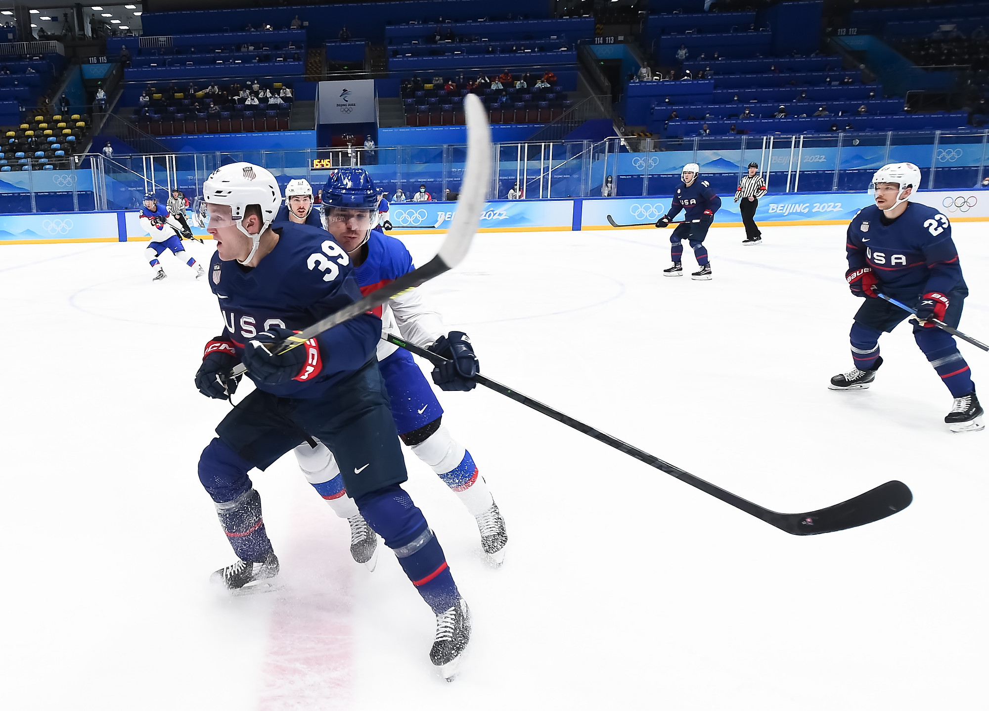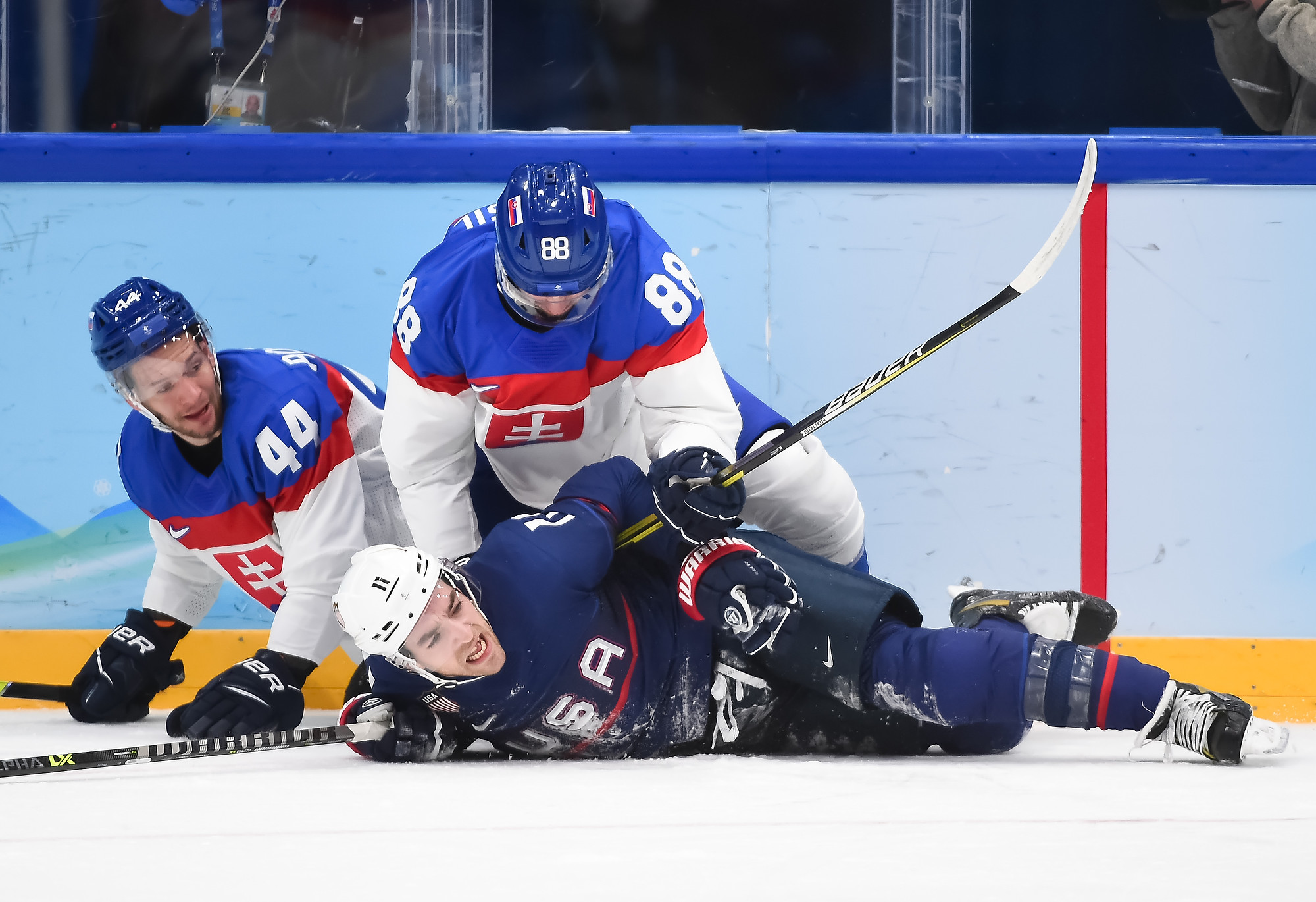 It was a battle of two skating teams with lots of young talent on display, the USA was led by 19-year-old Seattle Kraken prospect Matty Beniers and a host of NCAA players against Slovakia’s 17-year-old wonderkids Juraj Slafkovsky and Simon Nemec.