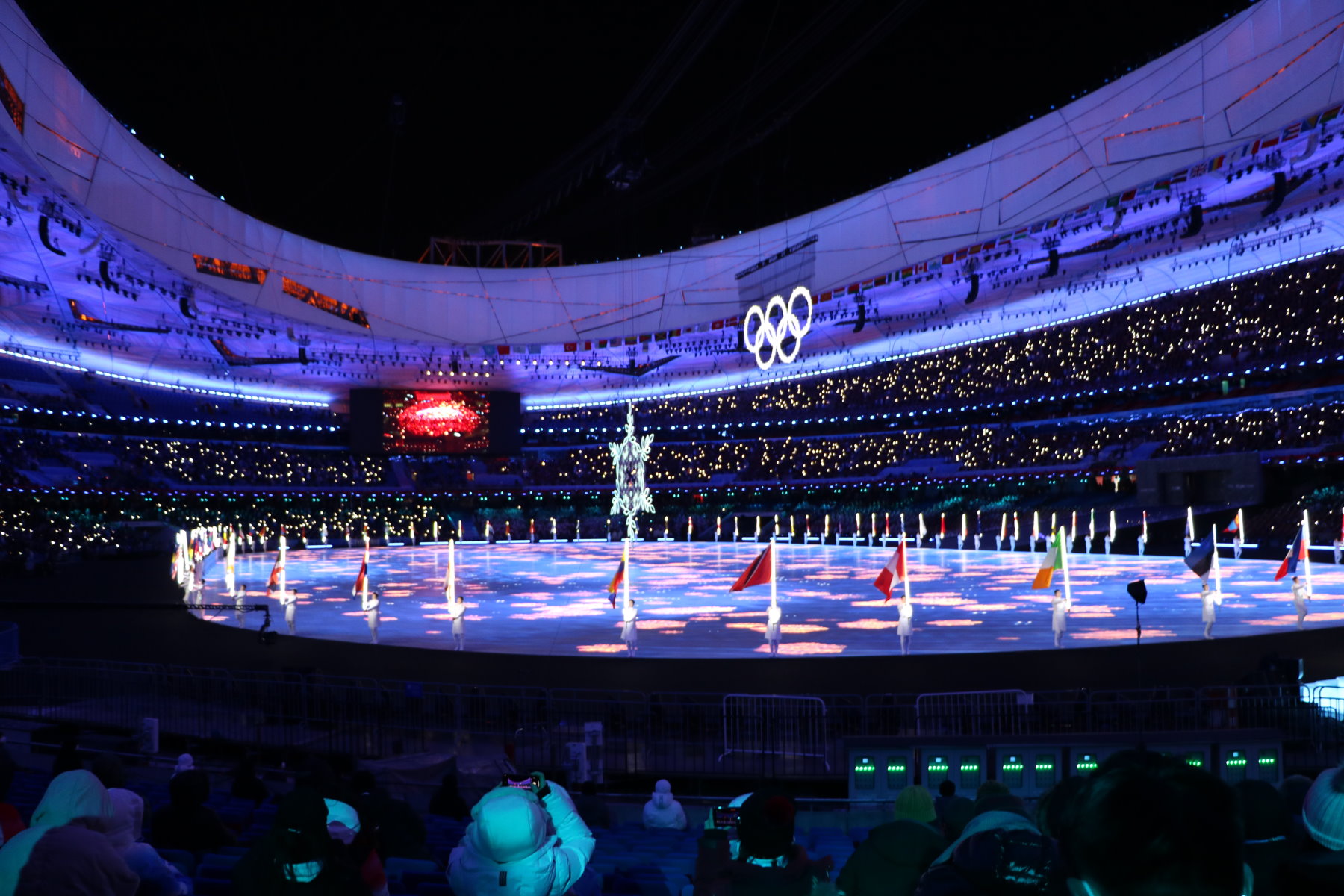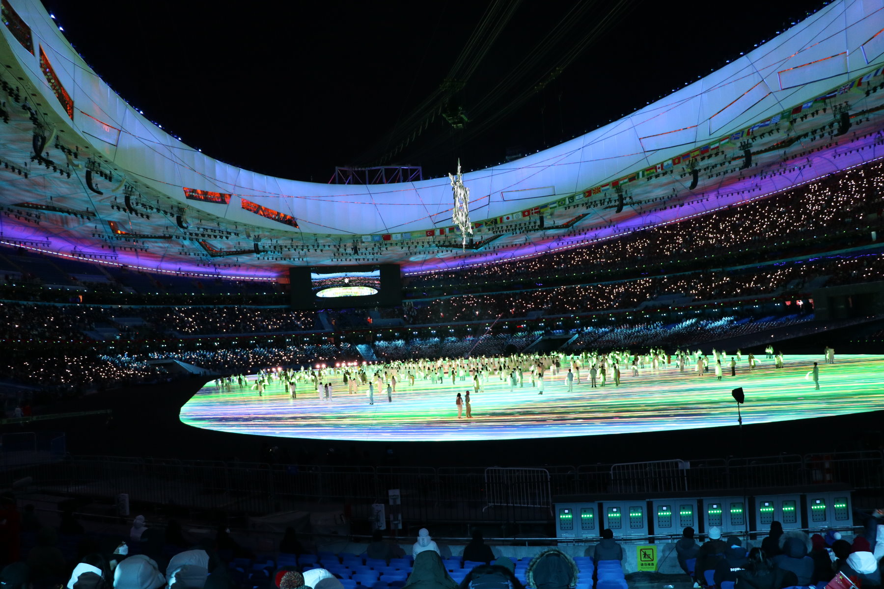 The many volunteers were the always helpful women and men whose smiles could be felt through the protective masks and who helped make the ice hockey tournaments all the other events at the Olympics happen. Many of them joined the ceremony spreading youthful joy from their sectors of the stadium.