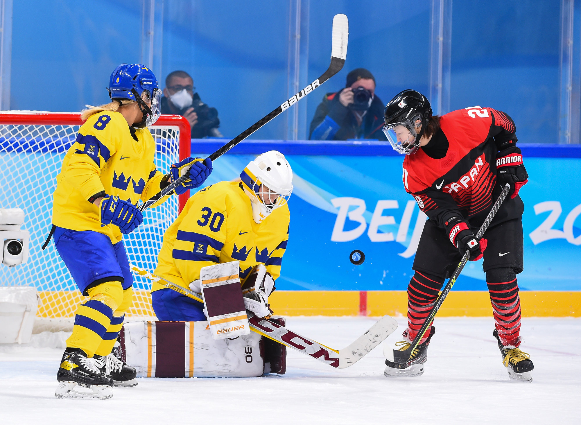 Sweden threatened for the next equalizer on the power play when Hikaru Yamashita was penalized for shooting the puck out of play, and they turned up the heat when Fujimoto lost her goal stick in a scramble but the Japanese goalie made a big blocker save off a point shot from Nylen-Persson.