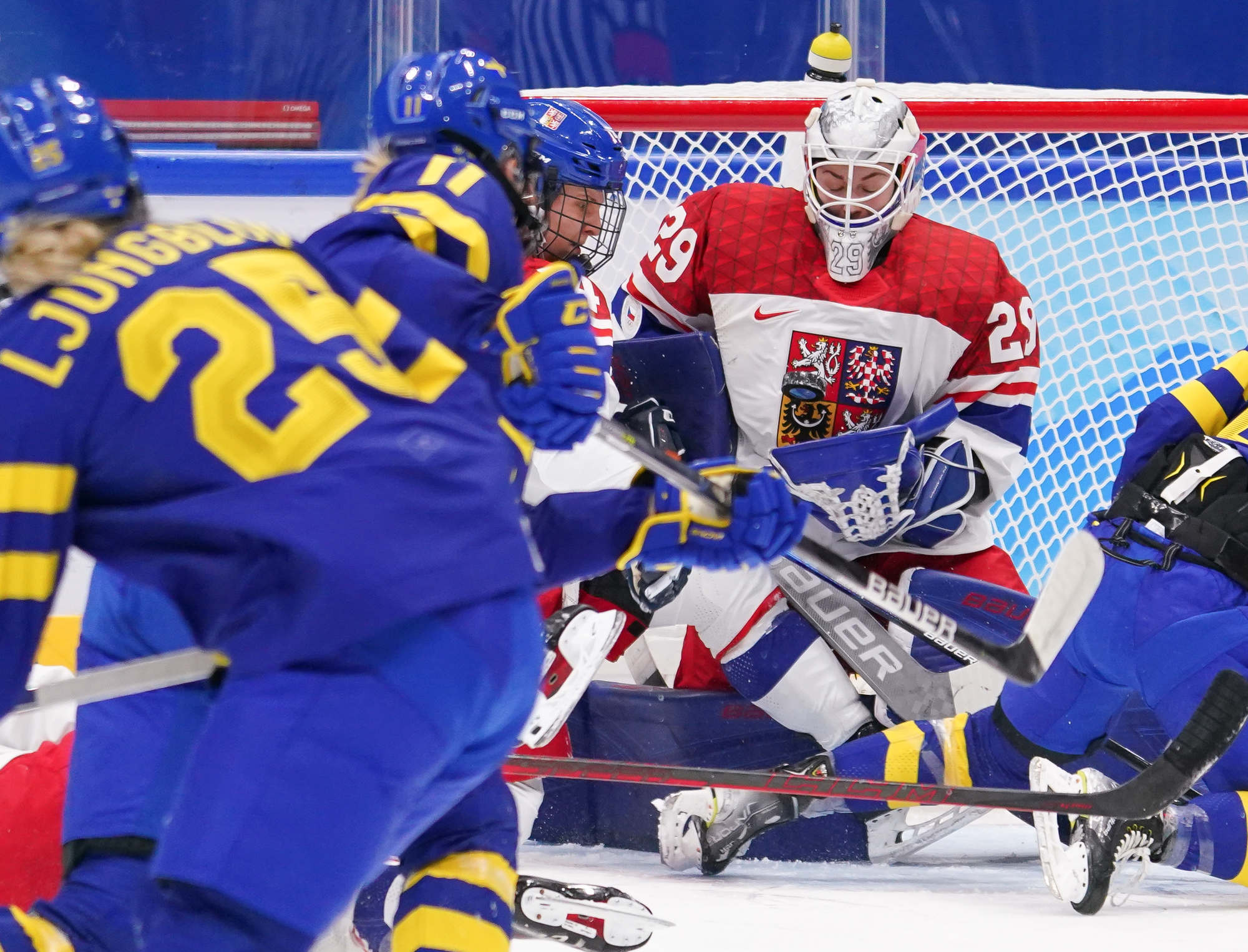 Within four minutes, the shot count read 6-0, and Soderberg was scrambling to make a stick save from Vendula Pribylova after padding away Daniela Pejsova’s wrister. A Czech power play pushed the shot count to 12-0, with the width of a post protecting Soderberg’s net after another Pribylova attempt deflected off Anna Kjellbin’s skate before bobbling to safety.