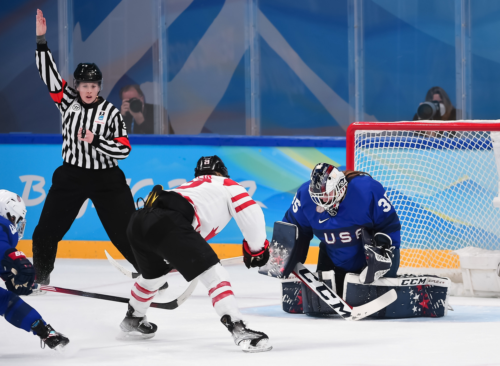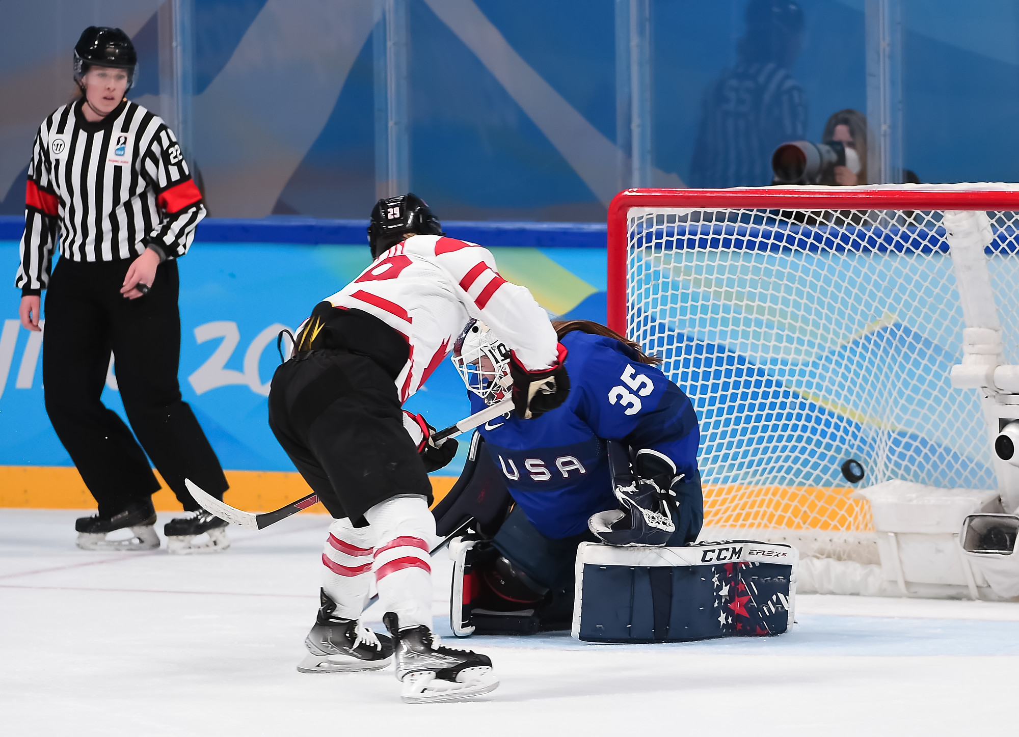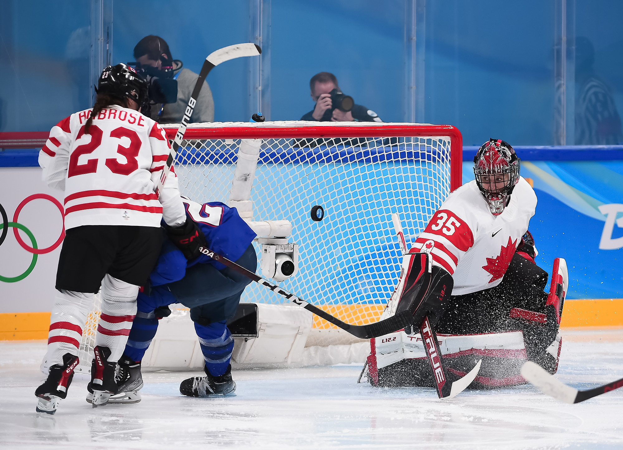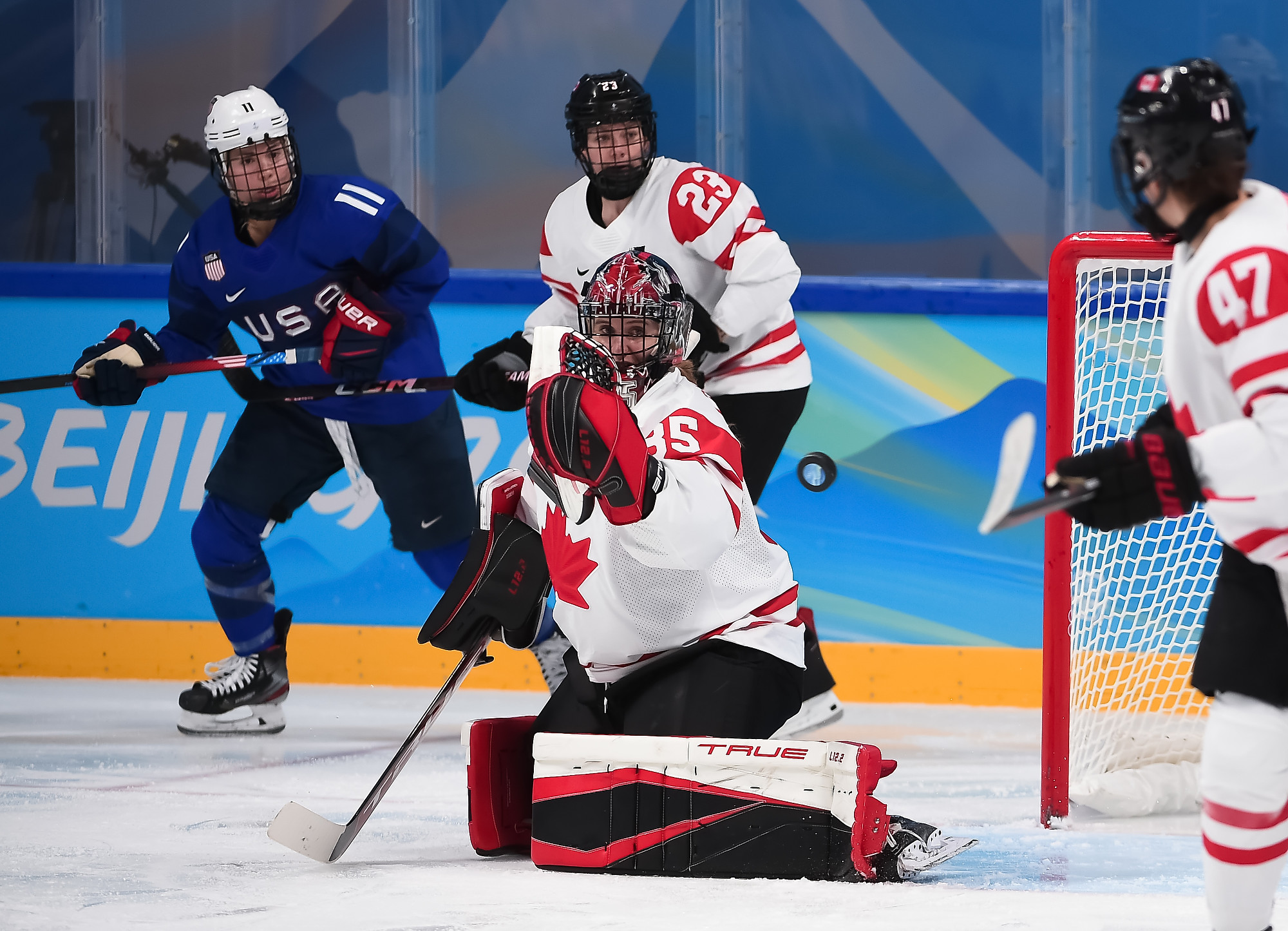 In Tuesday's battle between the North American superpowers at the Wukesong Sports Centre, Canada was outplayed for stretches in both the first and third periods. But the 2021 World Champions stayed the course, got world-class goaltending from starter Ann-Renee Desbiens (51 saves) and capitalized on their chances to stay perfect with a fourth straight win. The Canadians got three goals in 7:25 in the second period.