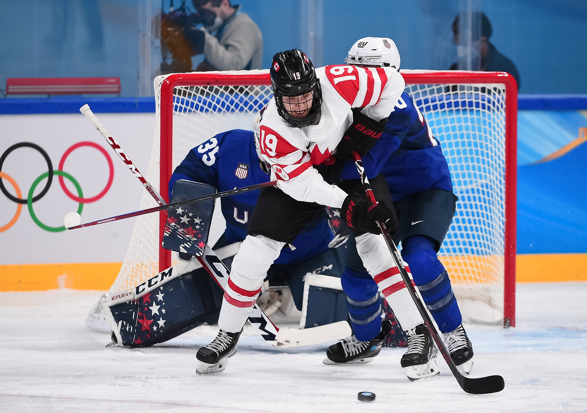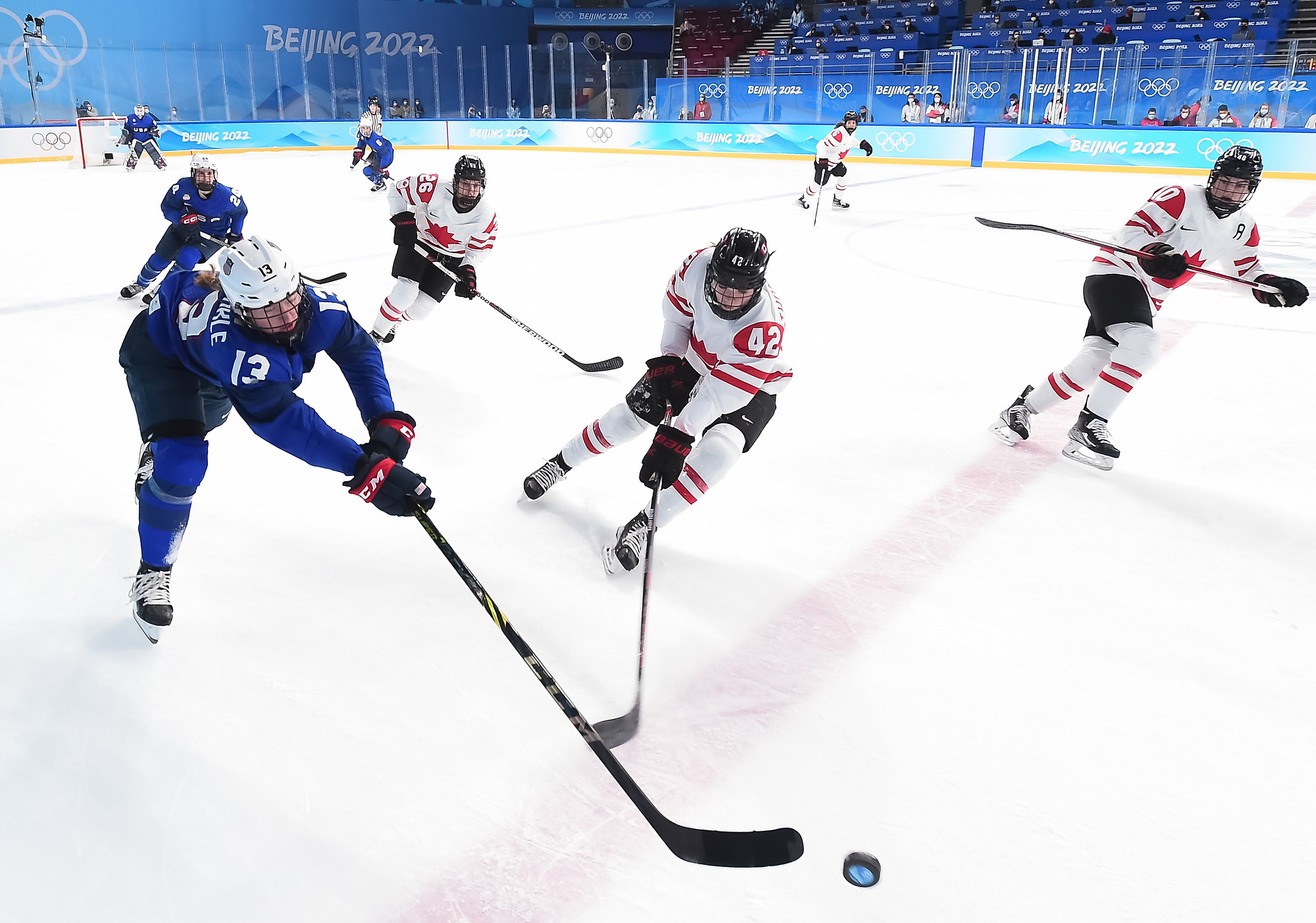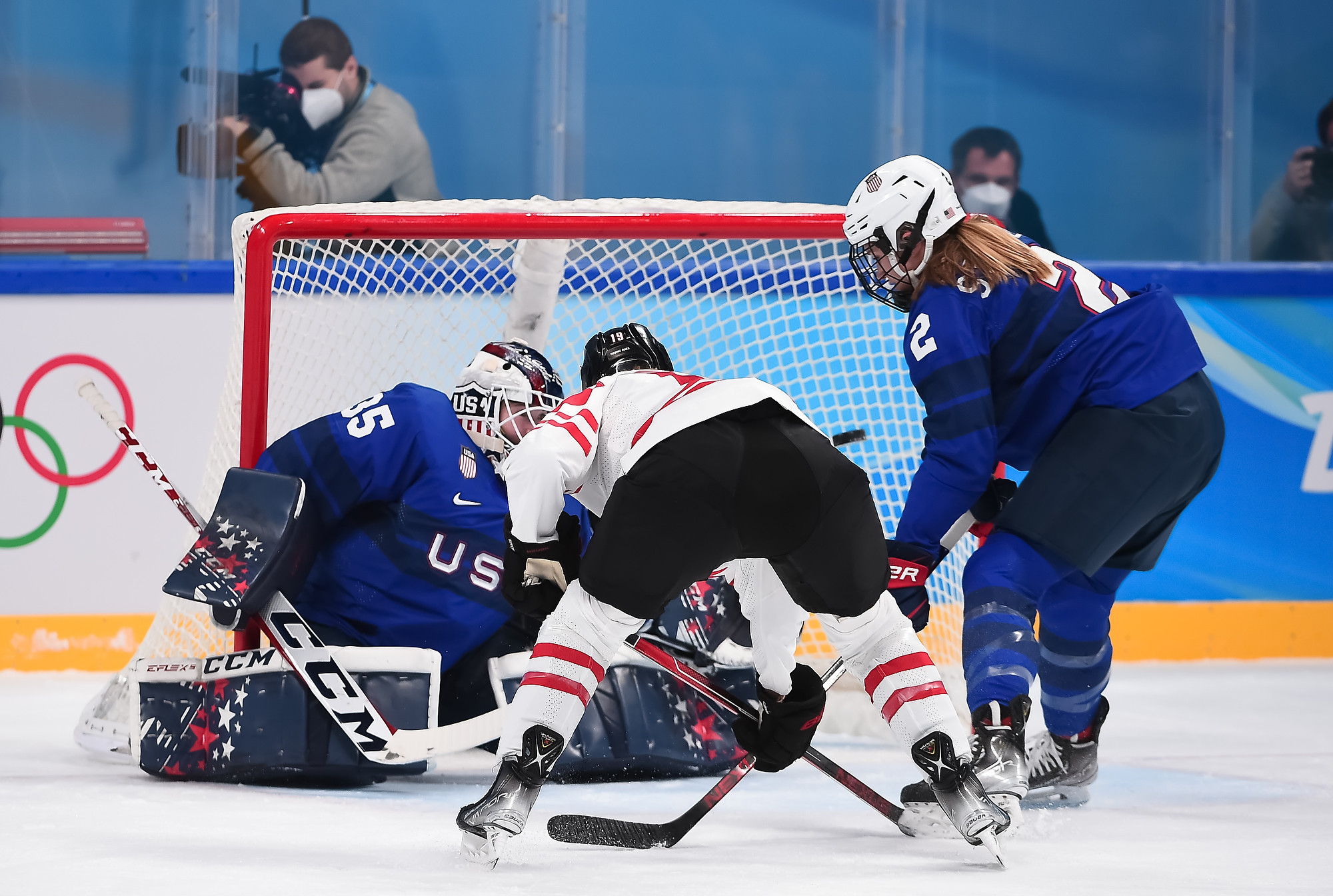 The Americans picked up steam early and dominated the first period with their aggressive forecheck, earning a 16-5 edge in shots. They hemmed Canada in its own end – something not previously seen in Beijing – midway through the first.