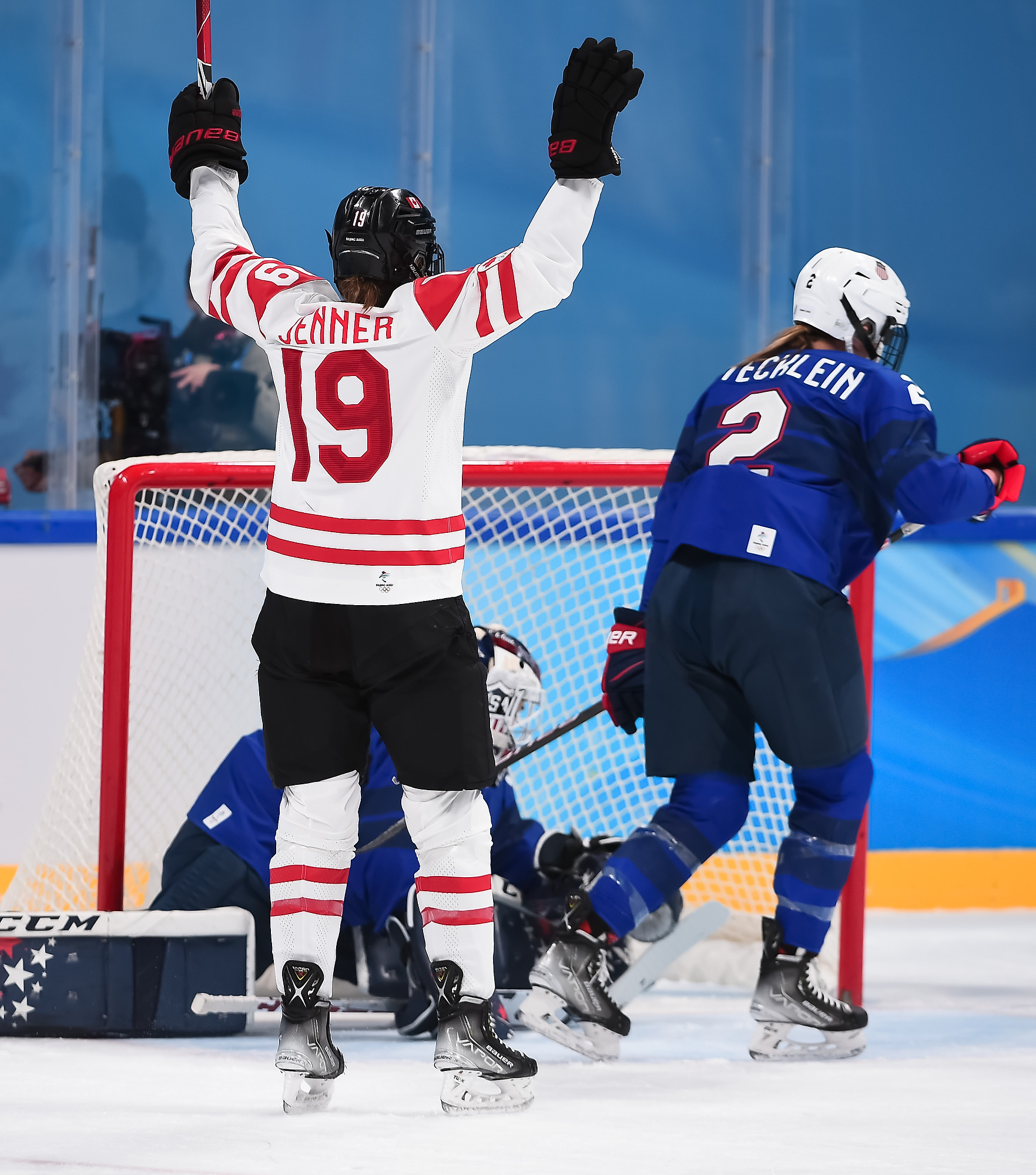 Jenner got the equalizer for Canada just 26 seconds later. Going hard to the net, she one-timed Nurse's pass from the right side past Rooney's right skate. Jenner now has 12 points in her last 11 Olympic and Women's Worlds games against the Americans, more than any skater on either side.