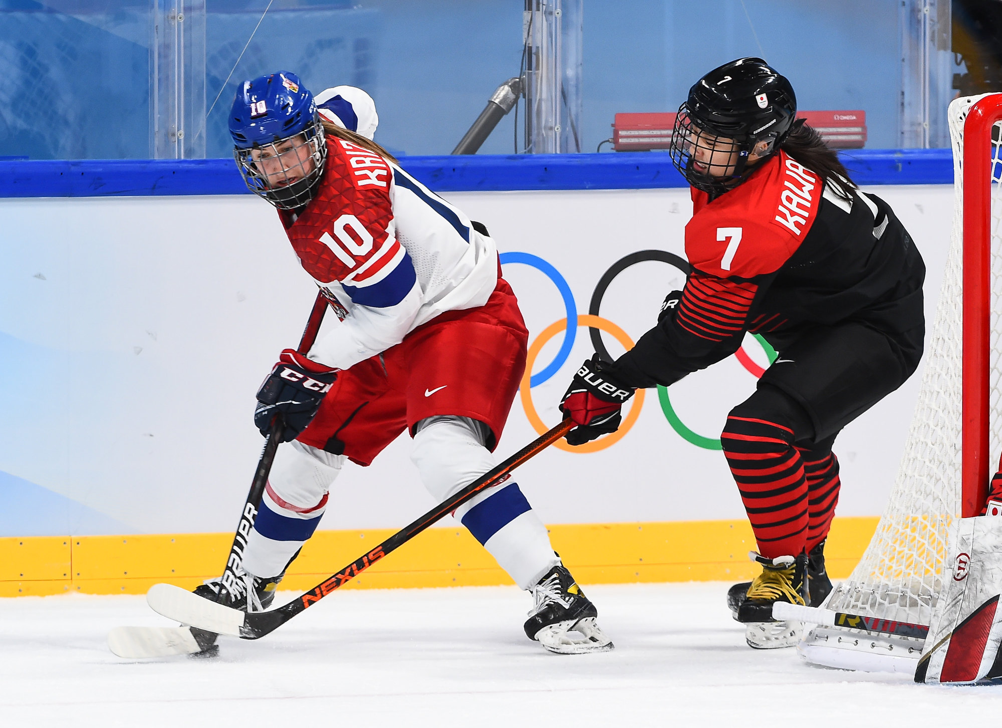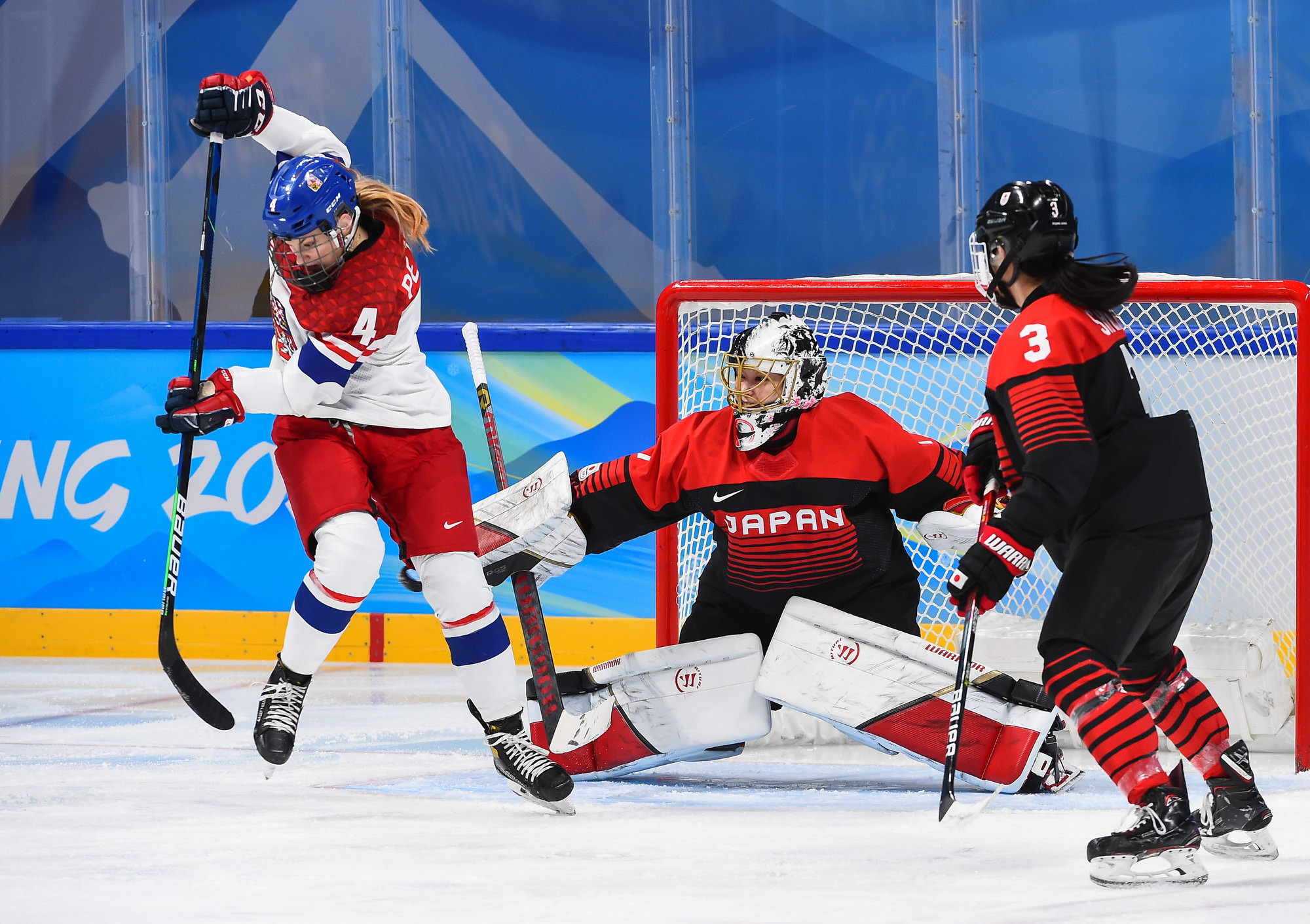 In the latter half of the second period, the Japanese pushed back thanks to three straight Czech penalties, including two 43 seconds apart that resulted in a 5-on-3 for the last 55 seconds of the period. But under enormous pressure, the Czech penalty-killers blocked several shots and Peslarova was sharp when she had to be.