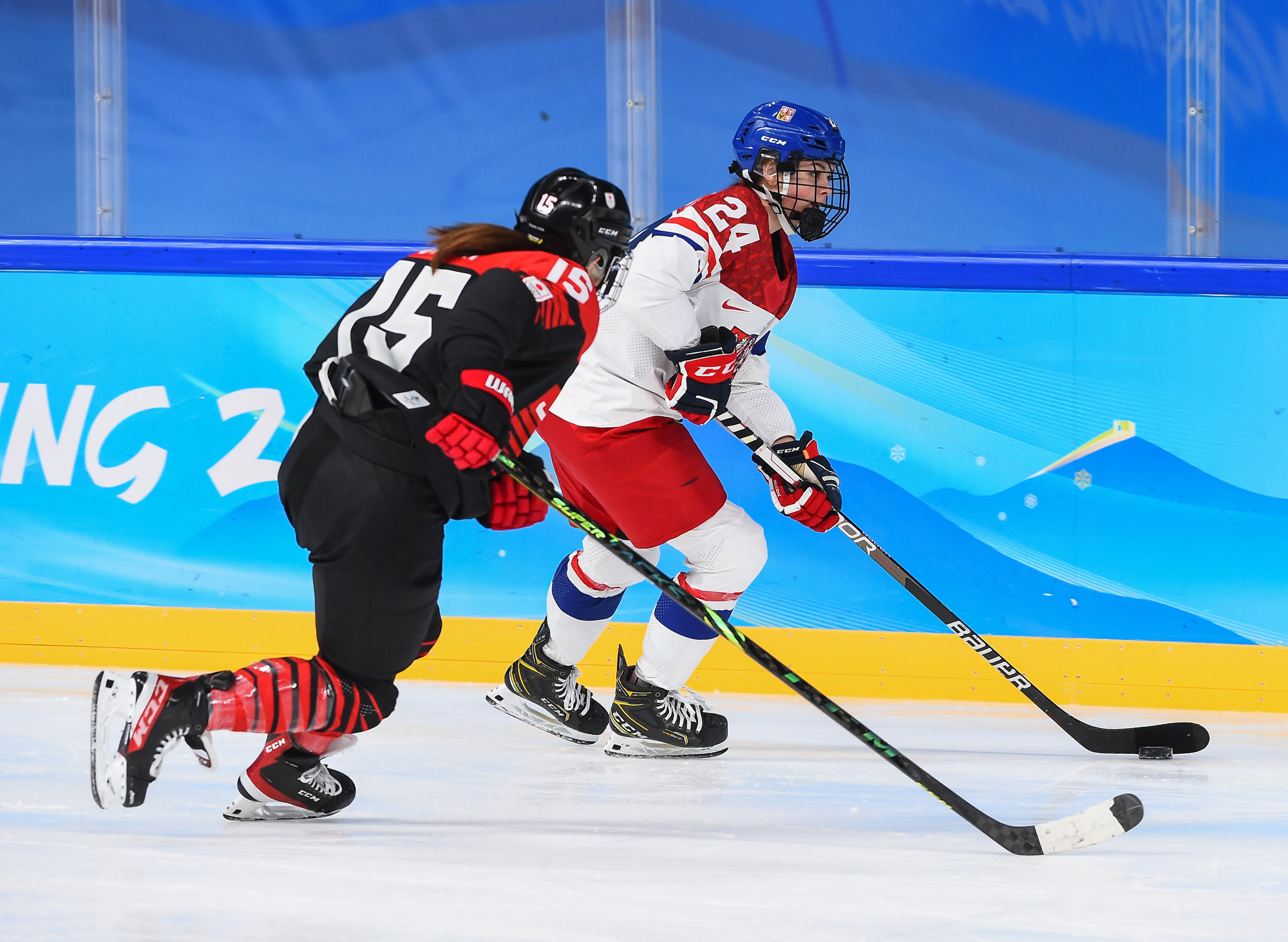 A scary moment occurred just shy of the 13-minute mark when Czech linemates Alena Mills and Klara Hymlarova collided in the neutral zone. Mills got up immediately but Hymlarova laid motionless on her back for a while. She was finally helped to her feet and off the ice but appeared groggy and did not return to the game. Kristyna Patkova took her spot on the top line with Mills and Vendula Pribylova.